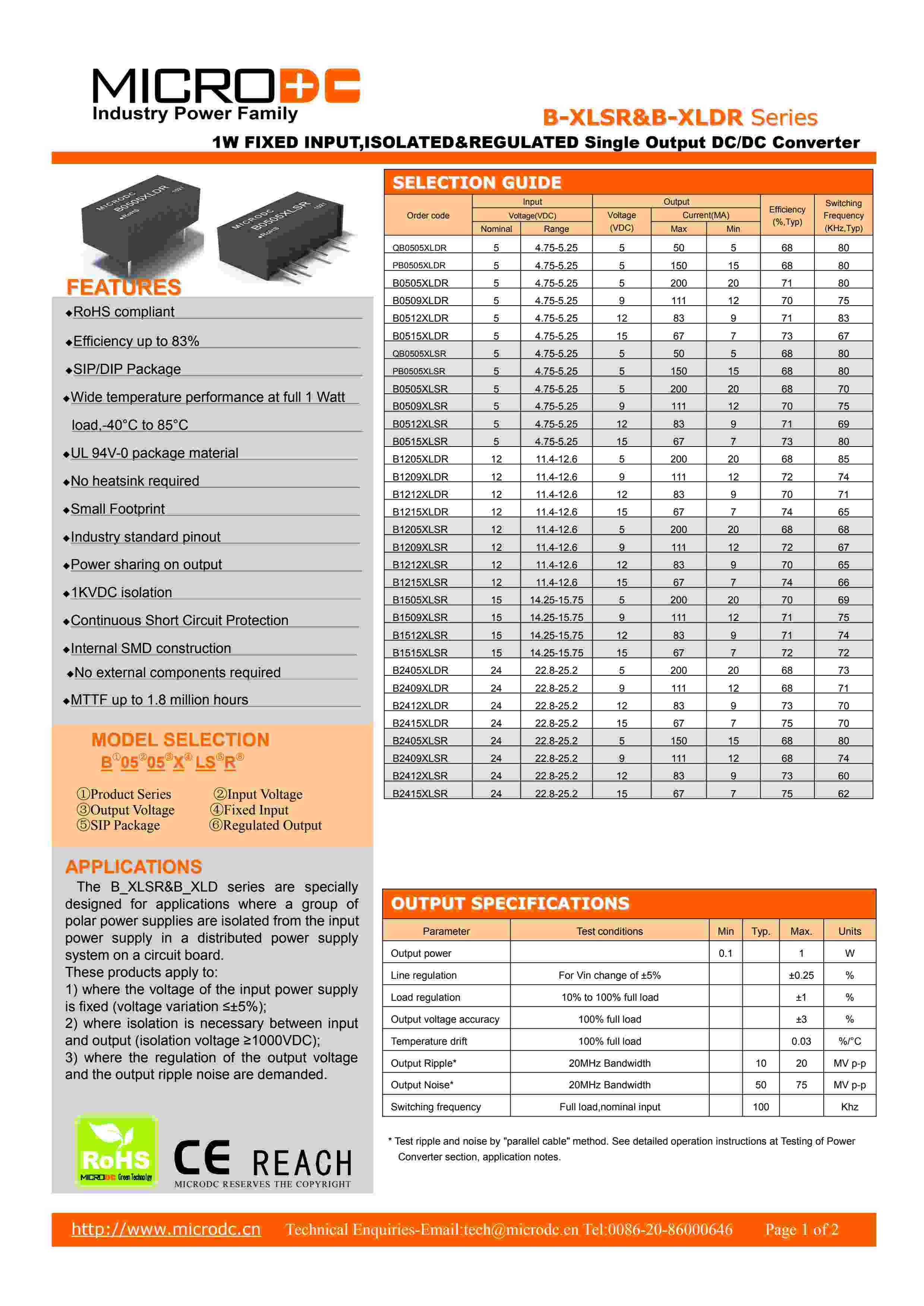 1W FIXED INPUT,ISOLATED®ULATED Single Output DC/DC Converter