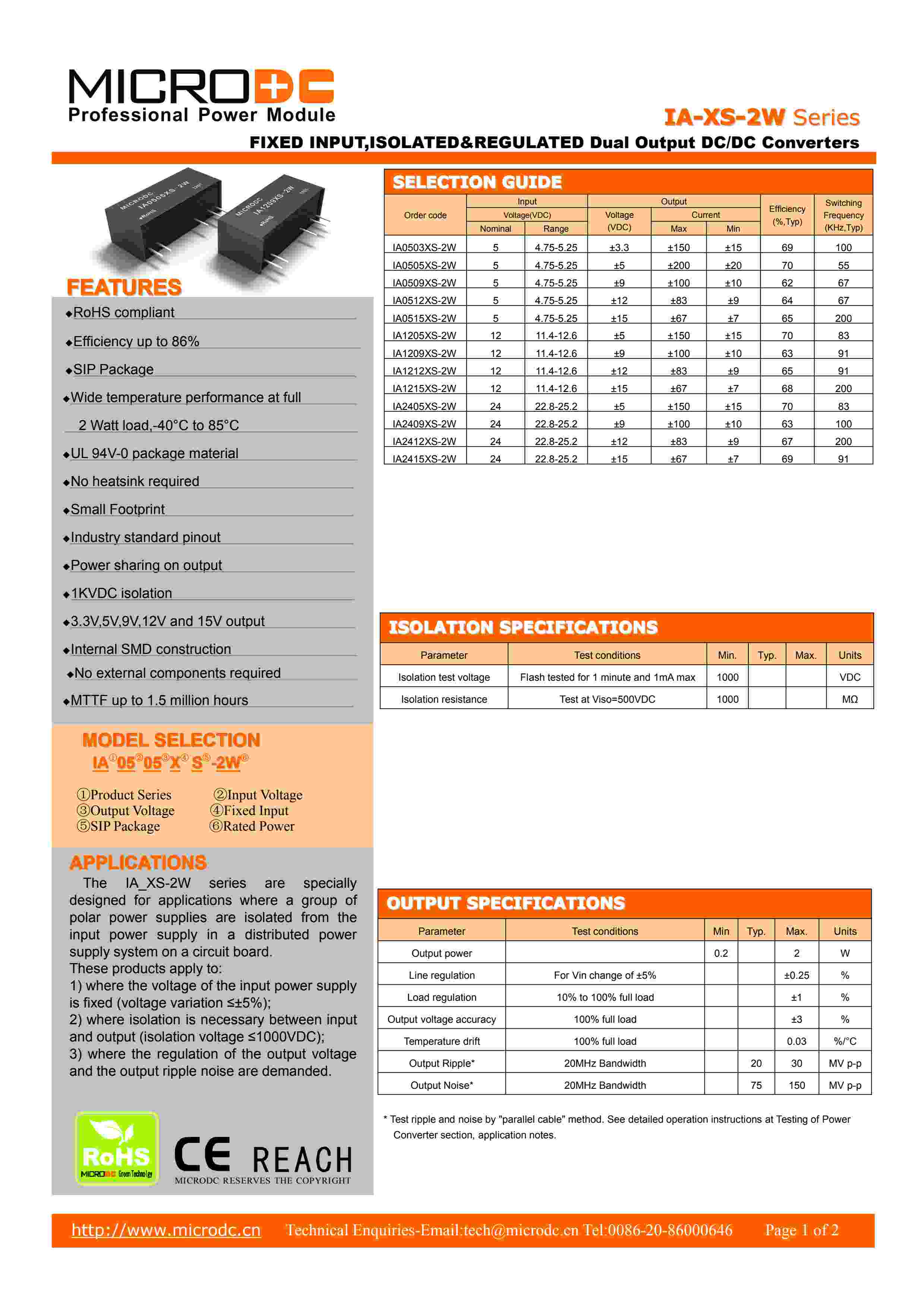 FIXED INPUT,ISOLATED®ULATED Dual Output DC/DC Converters