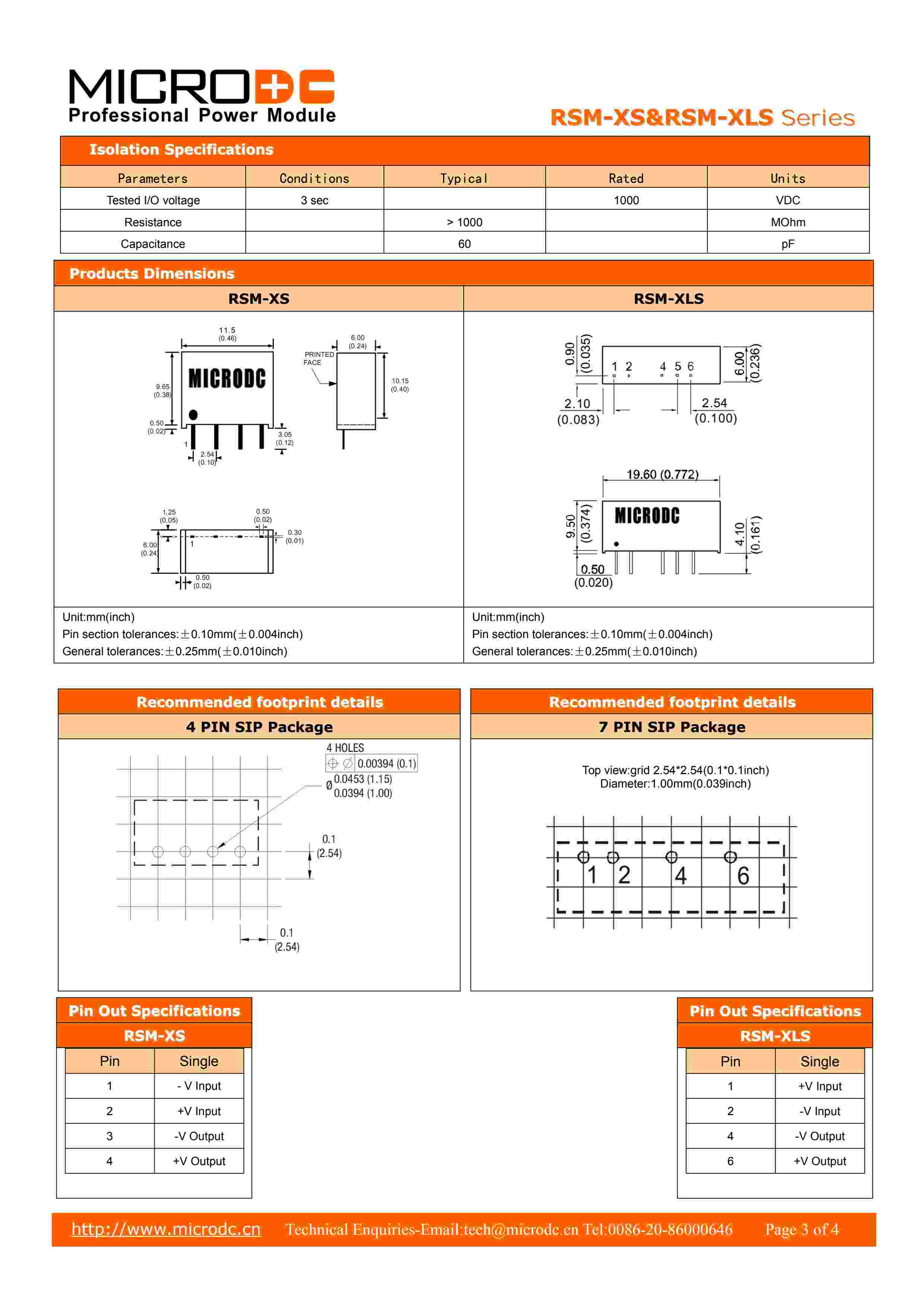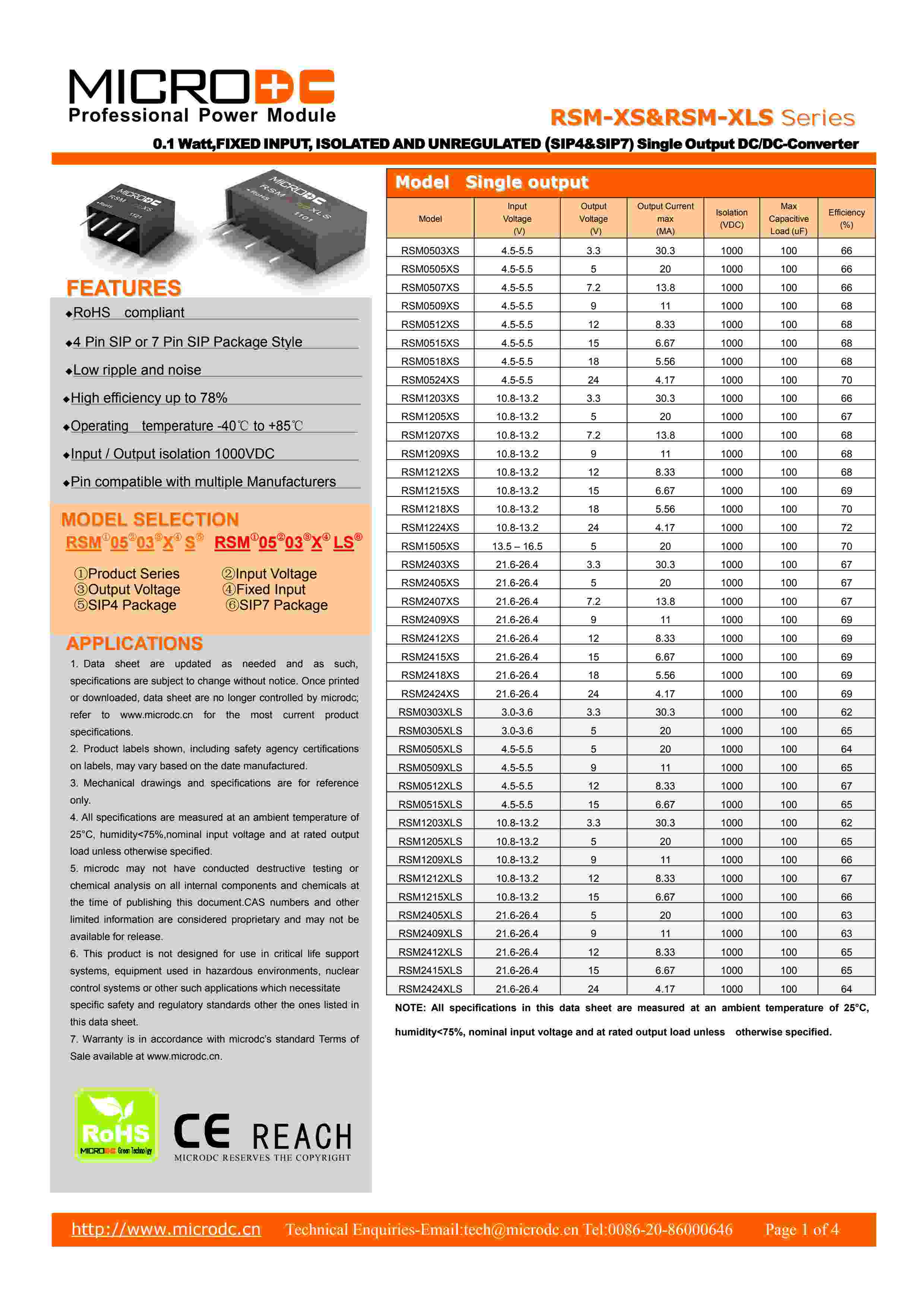 0.1 Watt,Fixed Input, Isolated And Unregulated SIP7 Single Output DC/DC Converter