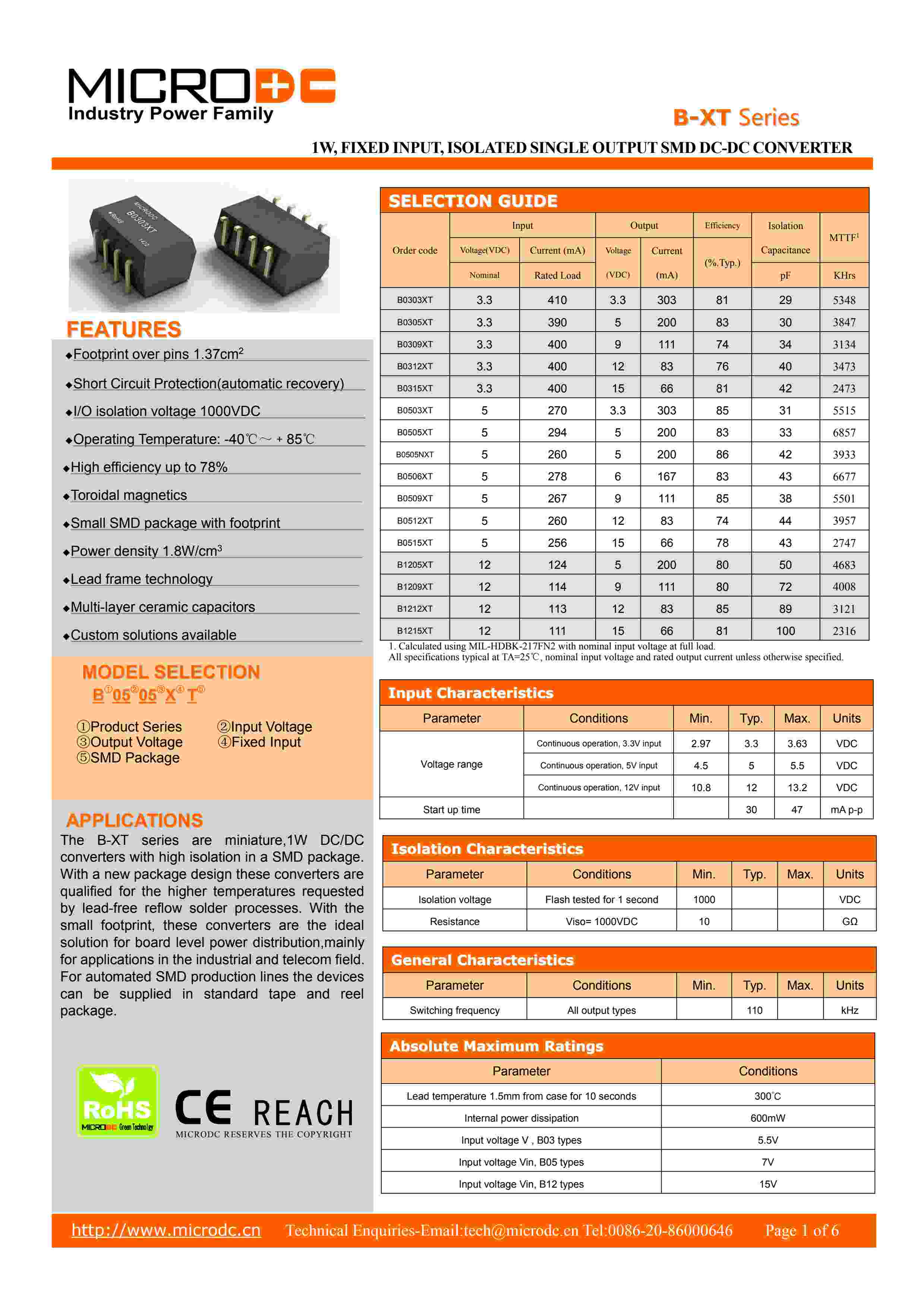1W, FIXED INPUT, ISOLATED SINGLE OUTPUT SM DC-DC CONVERTER