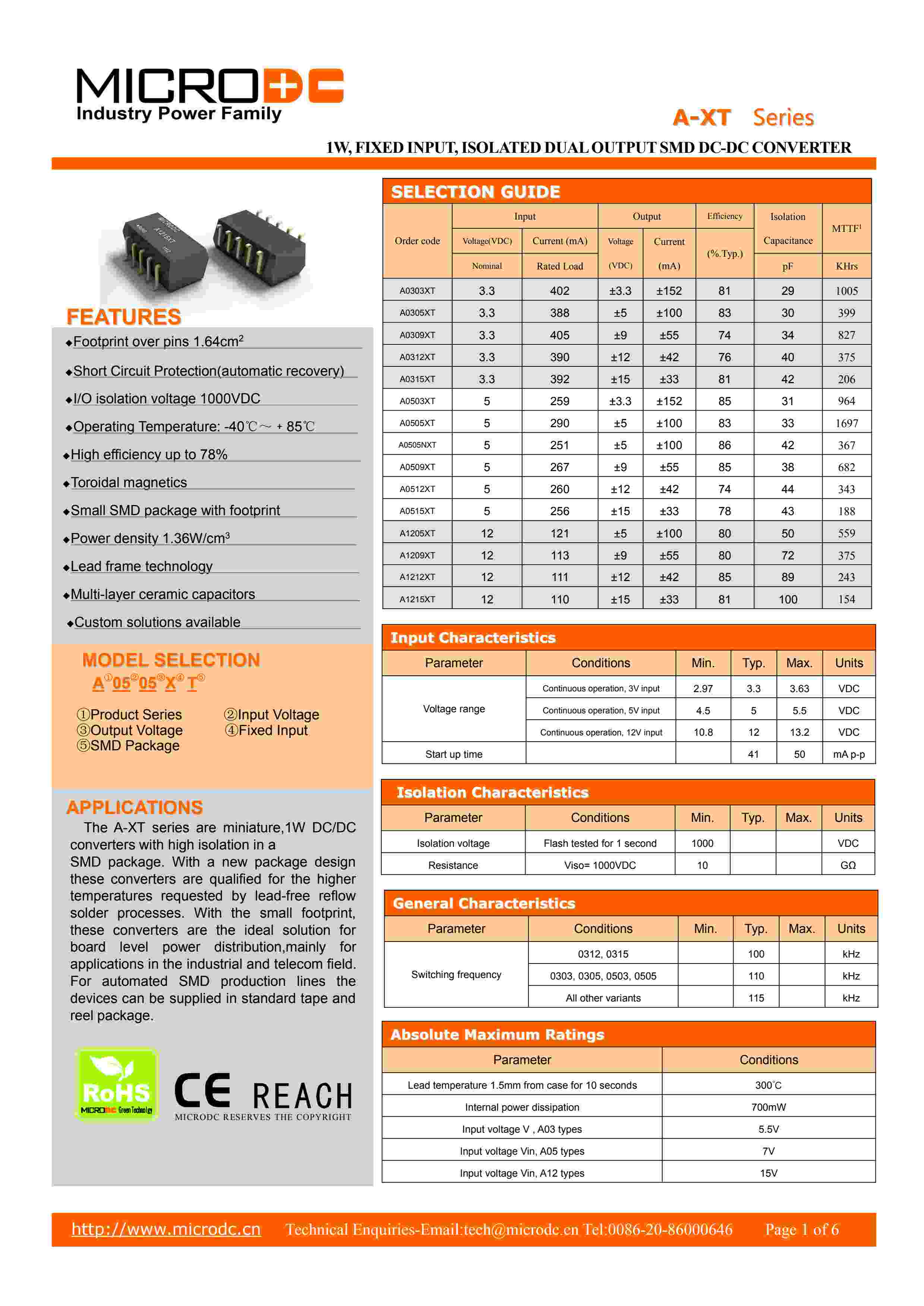 1W, FIXED INPUT, ISOLATED DUAL OUTPUT SM DC-DC CONVERTER