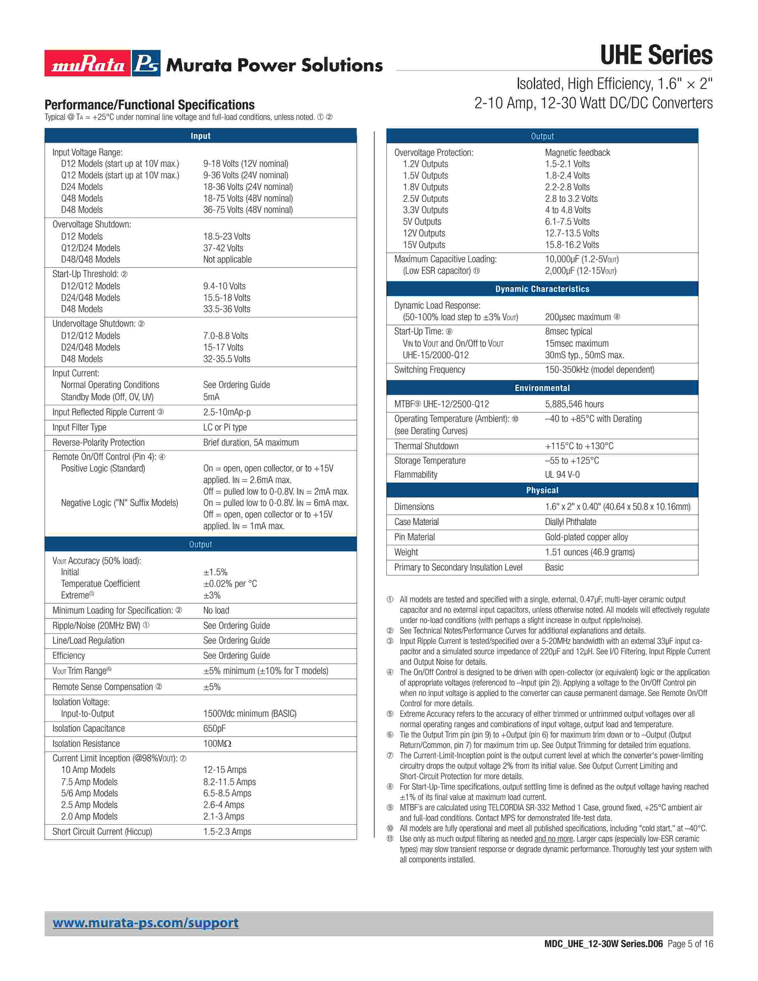 Output configurations: 1.2/1.5/1.8/2.5VOUT @ 10 Amps 3.3/5VOUT @ 25 Watts 5/12/15VOUT @ 30 Watts