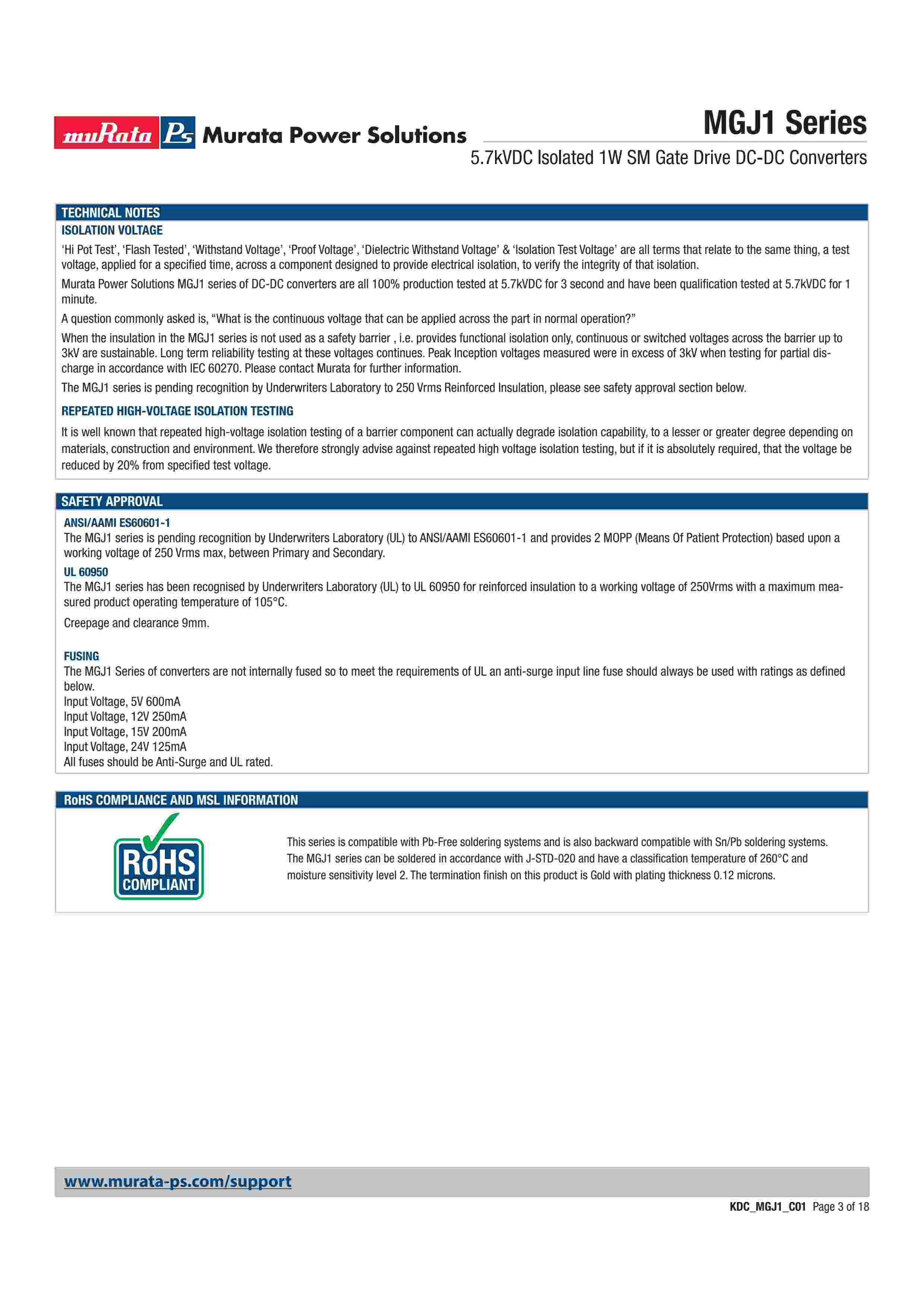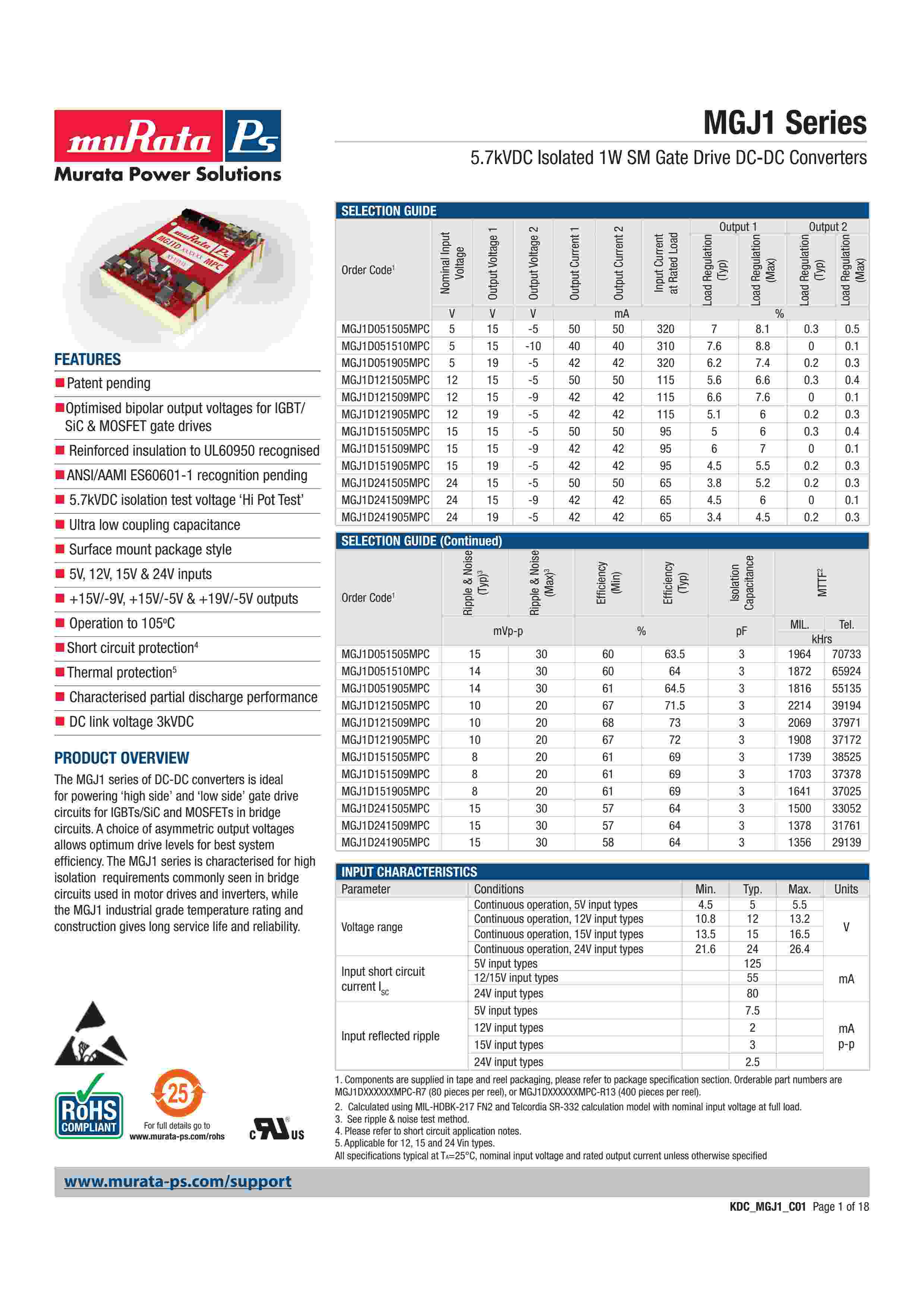 5.7kVDC Isolated 1W SM Gate Drive DC-DC Converters