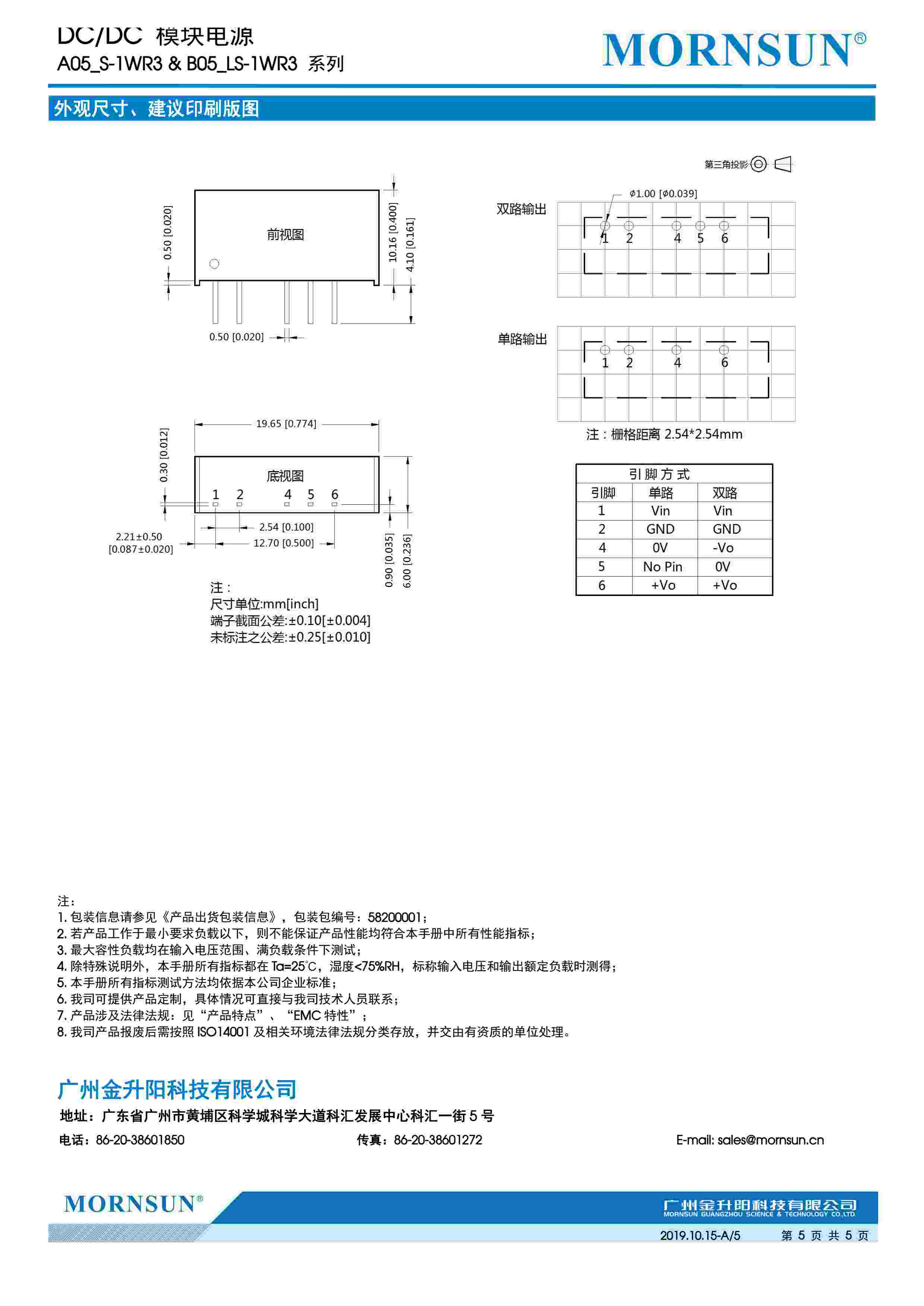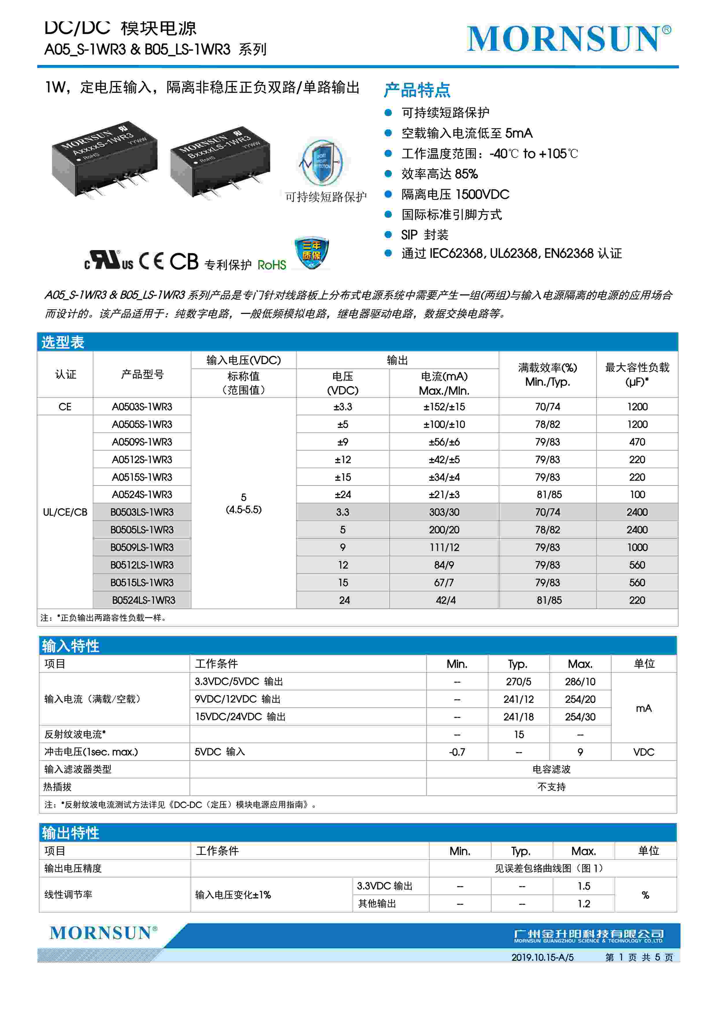 1W,定电压输入,隔离非稳压正负双路/单路输出