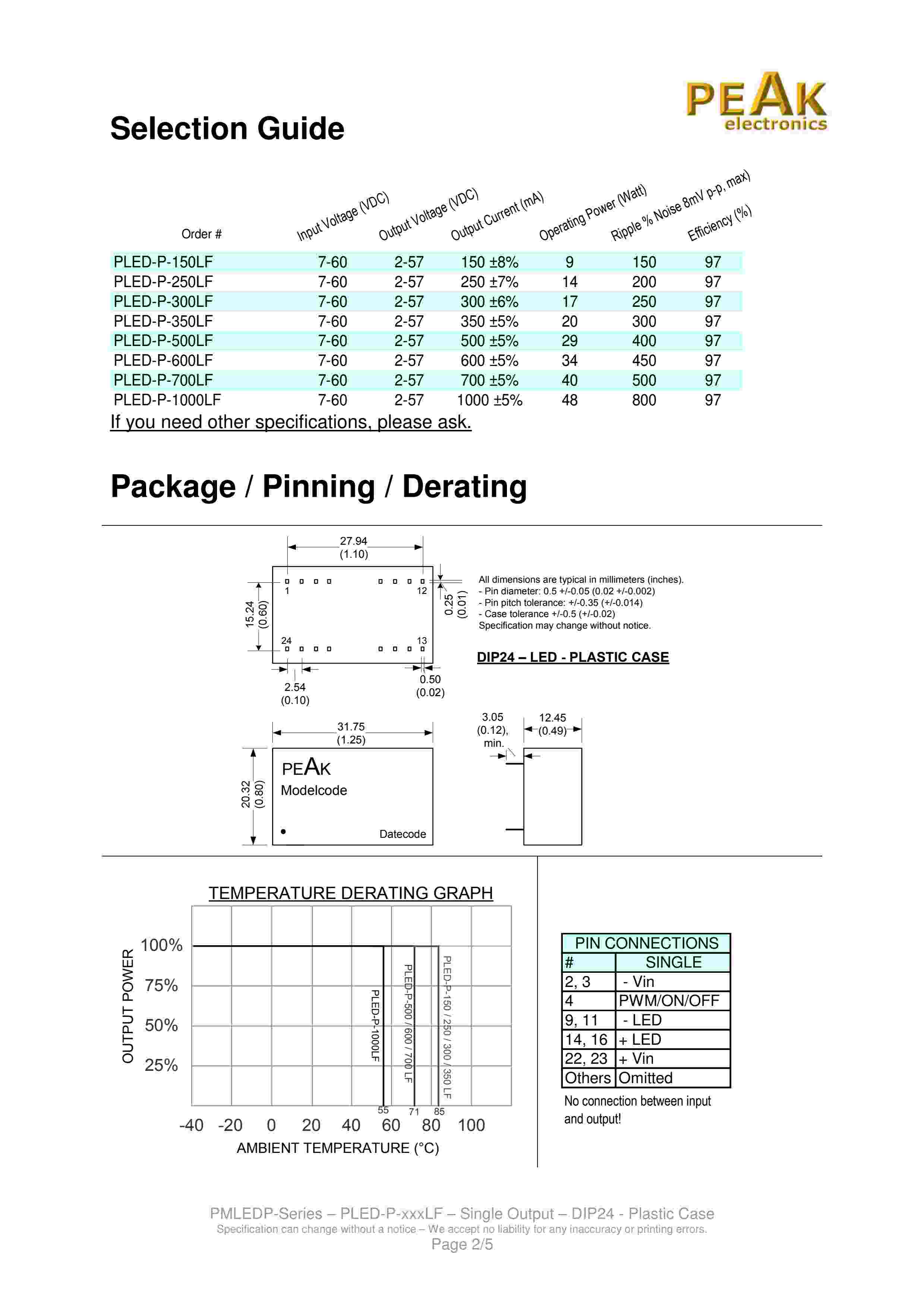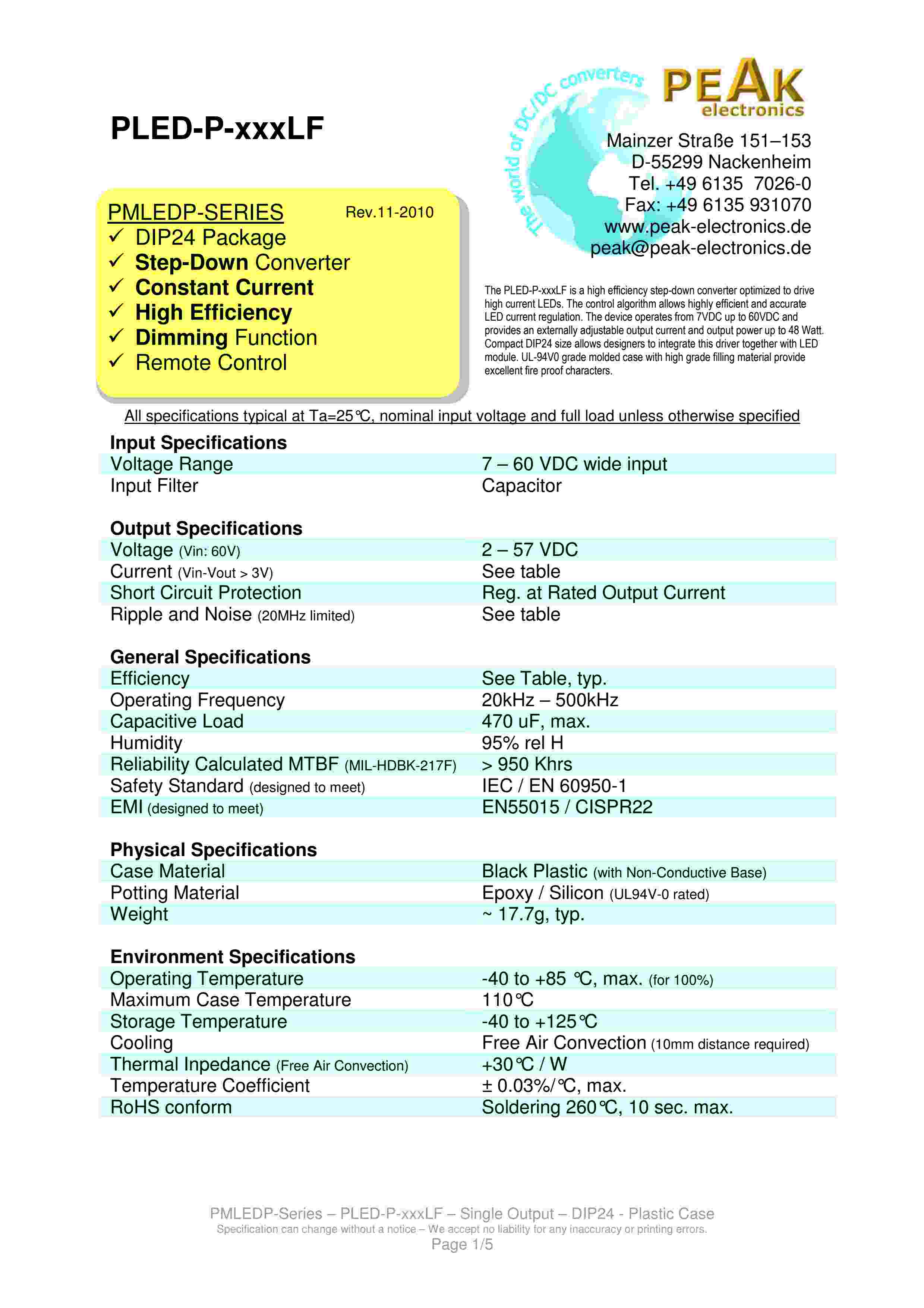 PMLEDP-SERIES DIP24 Package Step-Down Converter Constant Current High Efficiency Dimming Function Remote Control