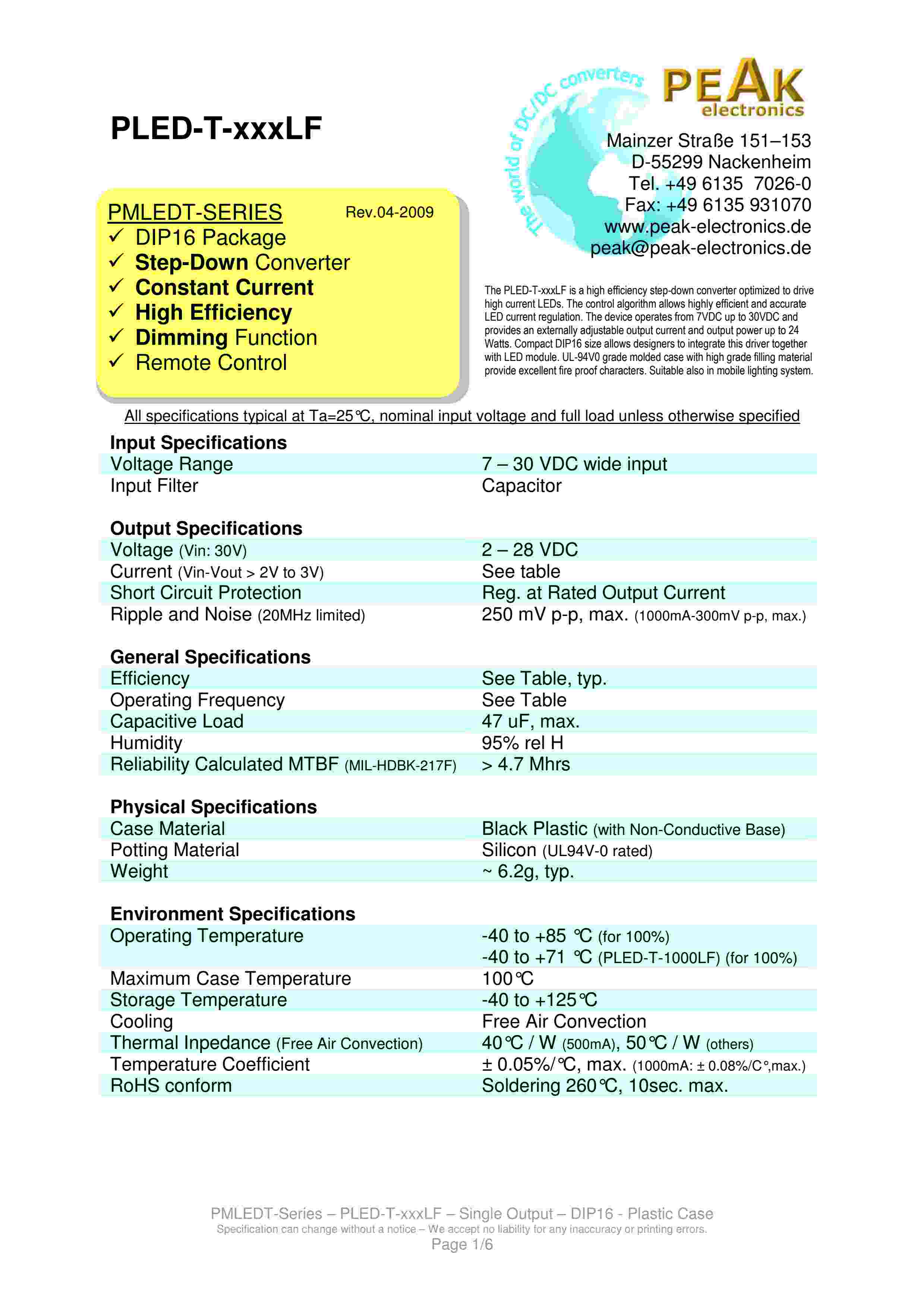 PMLEDT-SERIES DIP16 Package Step-Down Converter Constant Current High Efficiency Dimming Function Remote Control
