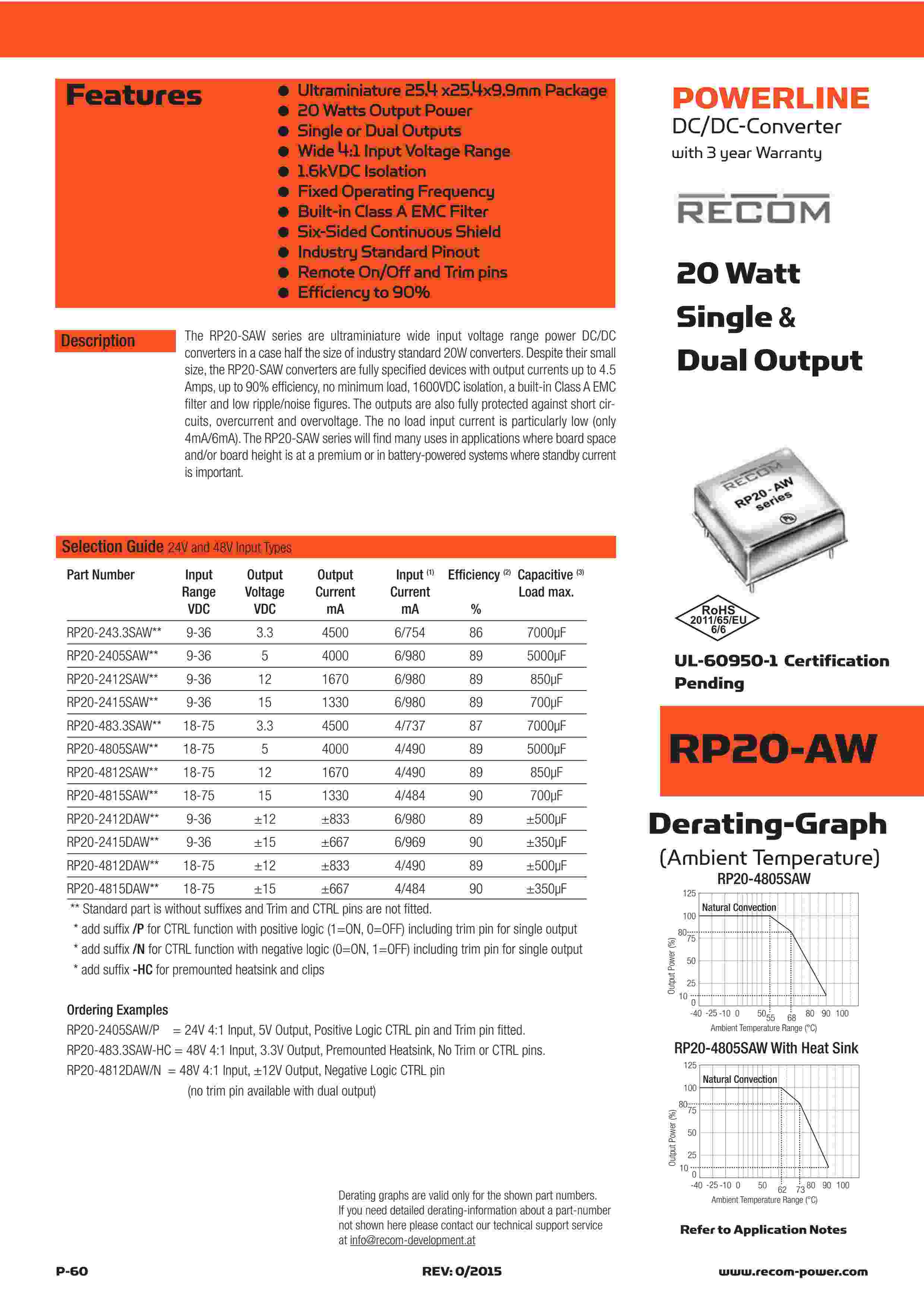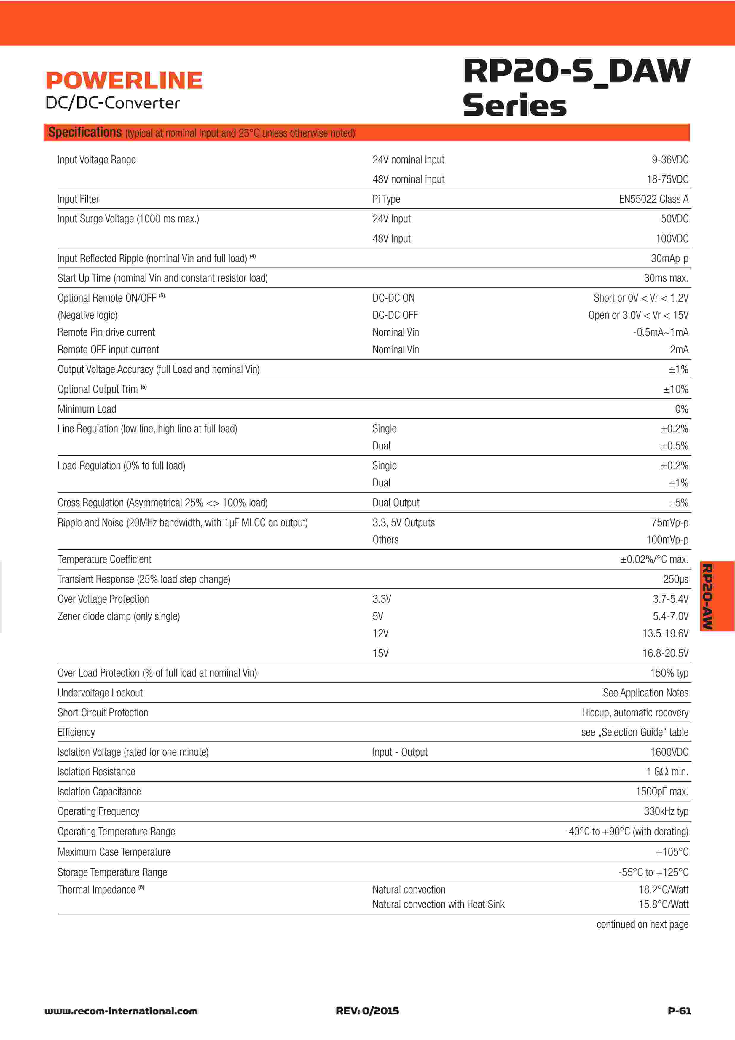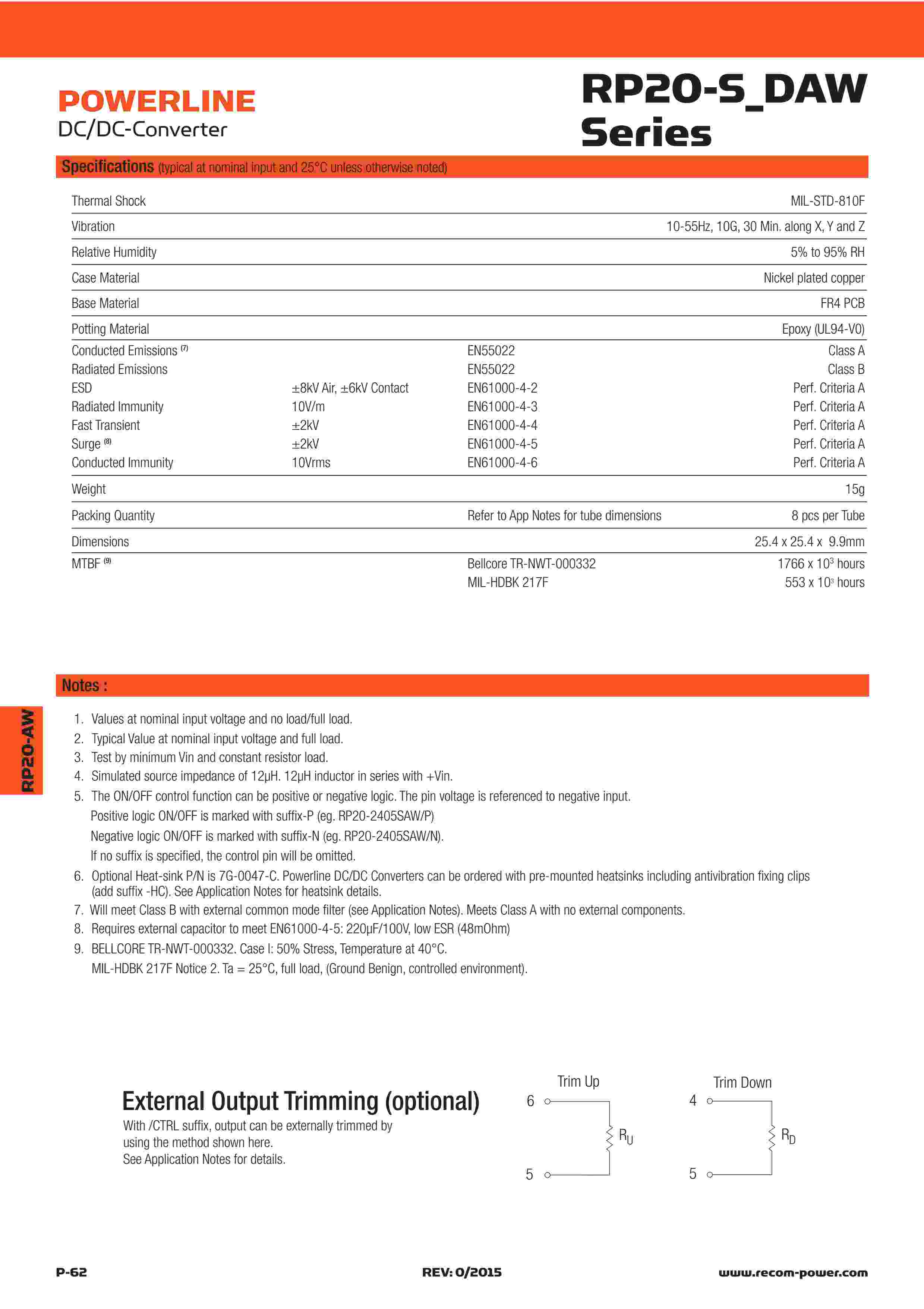 | 描 述: | ● Ultraminiature 25.4 x25.4x9.9mm Package● 20 Watts Output Power● Single or Dual Outputs● Wide 4:1 Input Voltage Range● 1.6kVDC Isolation● Fixed Operating Frequency● Built-in Class A EMC Filter● Six-Sided Continuous Shield● Industry Standard Pinout● Remote On/Off and Trim pins● Efficiency to 90% | ||