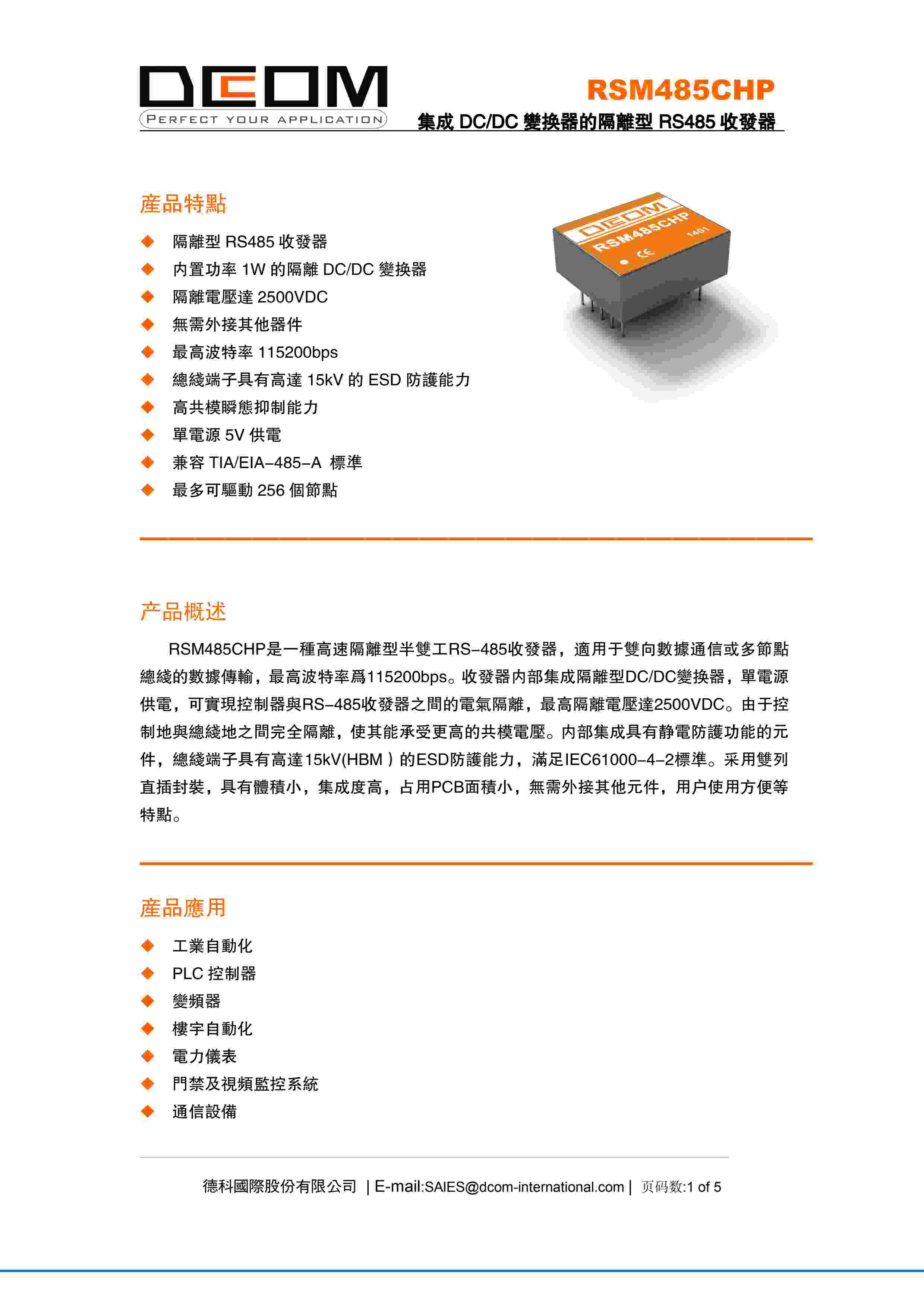 集成 DC/DC 变换器的隔离型 RS485 收发器