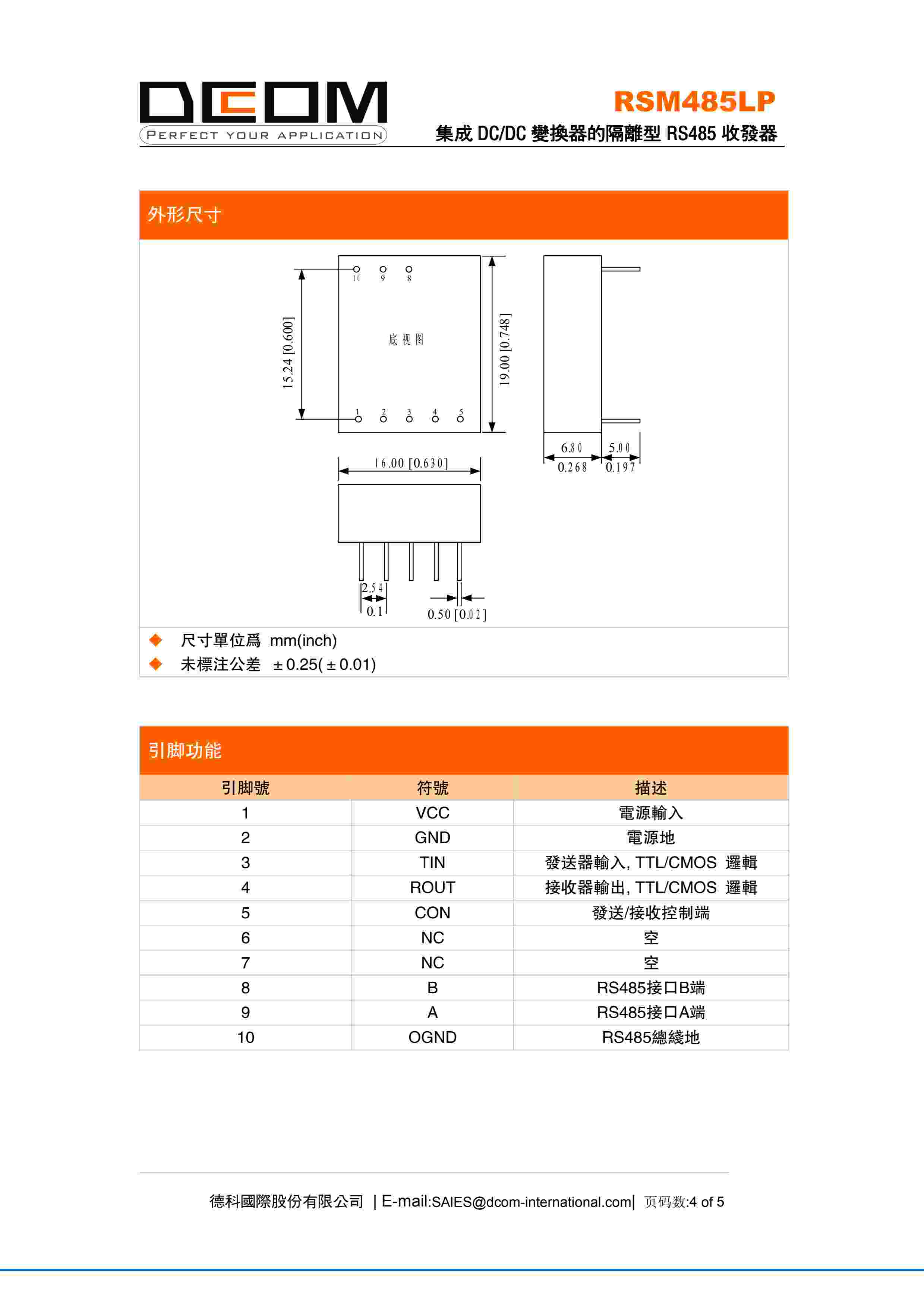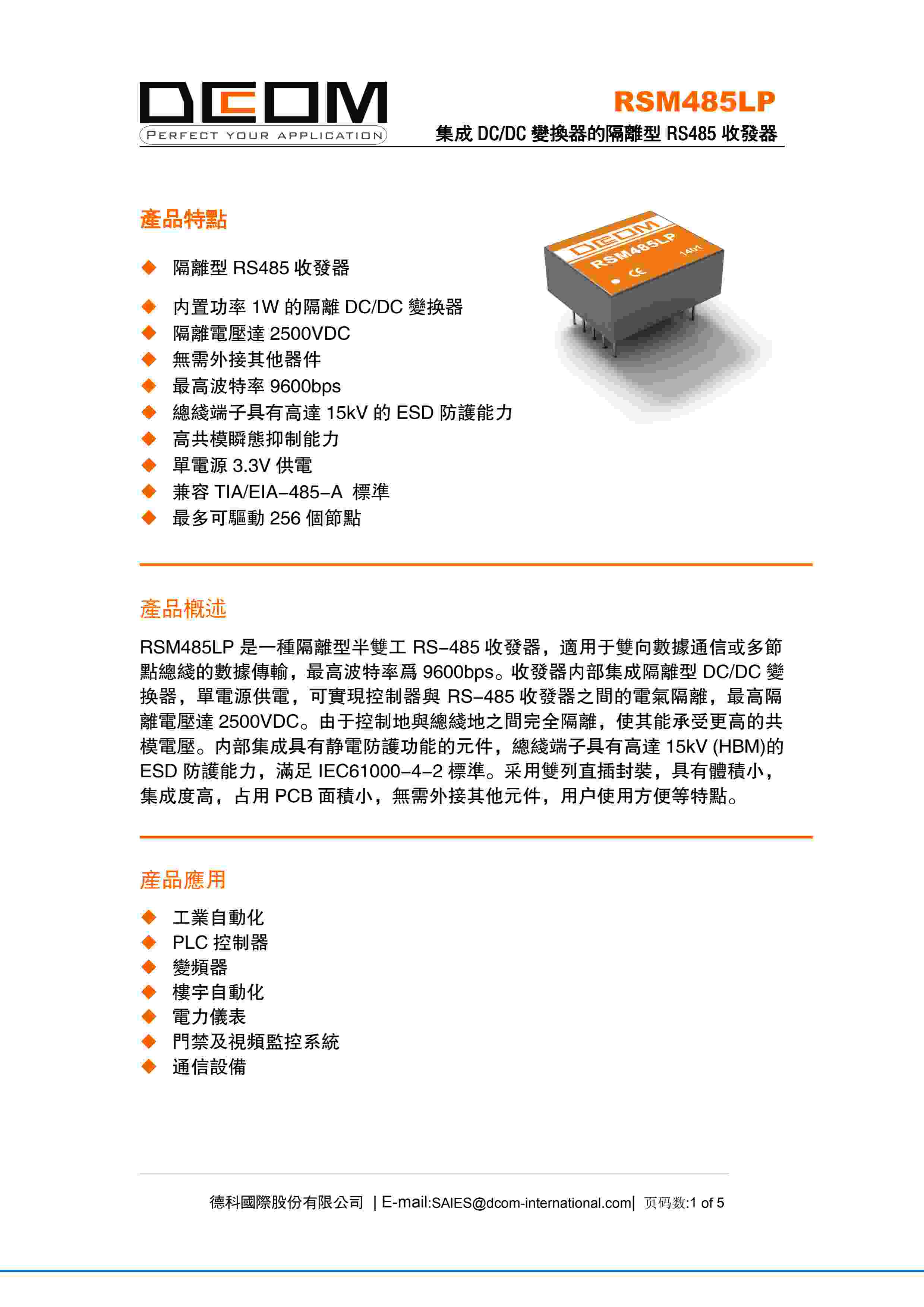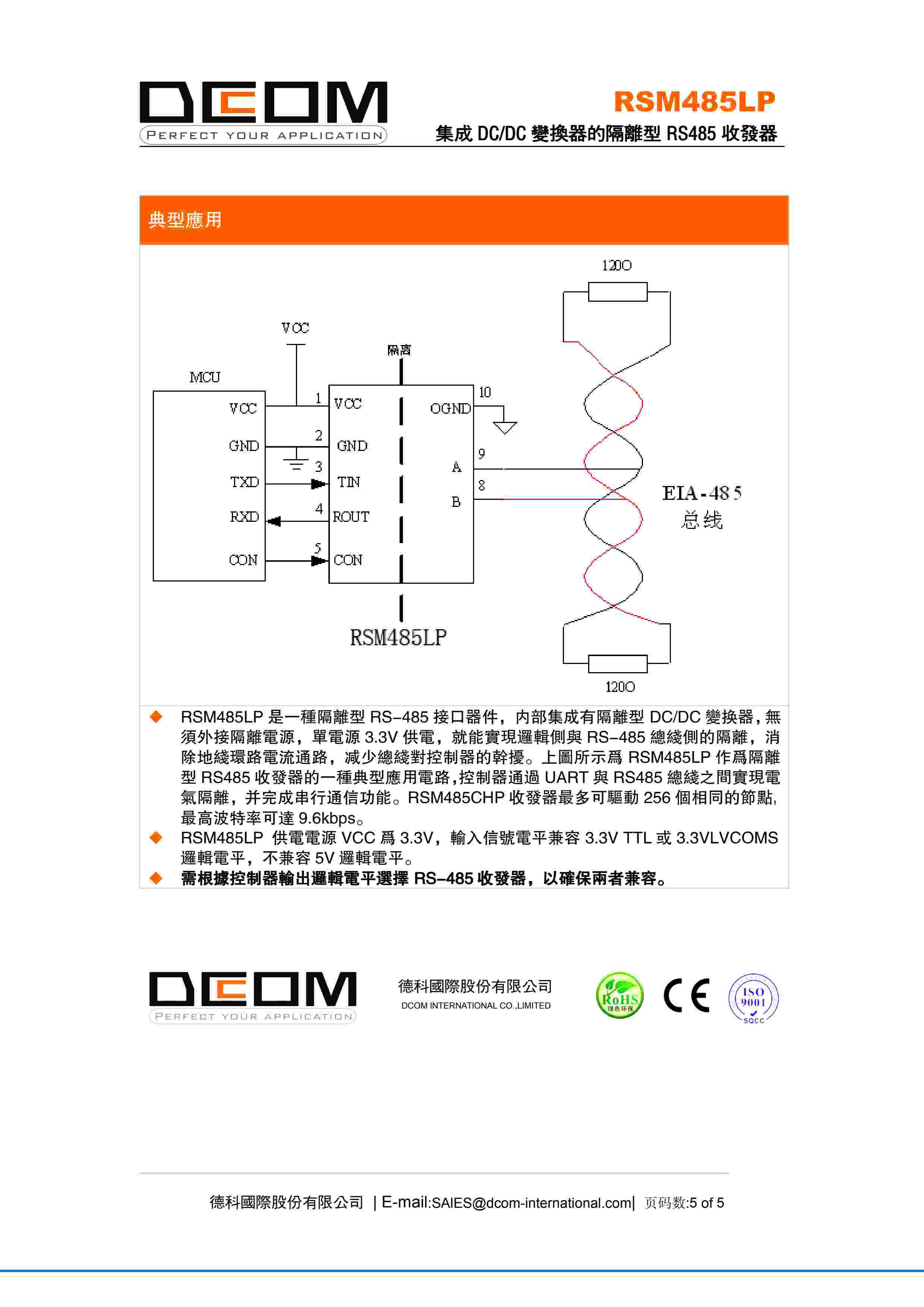 集成 DC/DC 变换器的隔离型 RS485 收发器