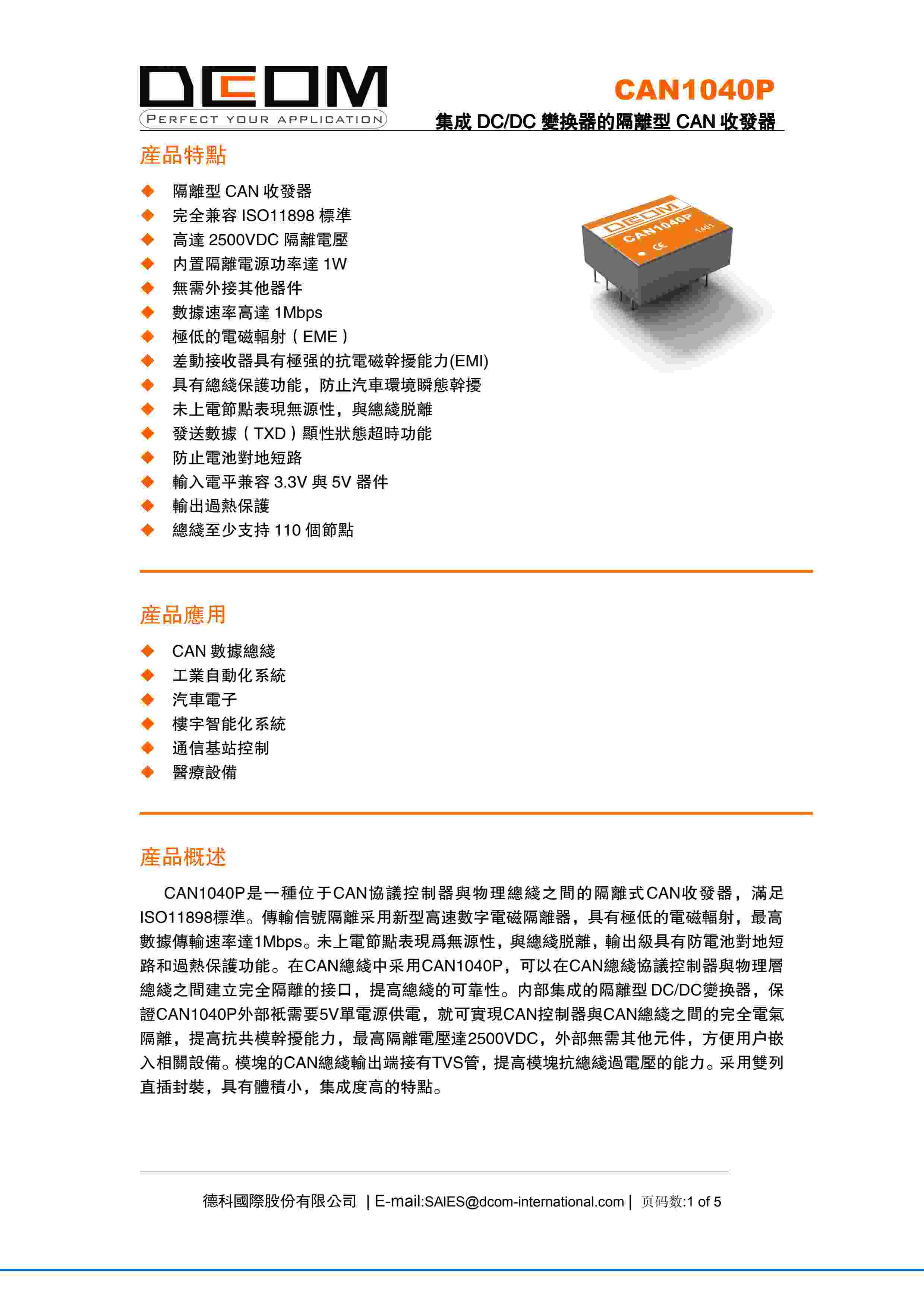 集成 DC/DC 变换器的隔离型 CAN 收发器