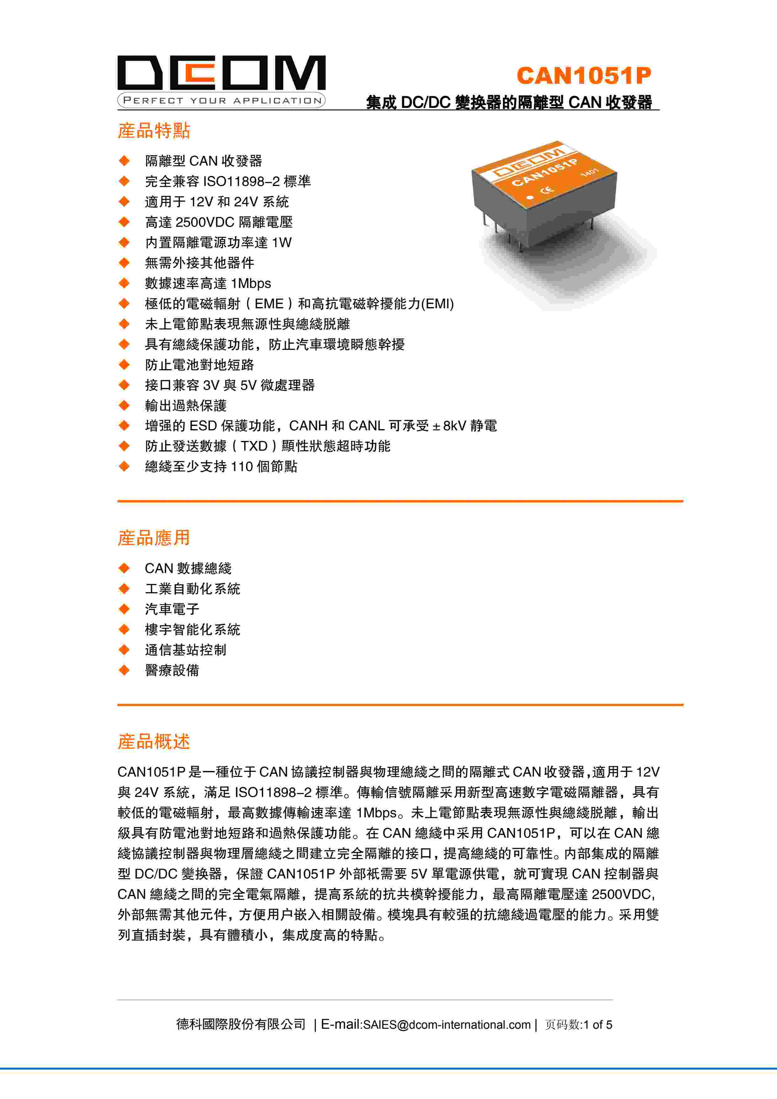 集成 DC/DC 变换器的隔离型 CAN 收发器