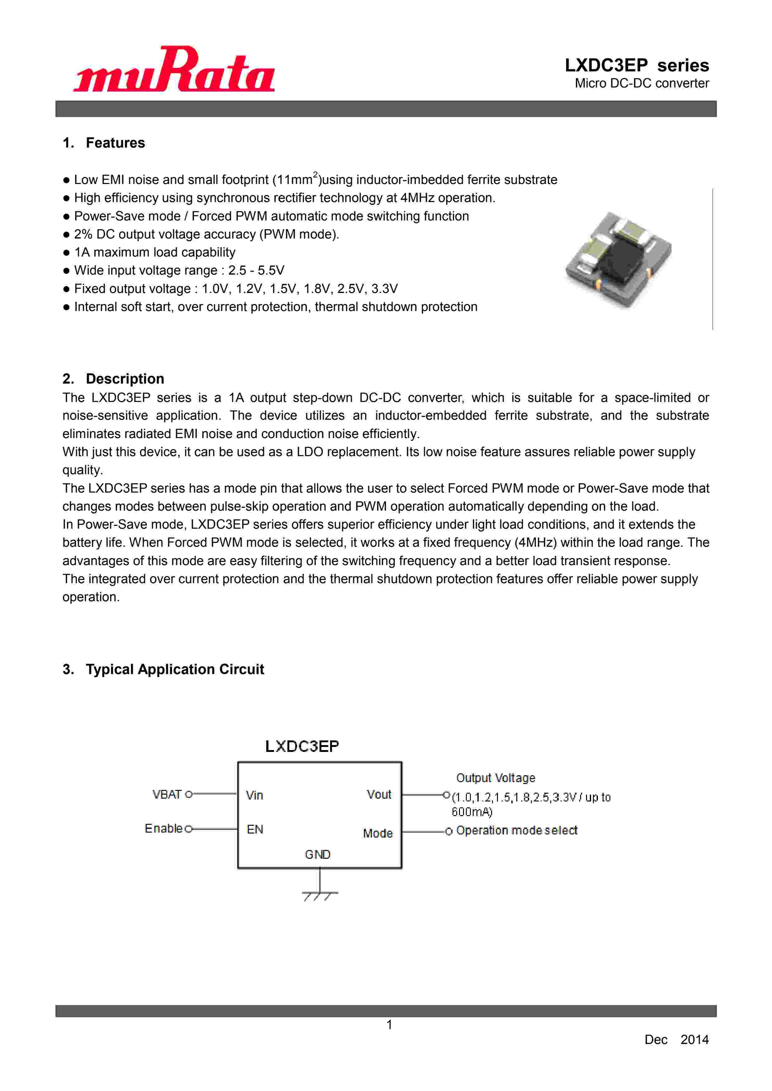 High efficiency using synchronous rectifier technology at 4MHz operation,Power-Save mode / Forced PWM automatic mode switching function,