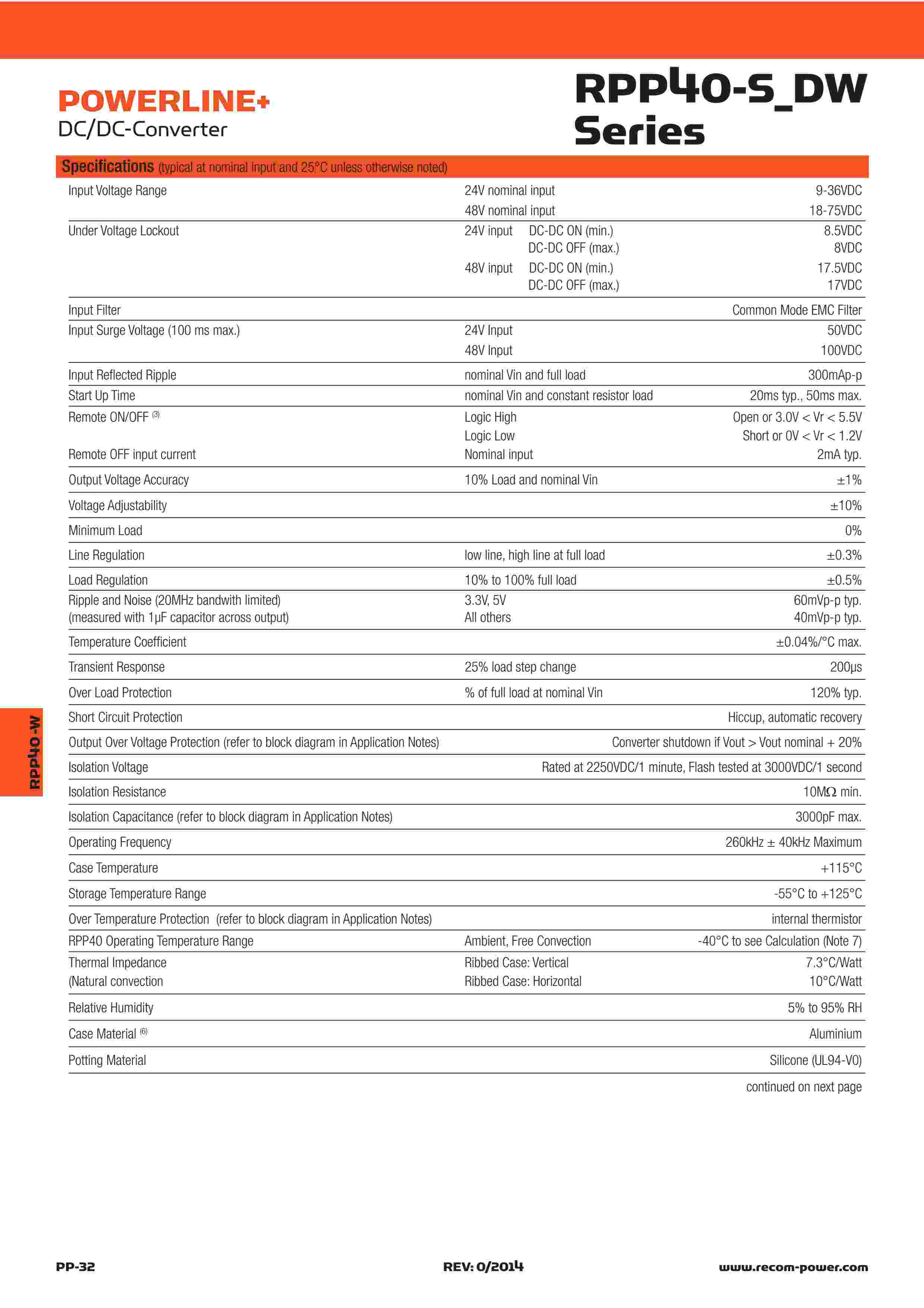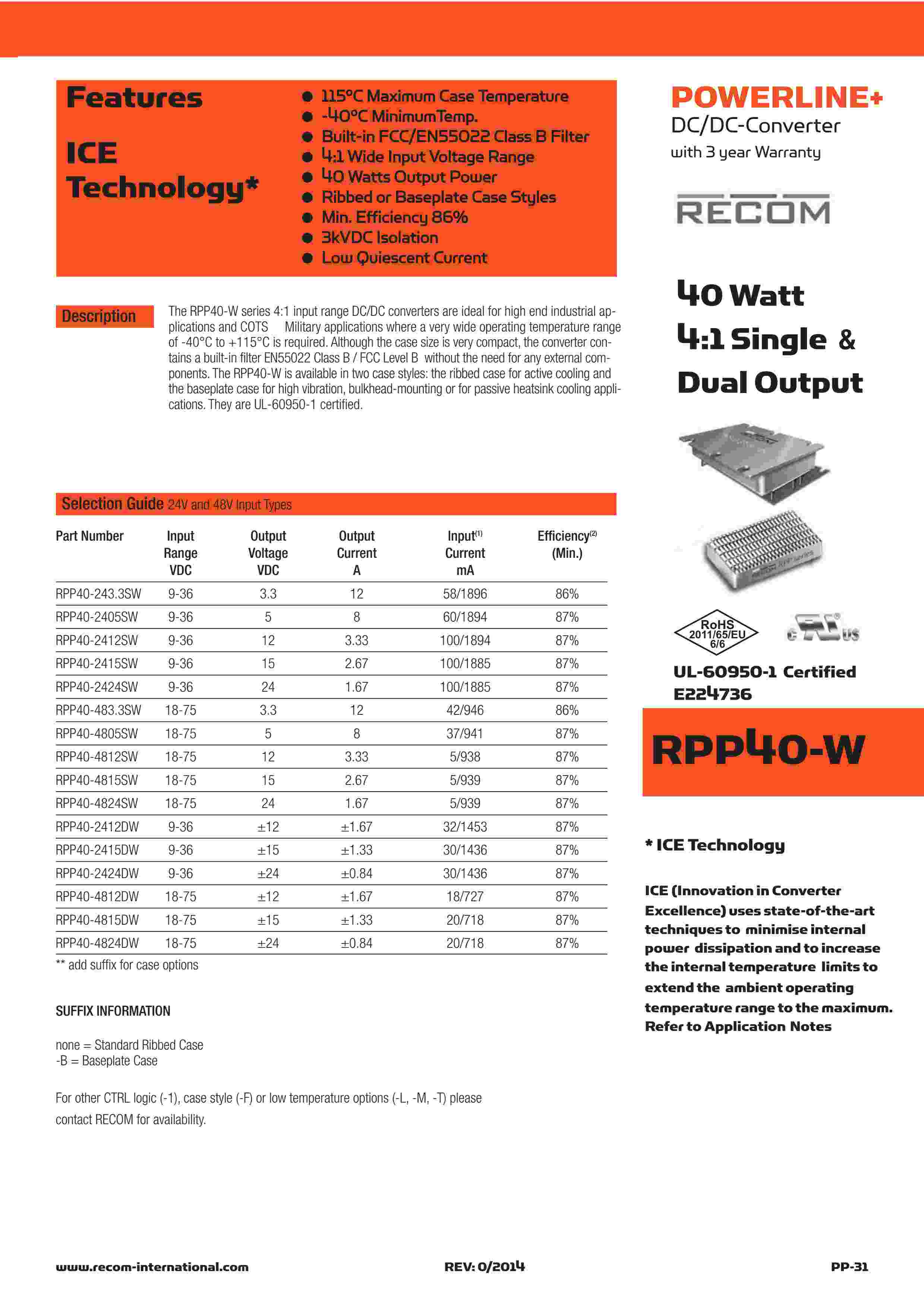 | 描 述: | ● 115°C Maximum Case Temperature● -40°C MinimumTemp.● Built-in FCC/EN55022 Class B Filter● 4:1 Wide Input Voltage Range● 40 Watts Output Power● Ribbed or Baseplate Case Styles● Min. Efficiency 86%● 3kVDC Isolation● Low Quiescent Current | ||