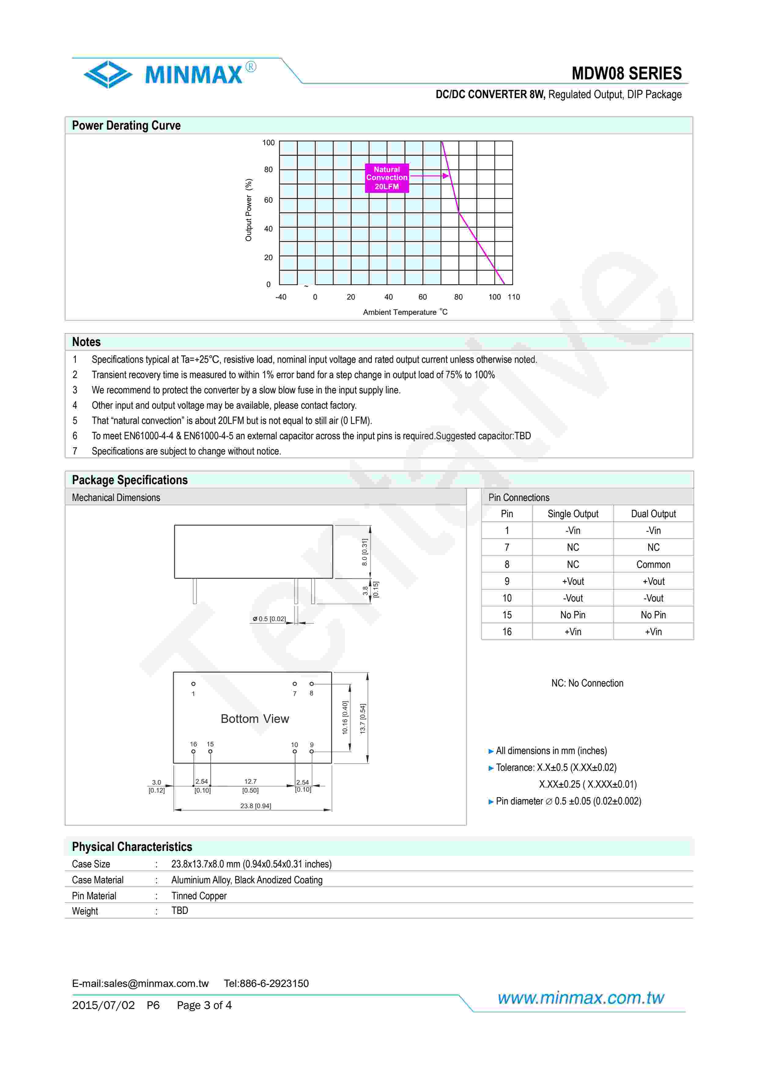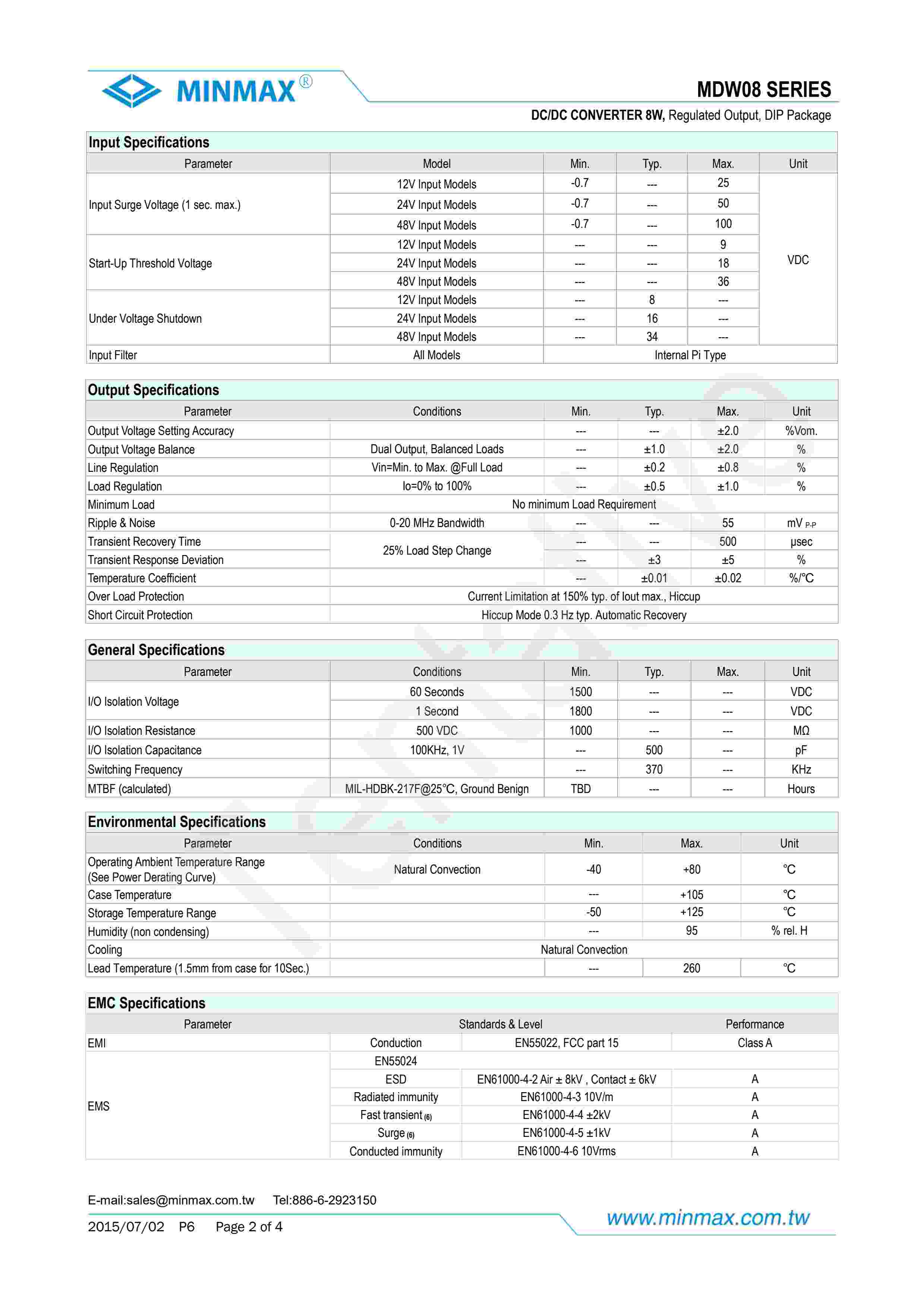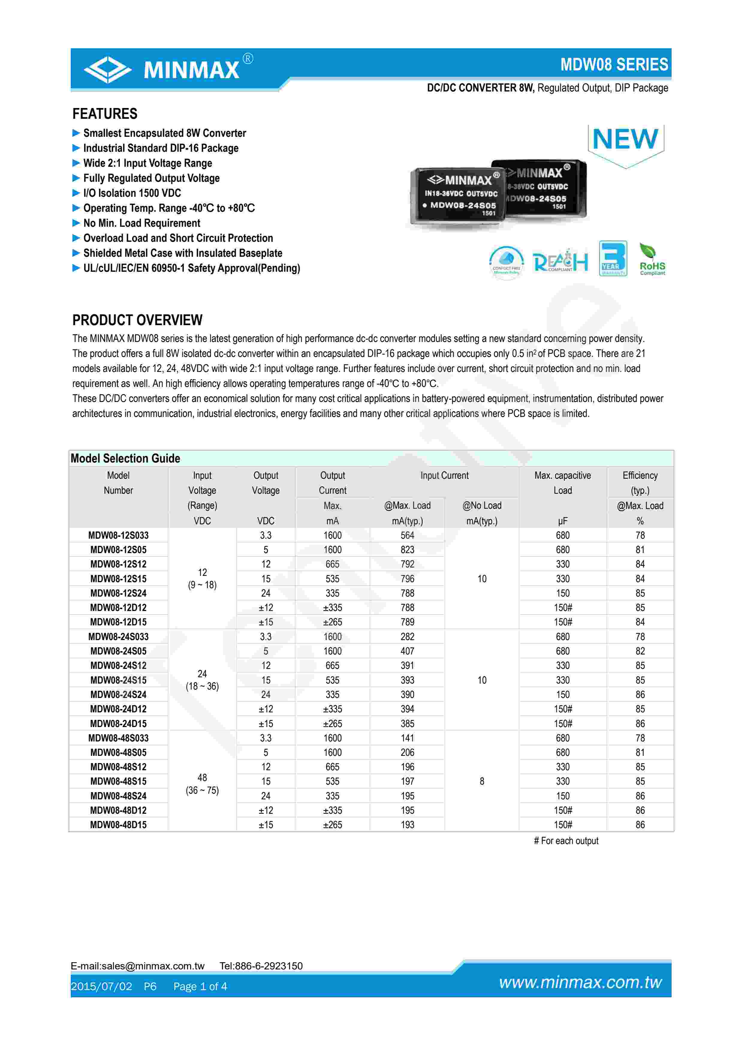 DC/DC CONVERTER 8W, Regulated Output, DIP Package