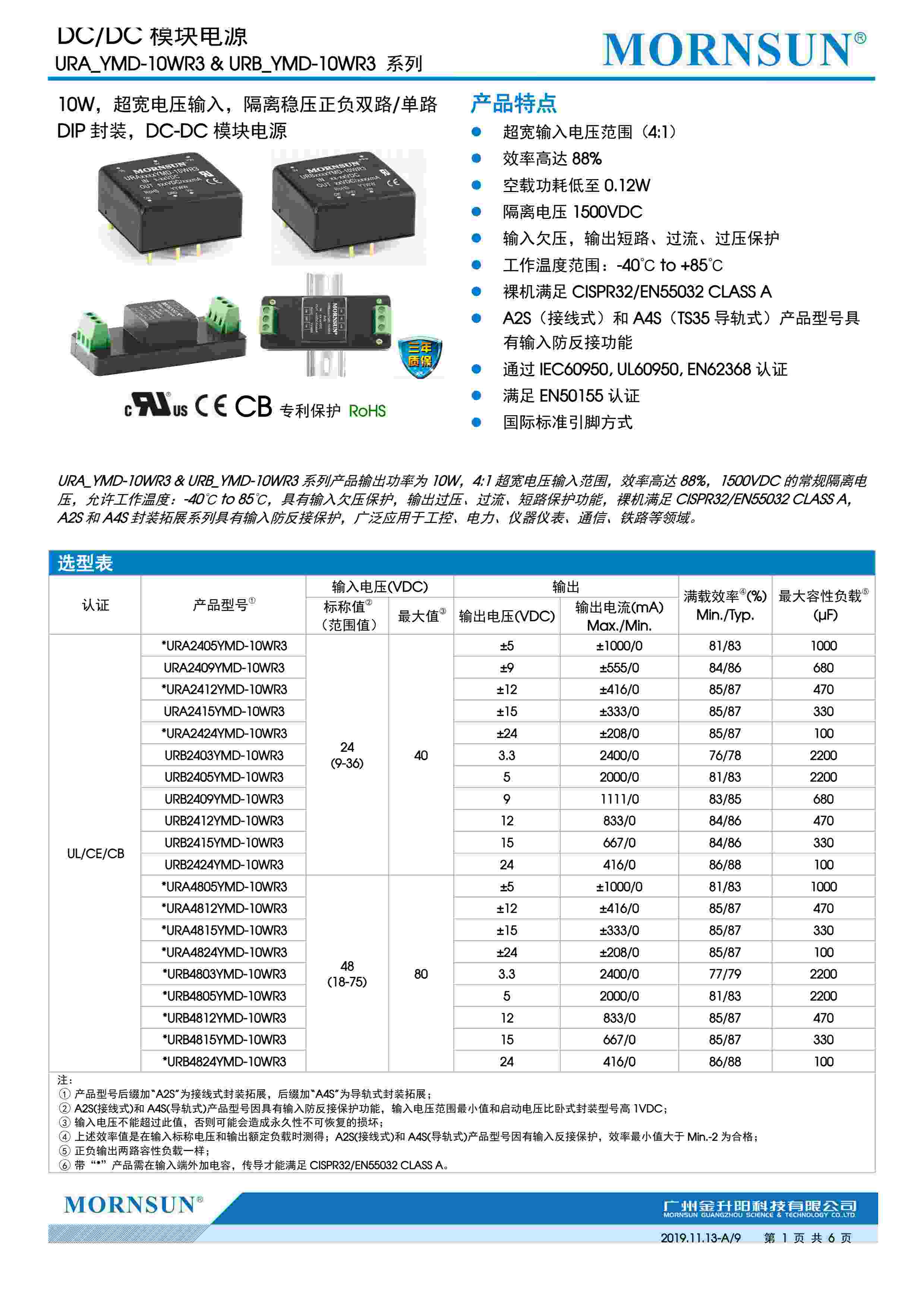 10W,超宽电压输入,隔离稳压正负双路/单路 产品特点 DIP 封装,DC-DC 模块电源
