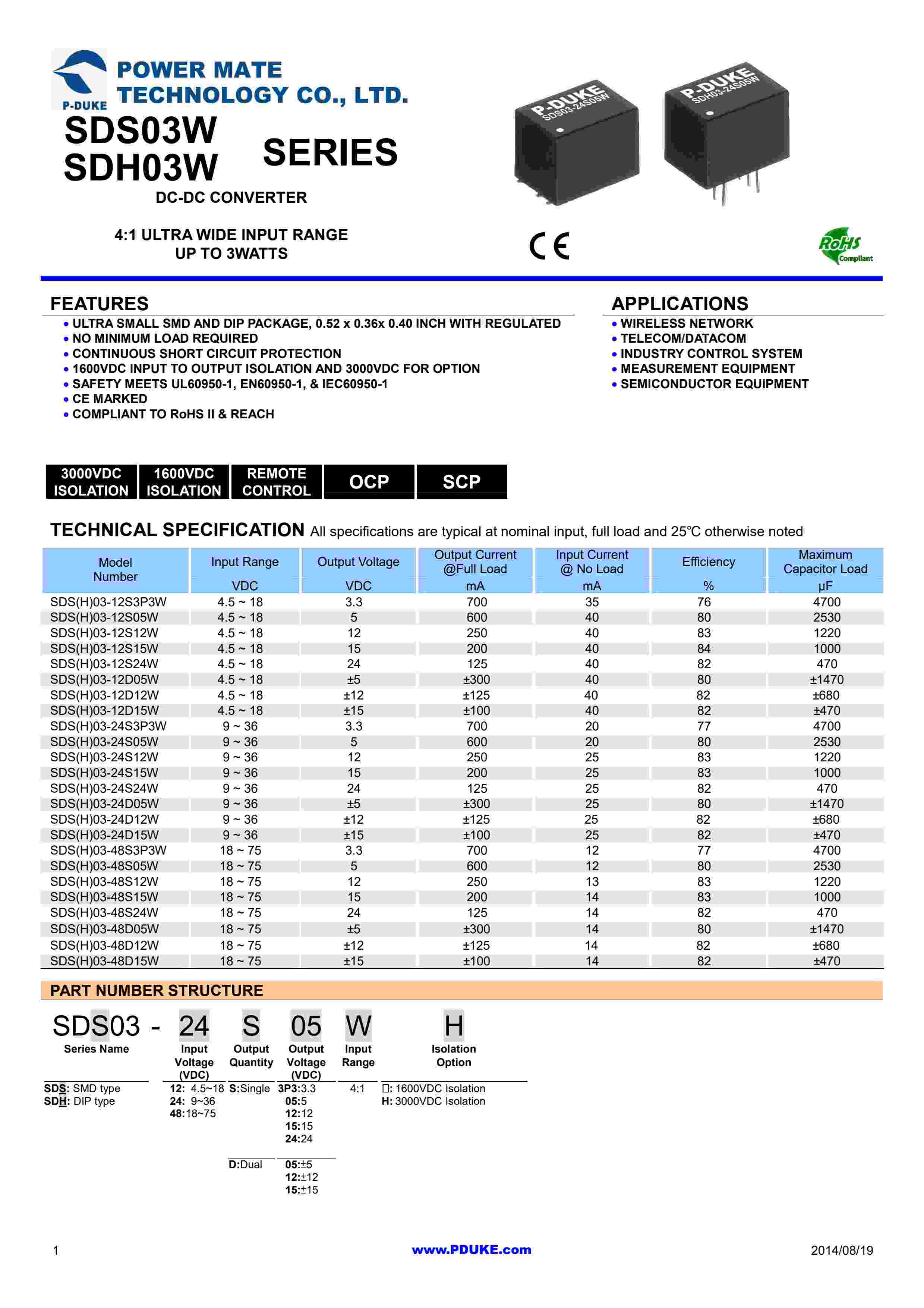 4:1 WIDE INPUT RANGE NO MINIMUM LOAD REQUIRED SAFETY MEETS UL60950-1, EN60950-1,