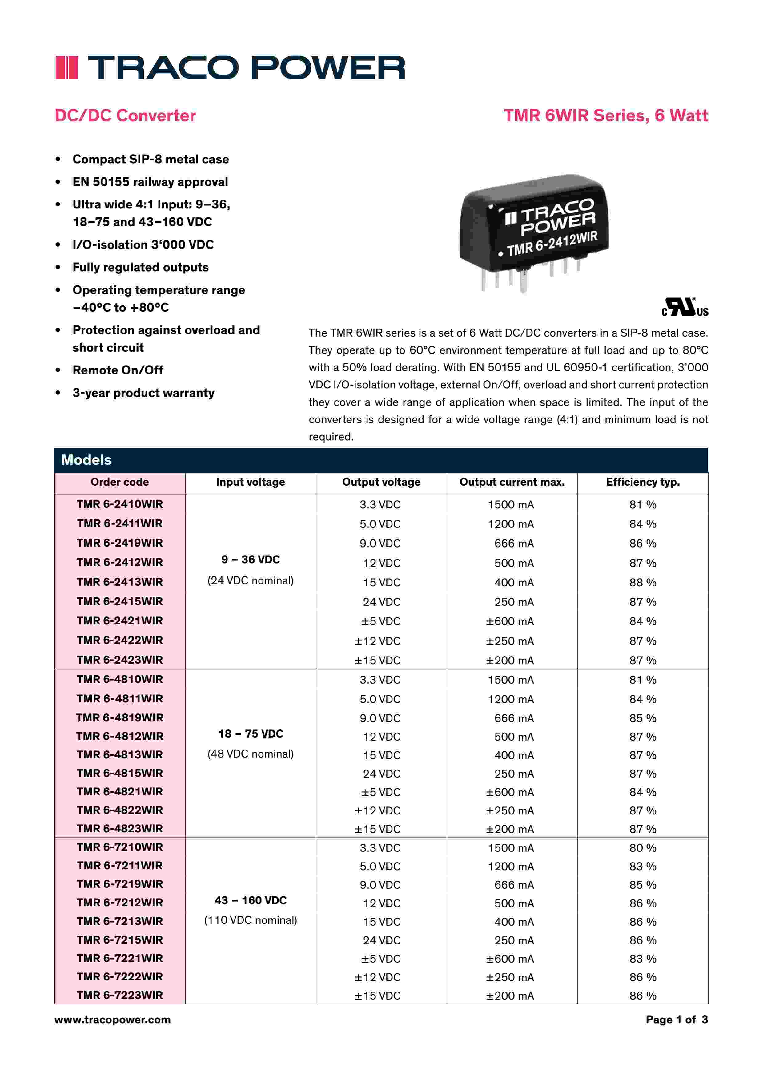 TMR 6WIR Series, 6 Watt