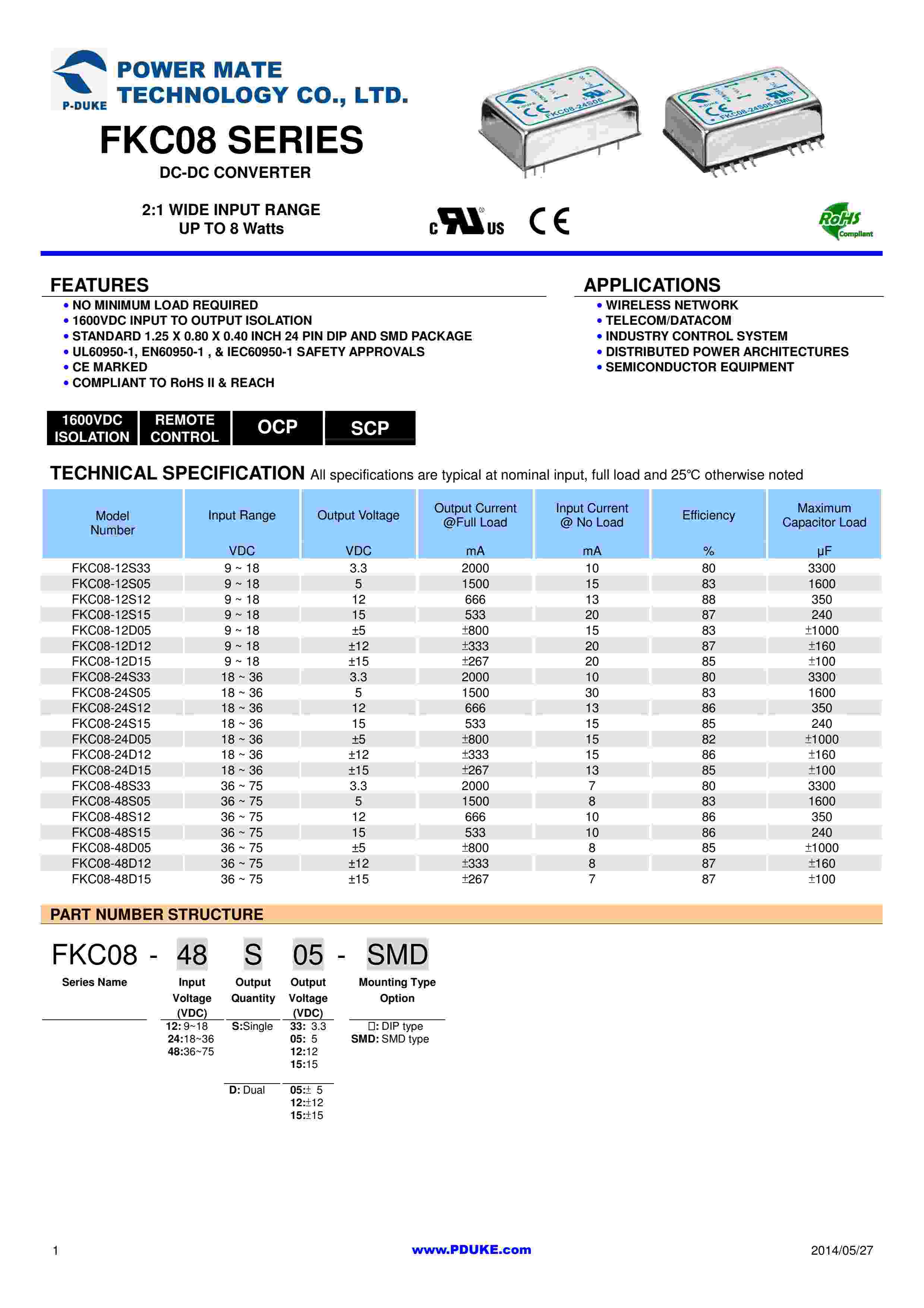 2:1 WIDE INPUT RANGE NO MINIMUM LOAD REQUIRED SAFETY MEETS UL60950-1, EN60950-1,