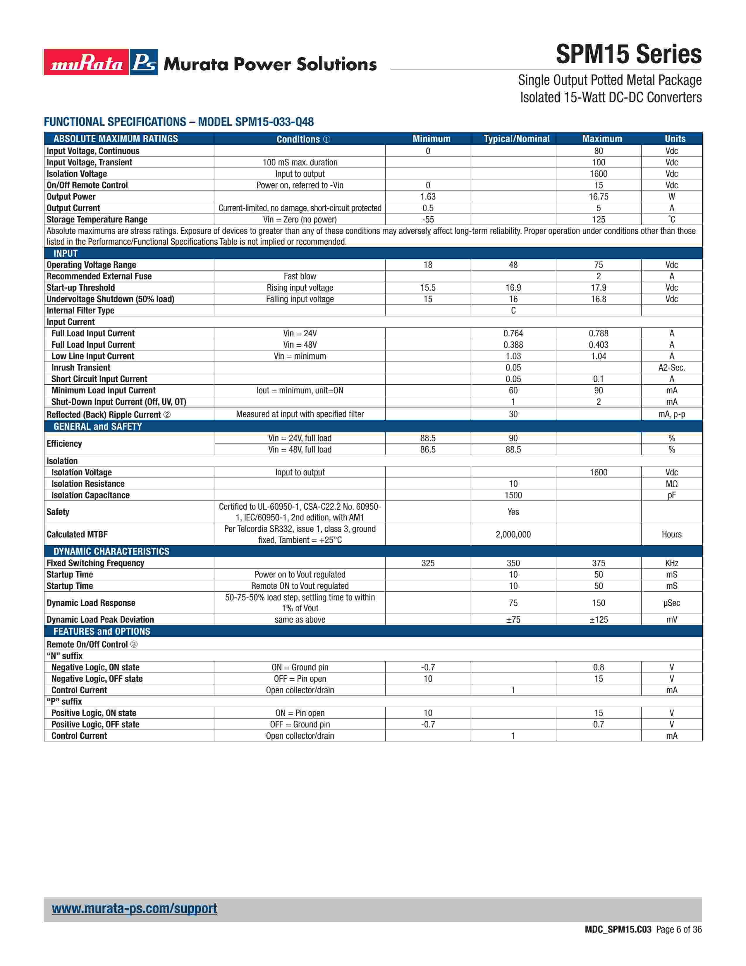 | 描 述: | Single Output Potted Metal Package Isolated 15-Watt DC-DC Converters | ||