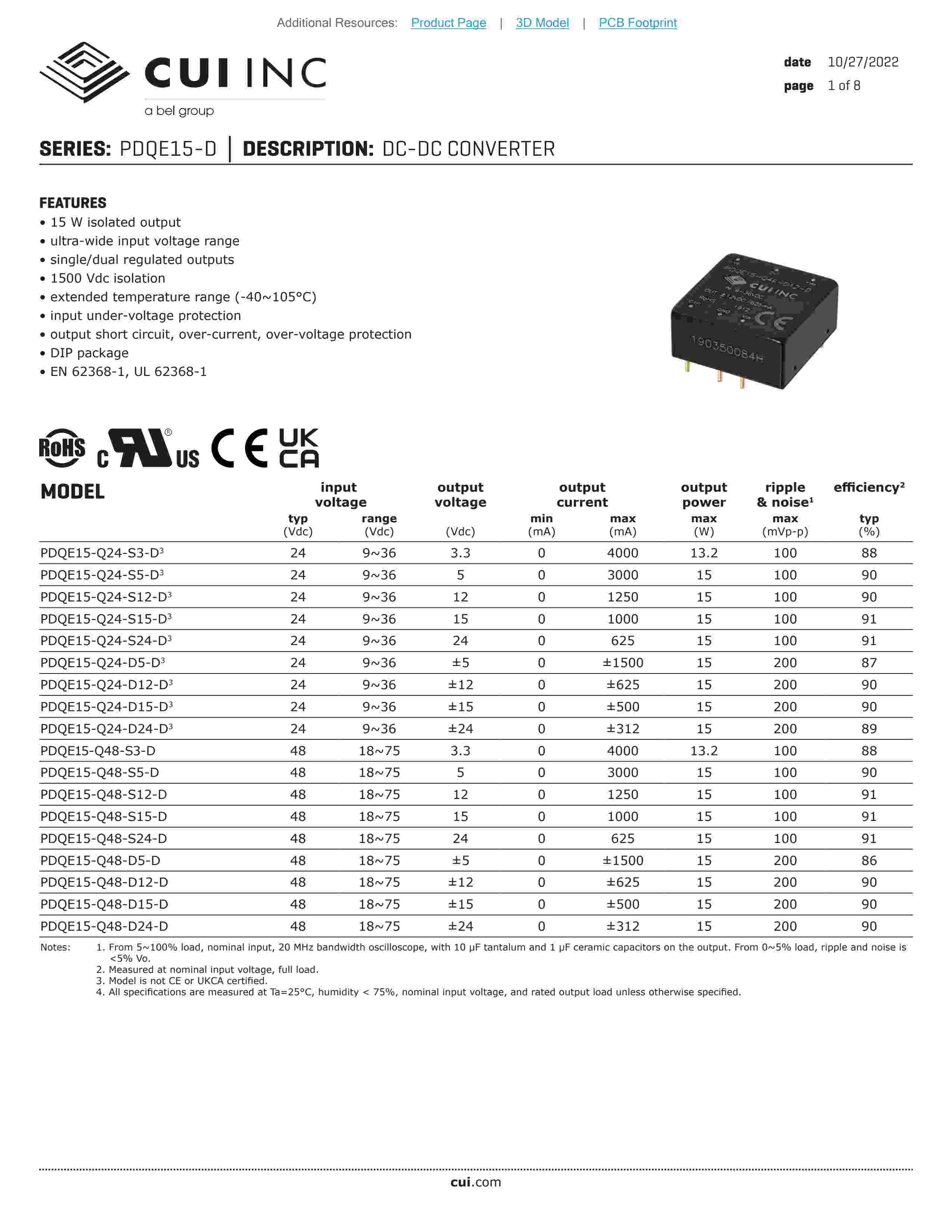 SERIES: PDQE15-D │ DESCRIPTION: DC-DC CONVERTER