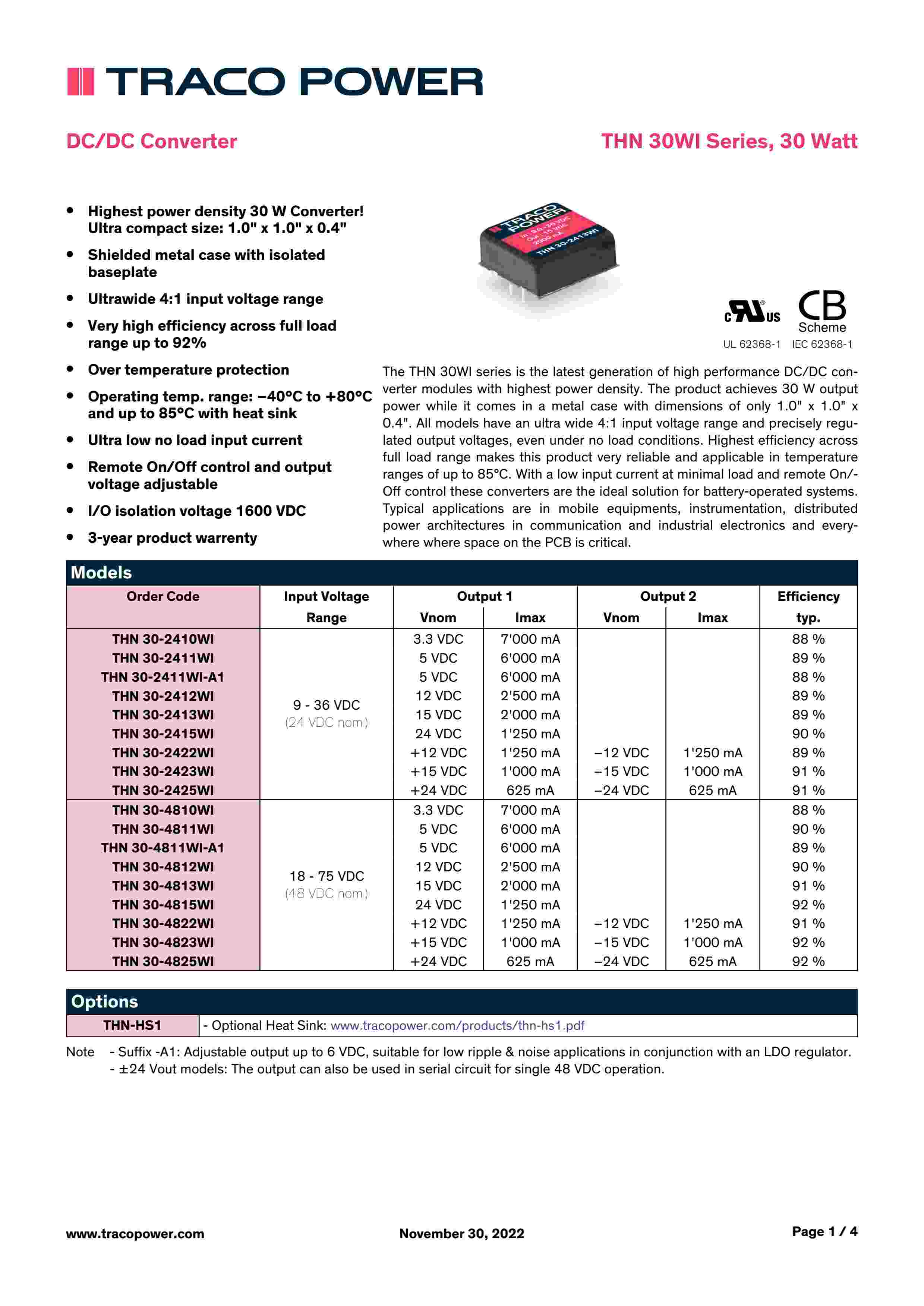 | 描 述: | THN 30WI Series, 30 Watt | ||