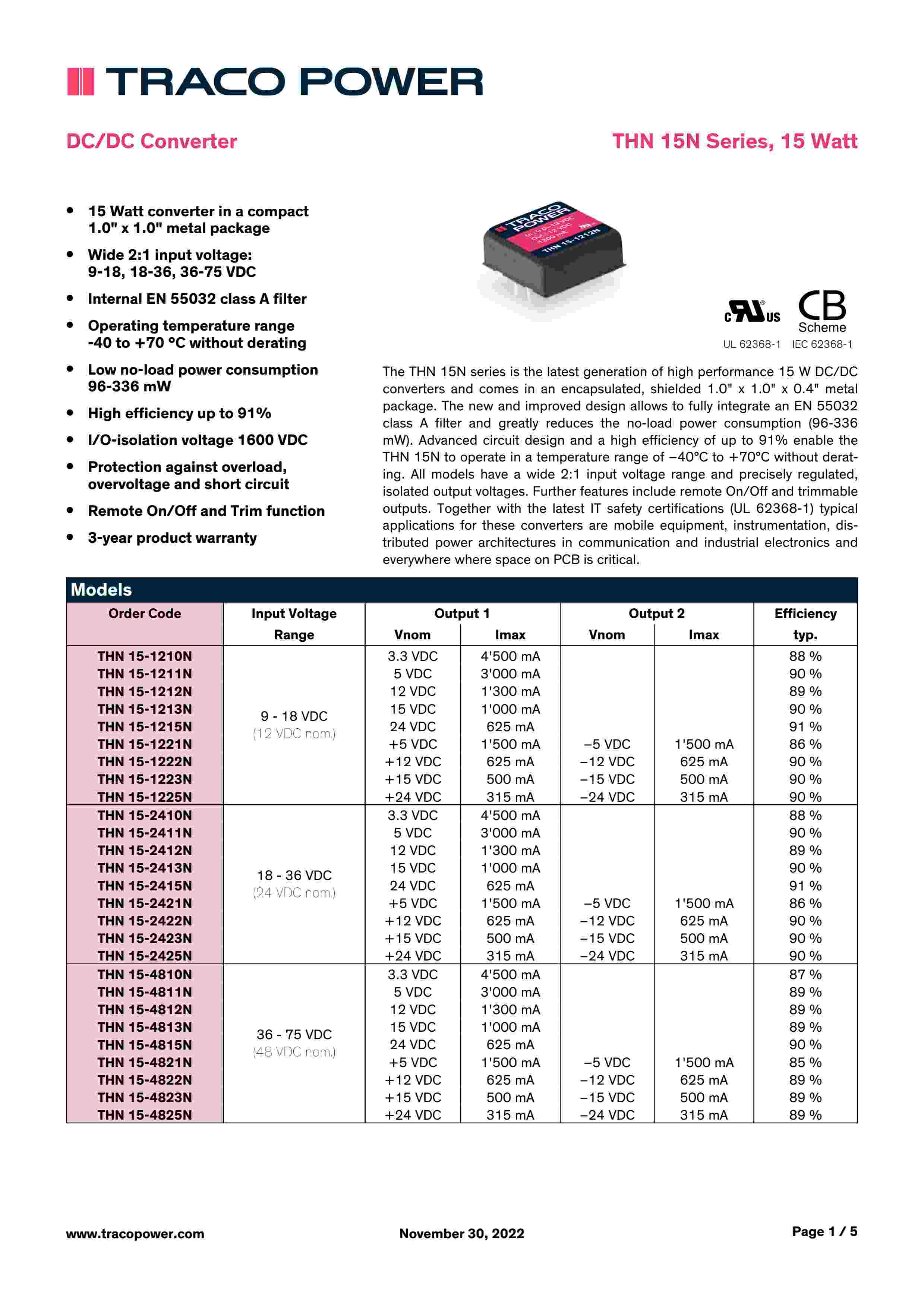 | 描 述: | THN 15N Series, 15 Watt | ||