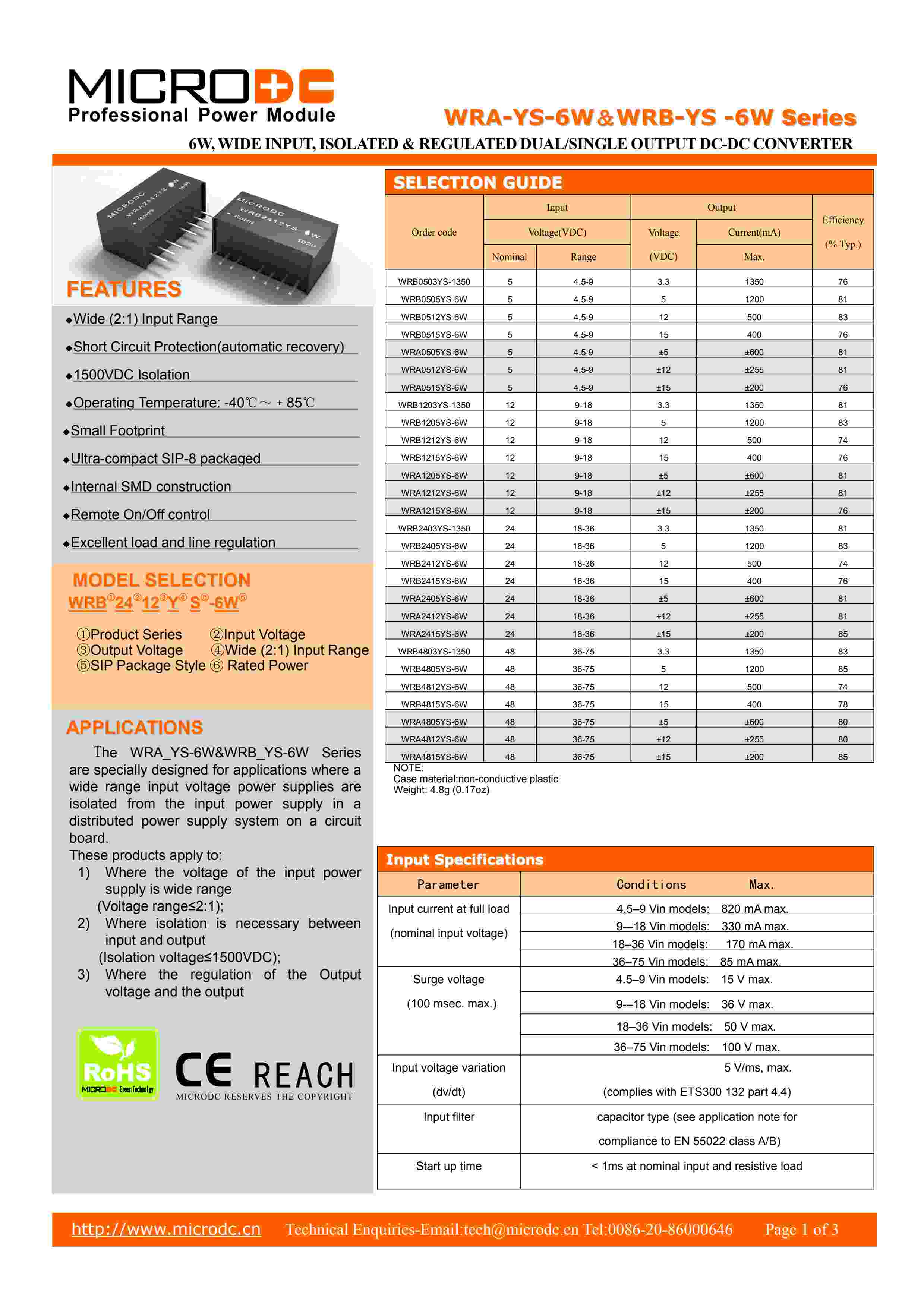 6W,WIDE INPUT,ISOLATED & REGULATED DUAL/SINGLE OUTPUT DC-DC CONVERTER