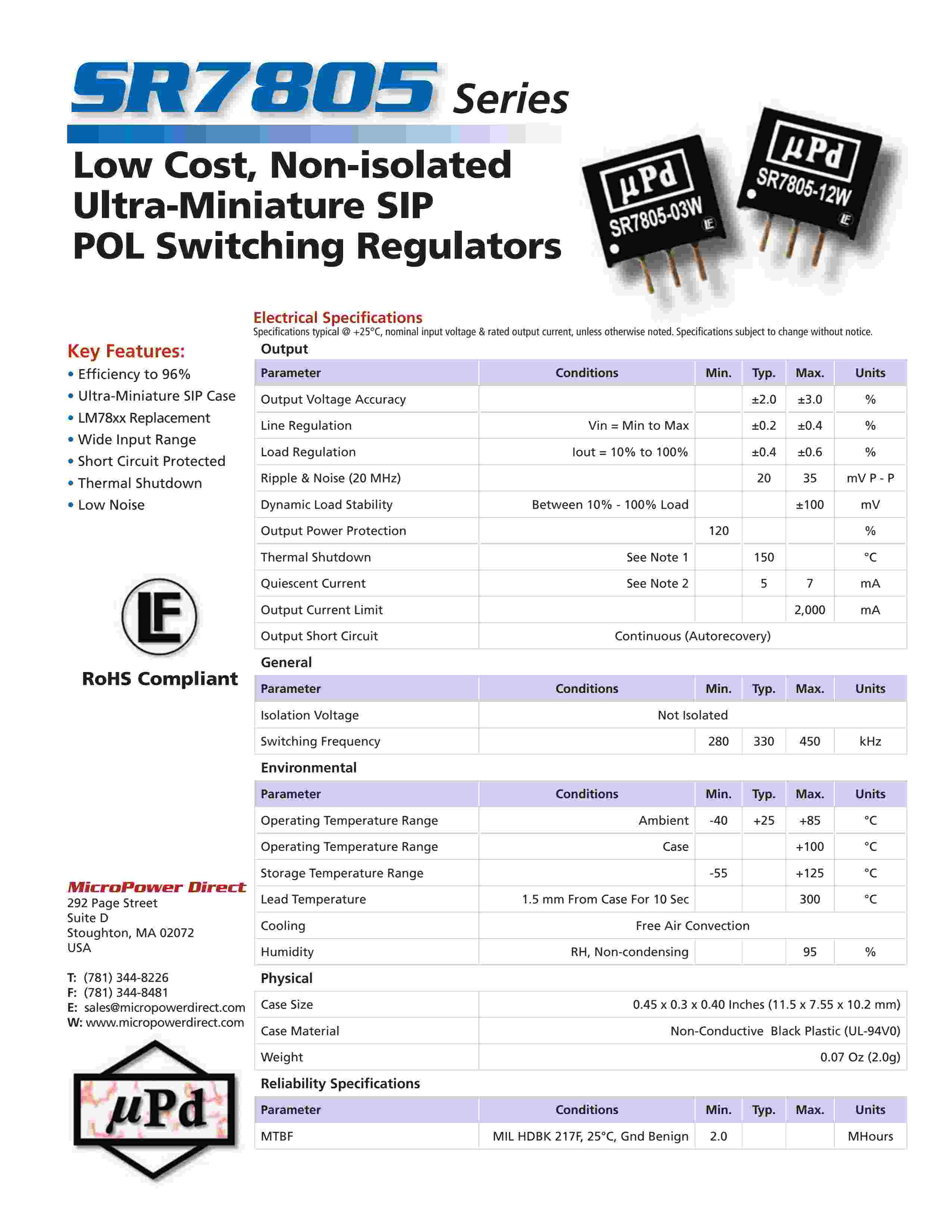 | 描 述: | Low Cost, Non-isolated Ultra-Miniature SIP POL Switching Regulators | ||