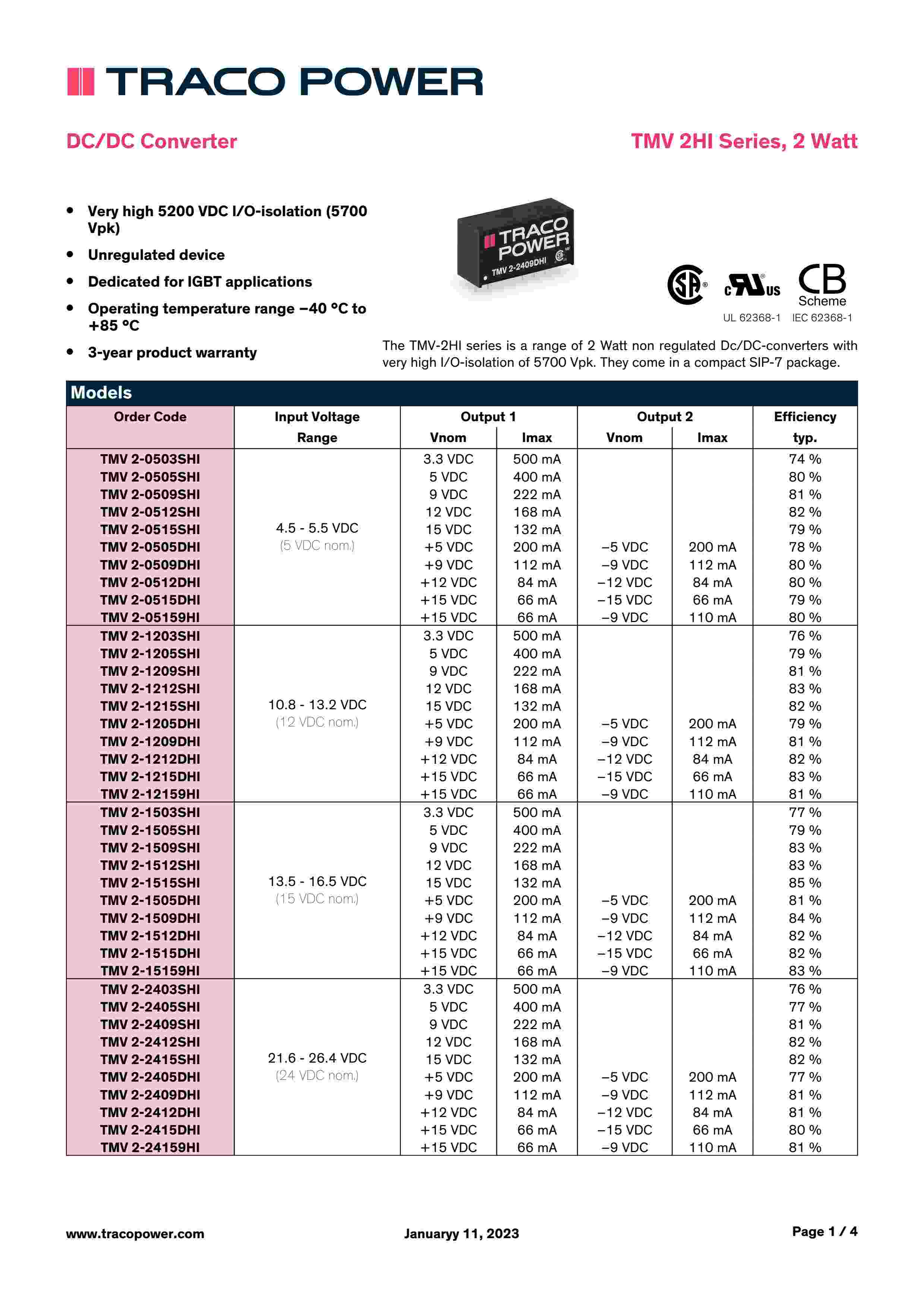 | 描 述: | TMV 2HI Series, 2 Watt | ||