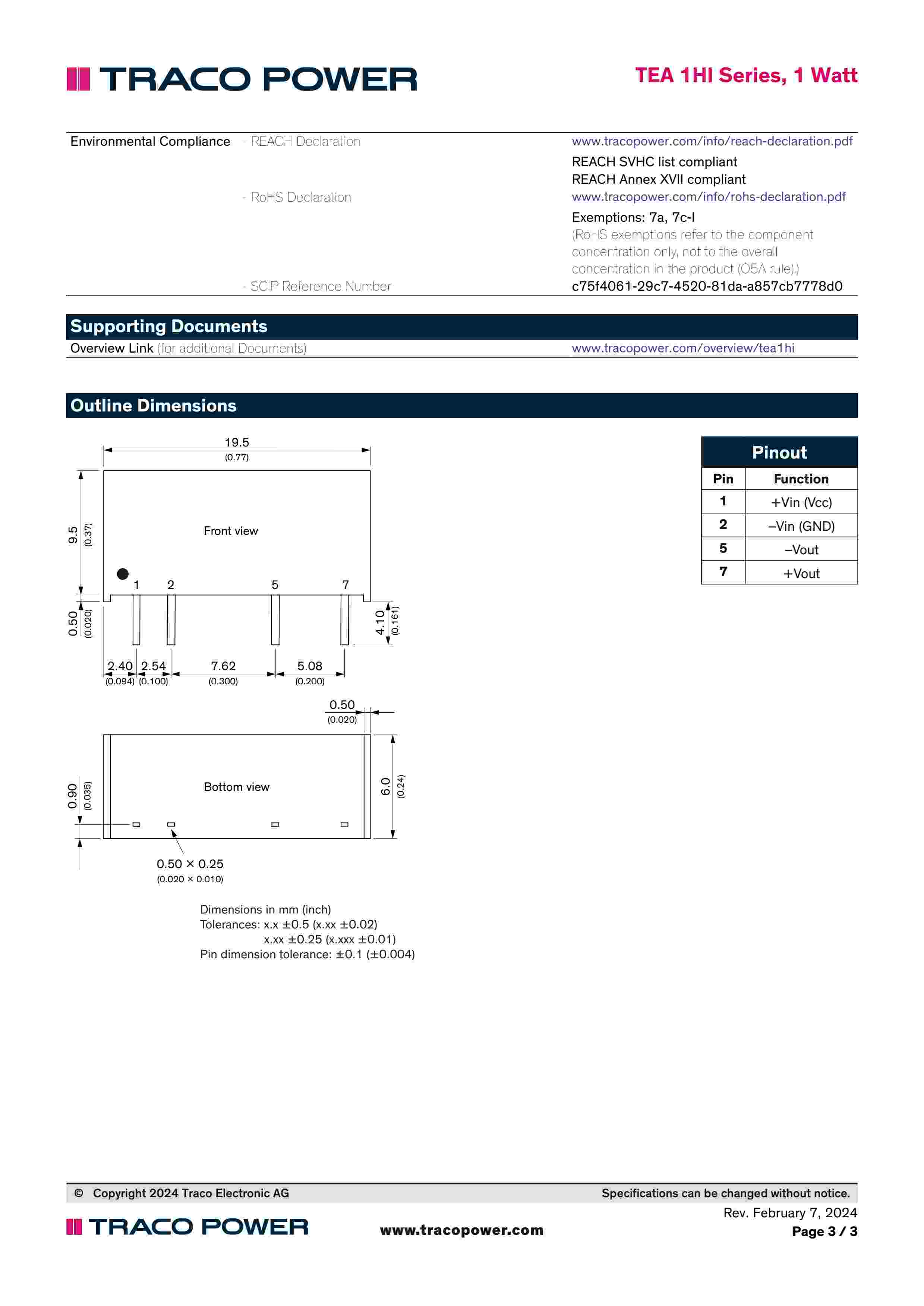 DC/DC Converter TEA 1HI Series, 1 Watt
