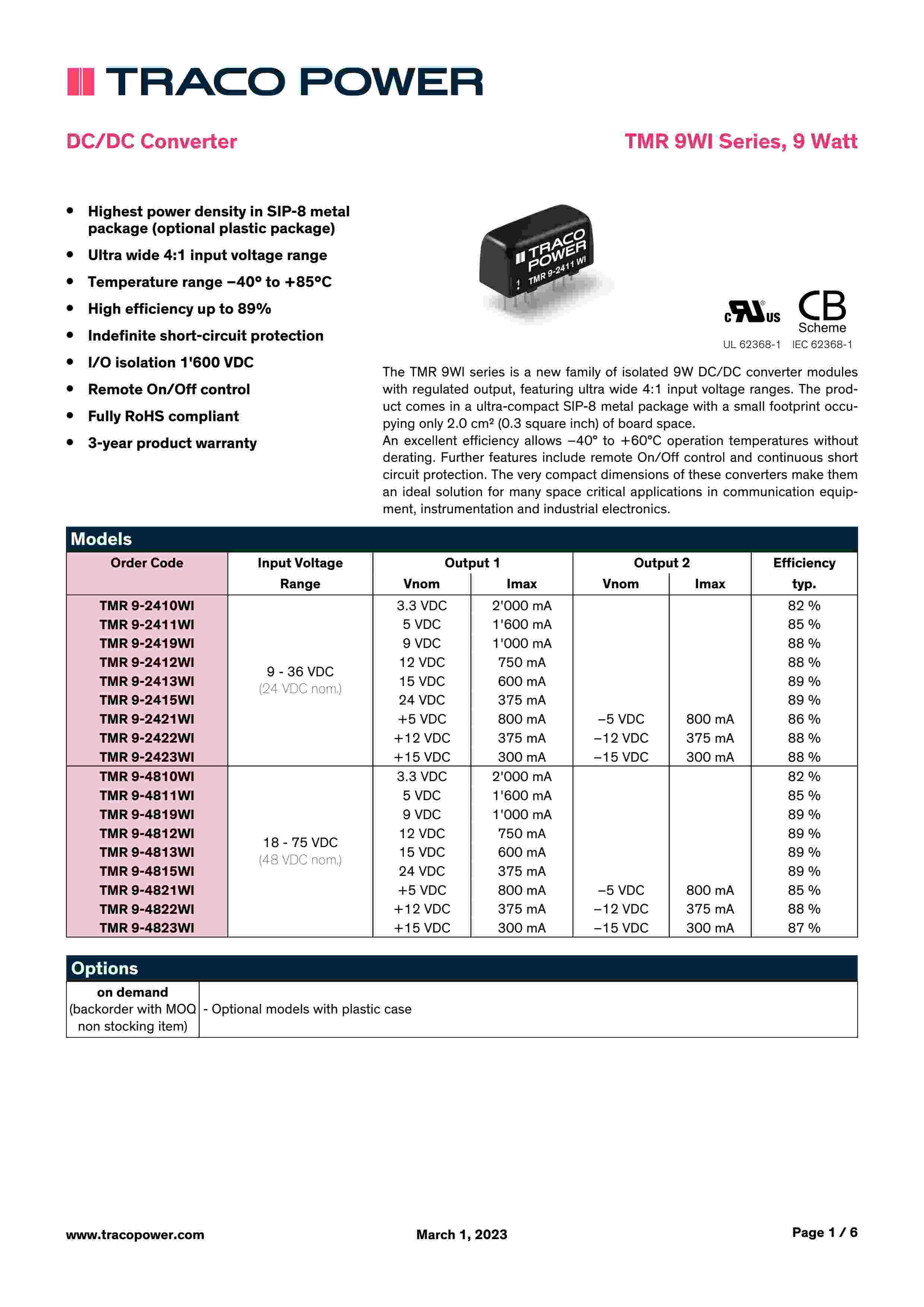 | 描 述: | DC/DC Converter TMR 9WI Series, 9 Watt | ||