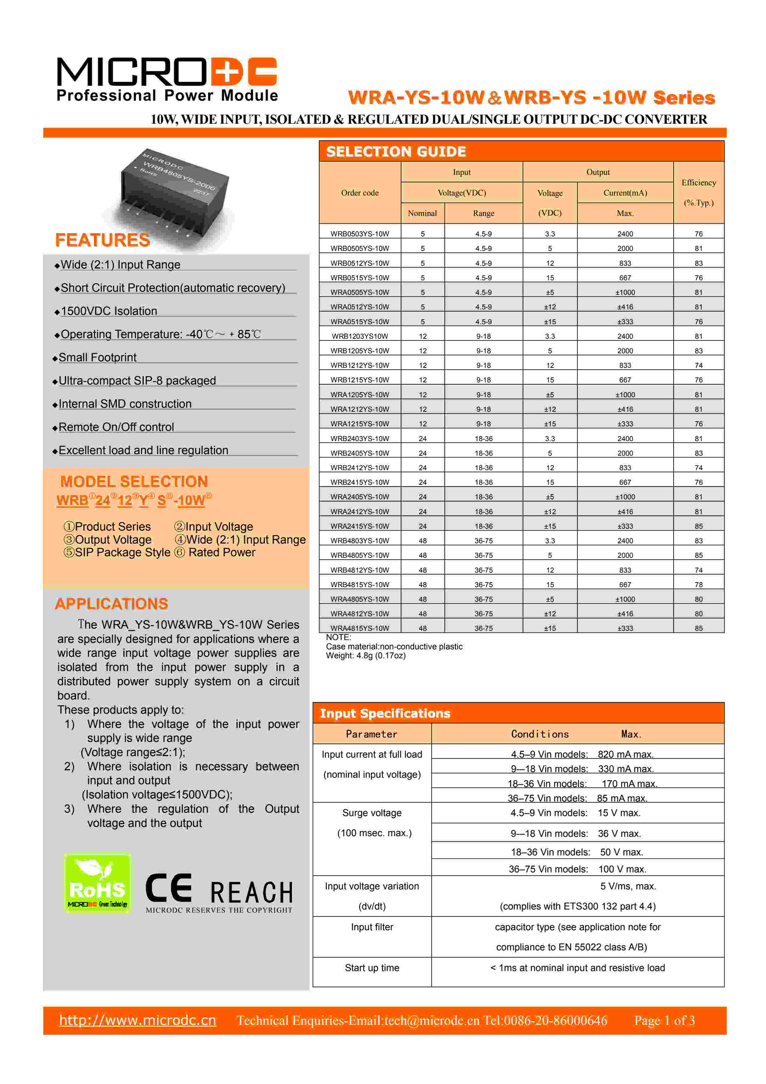 10W,WIDE INPUT,ISOLATED & REGULATED DUAL/SINGLE OUTPUT DC-DC CONVERTER
