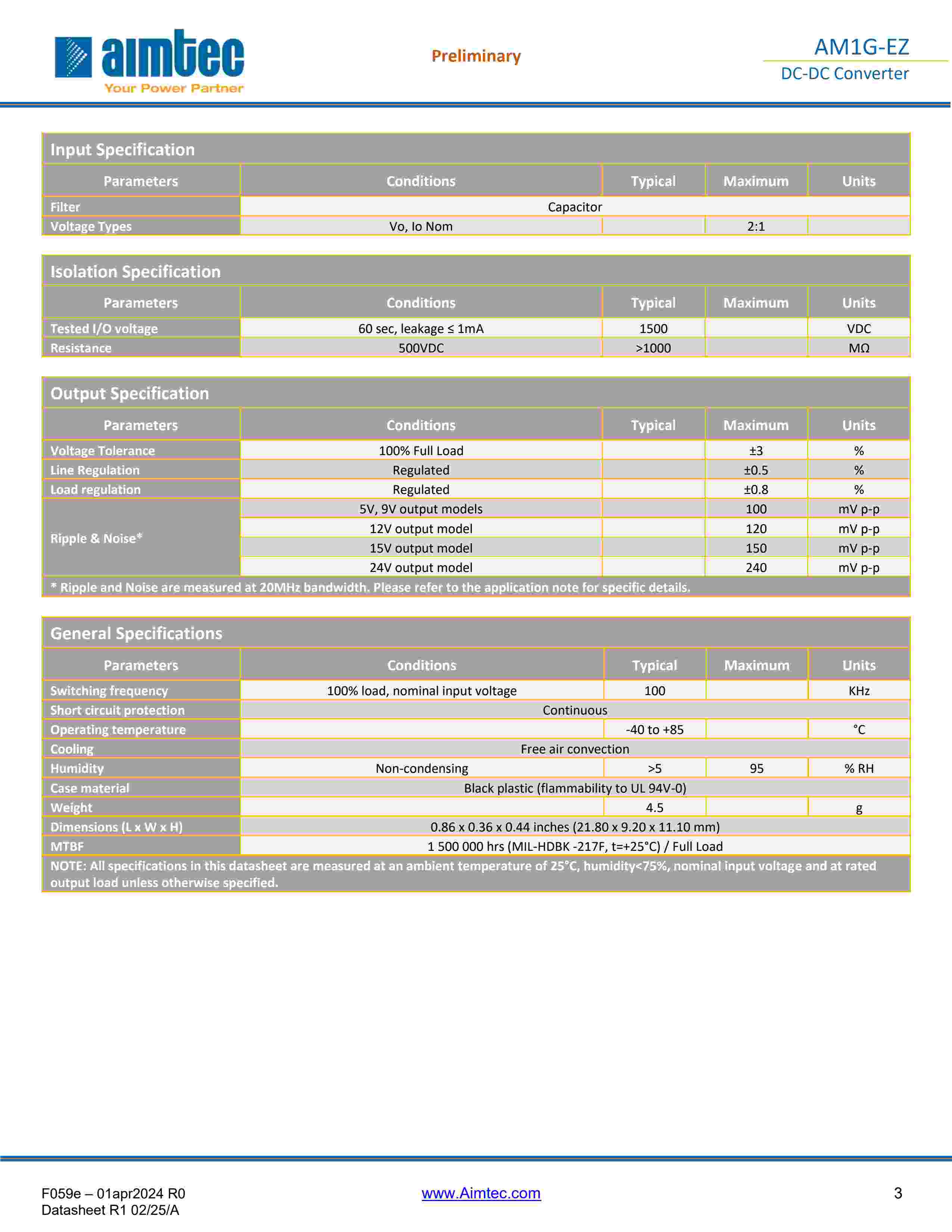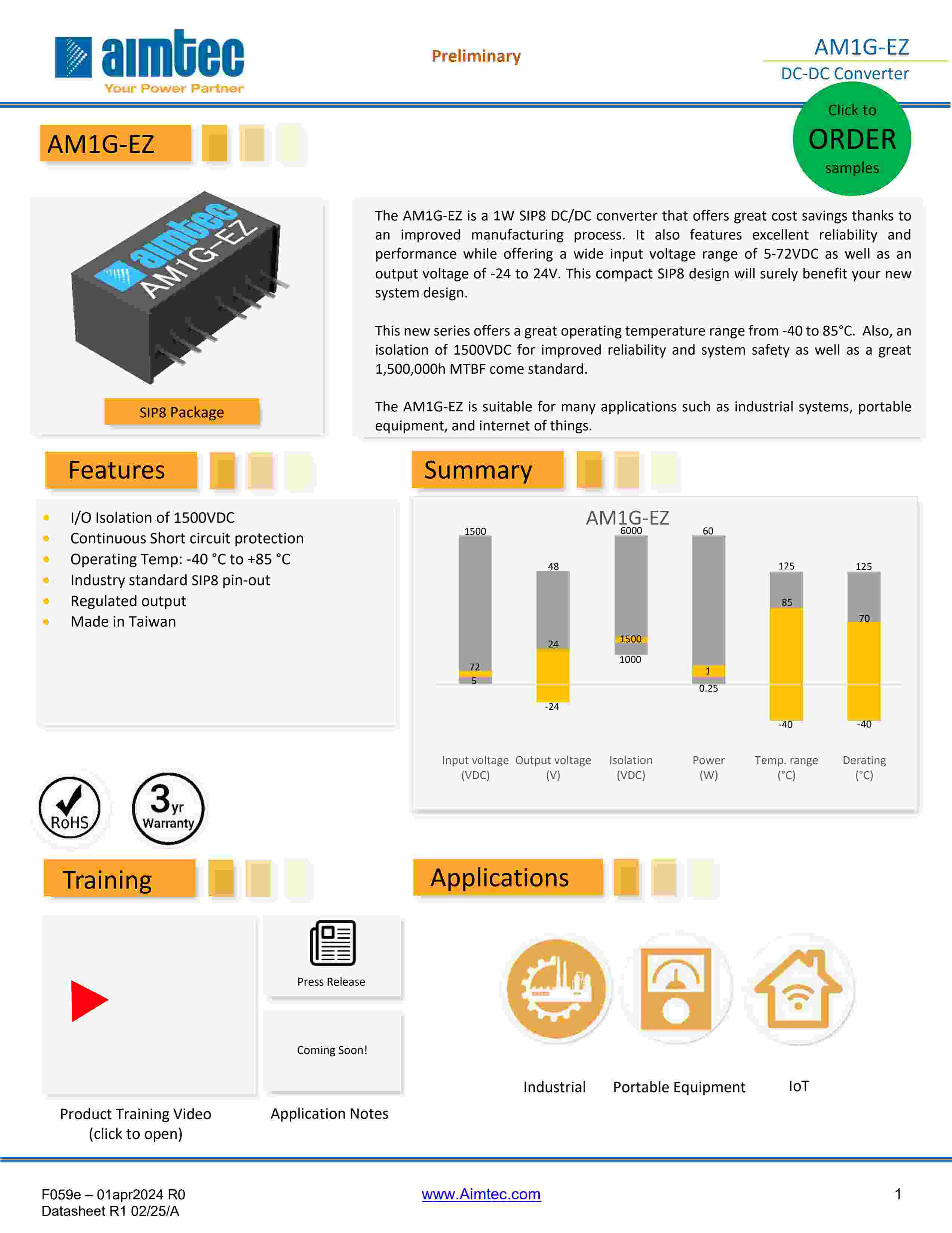 | 描 述: | The AM1G-EZ is a 1W SIP8 DC/DC converter | ||