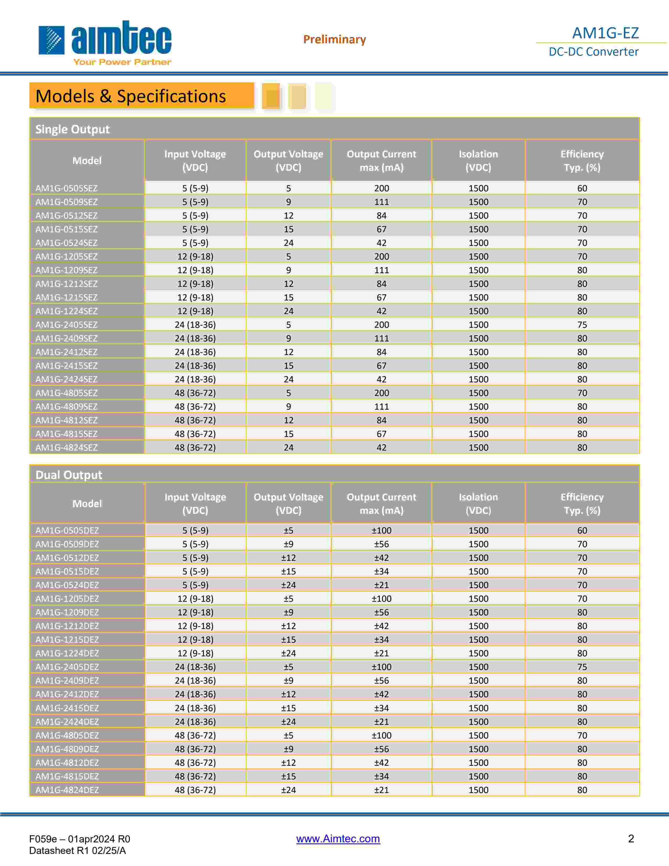 The AM1G-EZ is a 1W SIP8 DC/DC converter that offers great cost savings thanks to an improved manufacturing process. It also features excellent reliability and performance while offering a wide input voltage range of 5-72VDC as well as an output voltage of -24 to 24V. This compact SIP8 design will surely benefit your new system design. This new series offers a great operating temperature range from -40 to 85°C. Also, an isolation of 1500VDC for improved reliability and system safety as well as a great 1,500,000h MTBF come standard. The AM1G-EZ is suitable for many applications such as industrial systems, portable equipment, and internet of things.