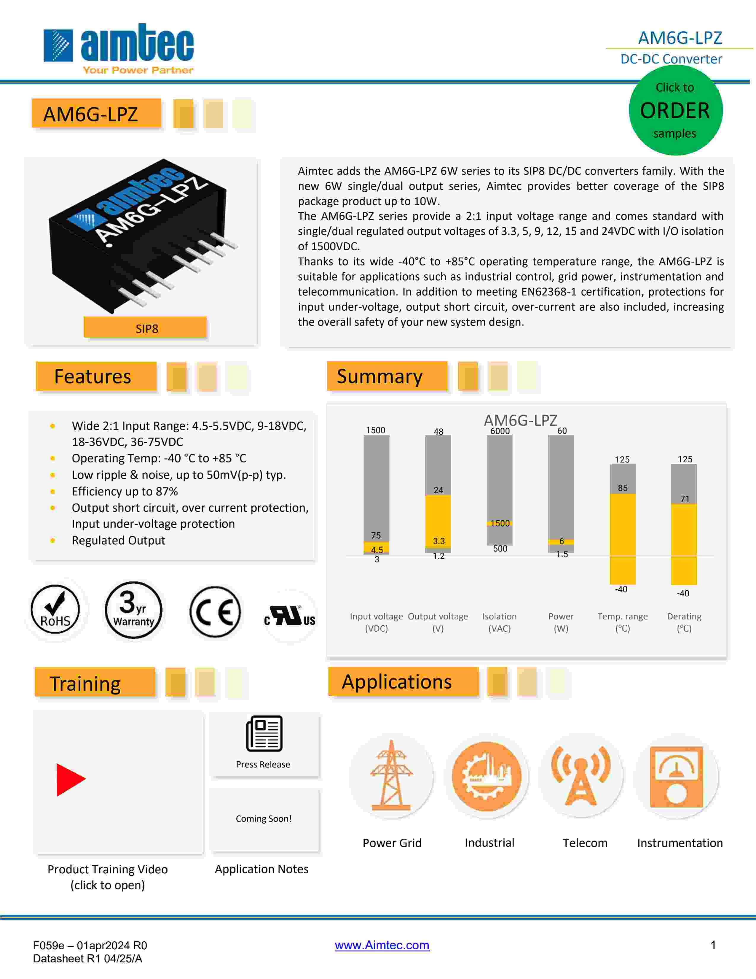 | 描 述: | the AM6G-LPZ 6W series to its SIP8 DC/DC converters | ||