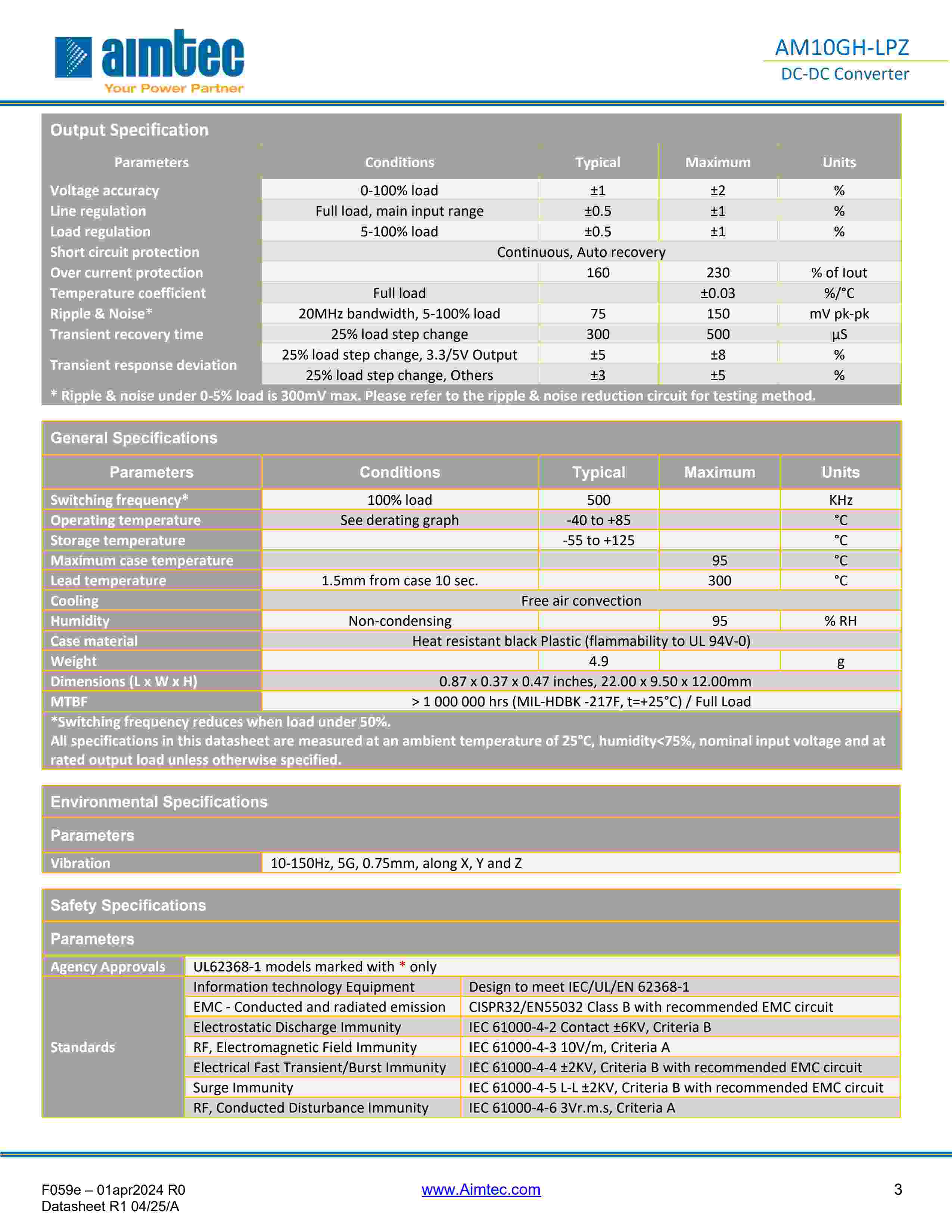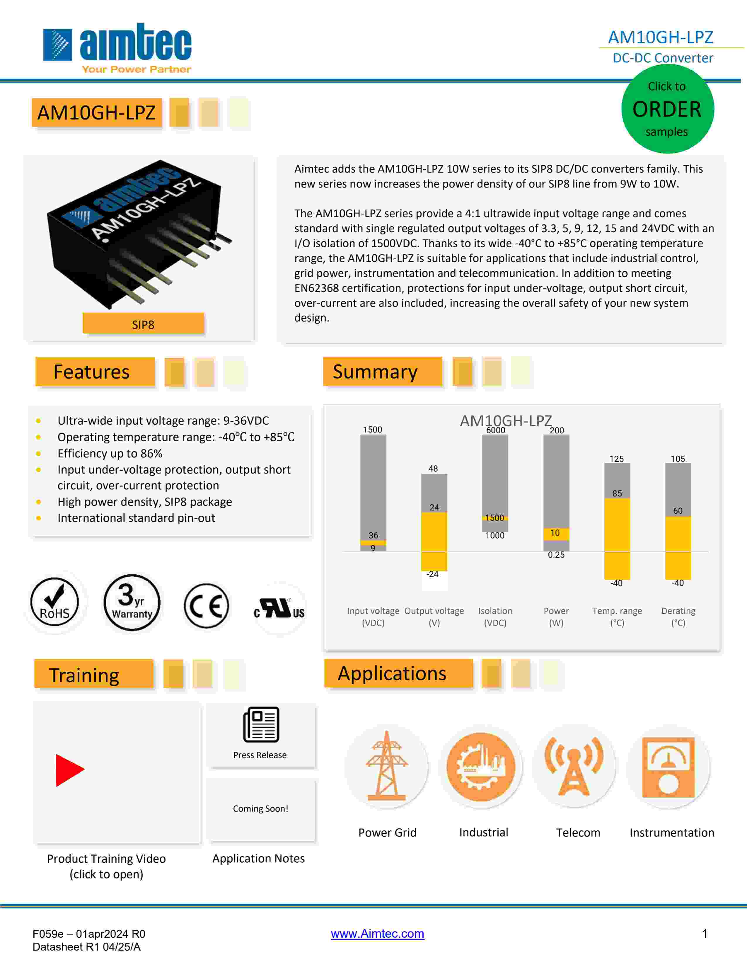| 描 述: | the AM10GH-LPZ 10W series to its SIP8 DC/DC converters | ||