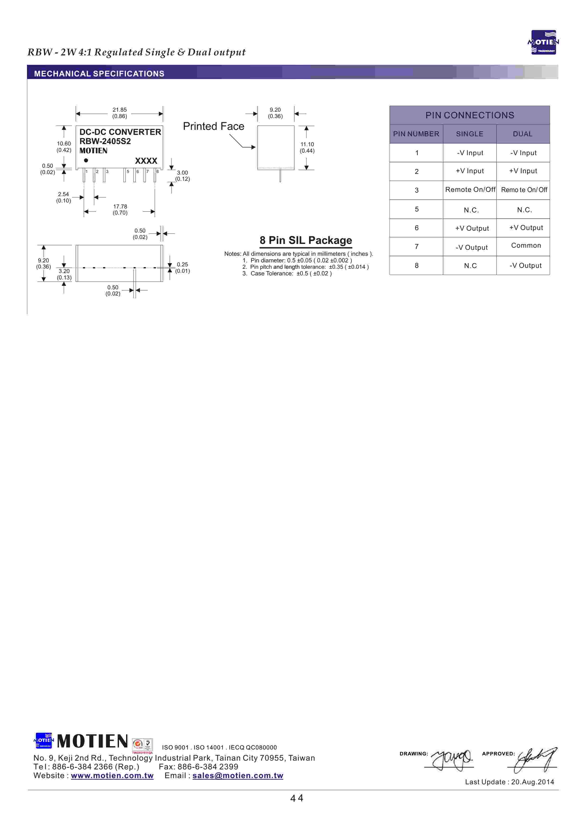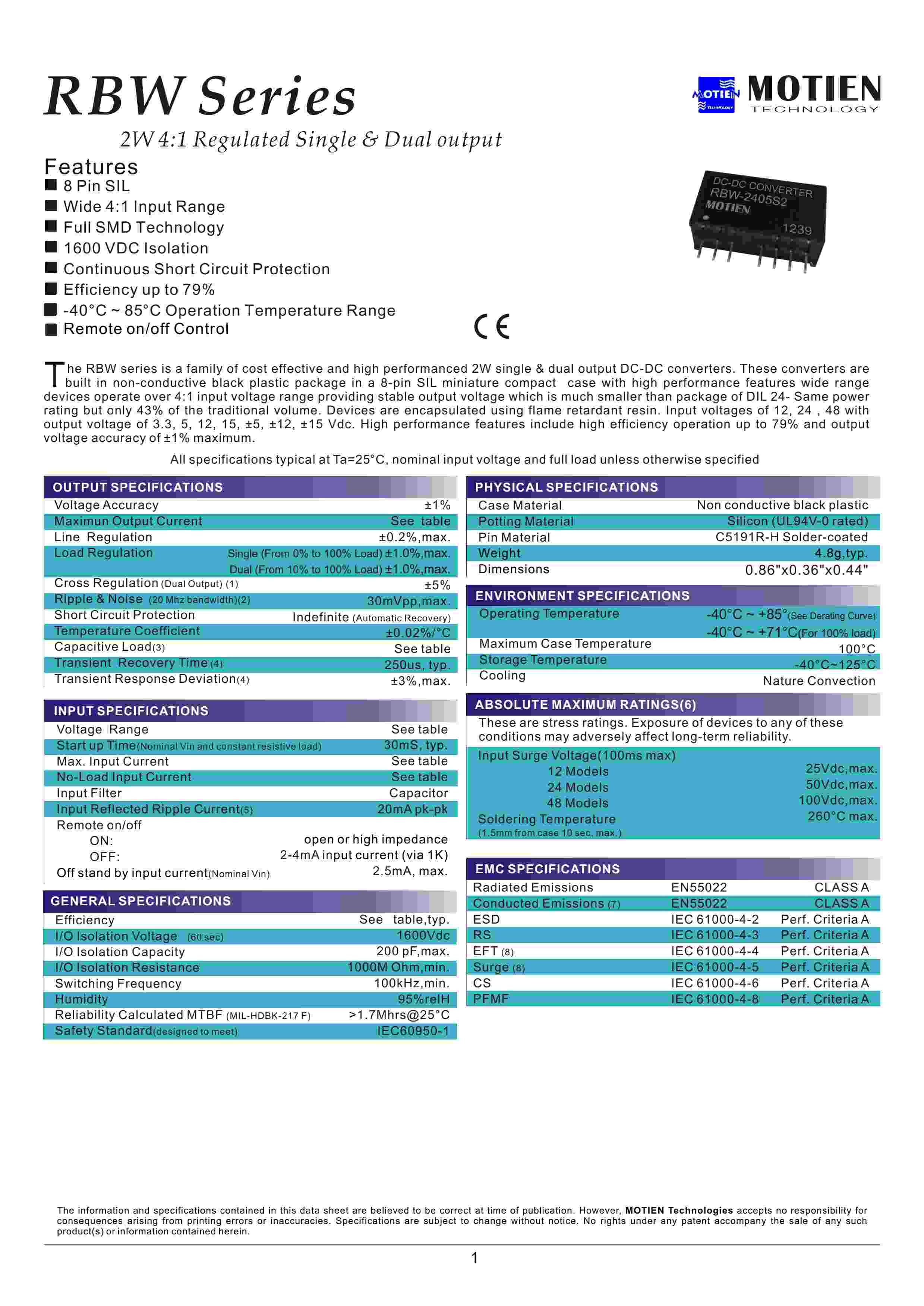 | 描 述: | 2W4:1 Regulated Single & Dual output | ||