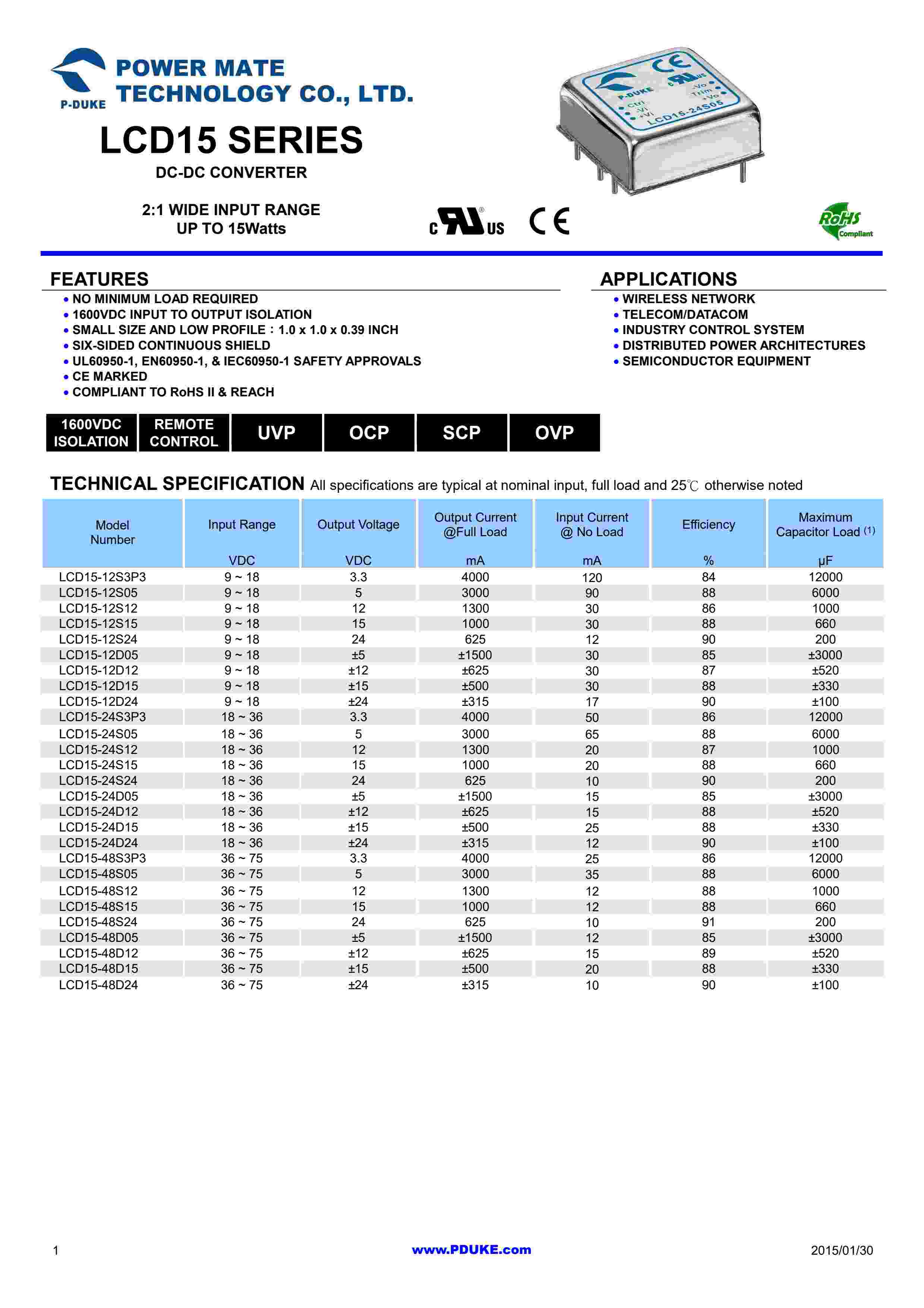 2:1 ULTRA WIDE INPUT RANGE , NO MINIMUM LOAD REQUIRED,COMPLIANT TO RoHS II