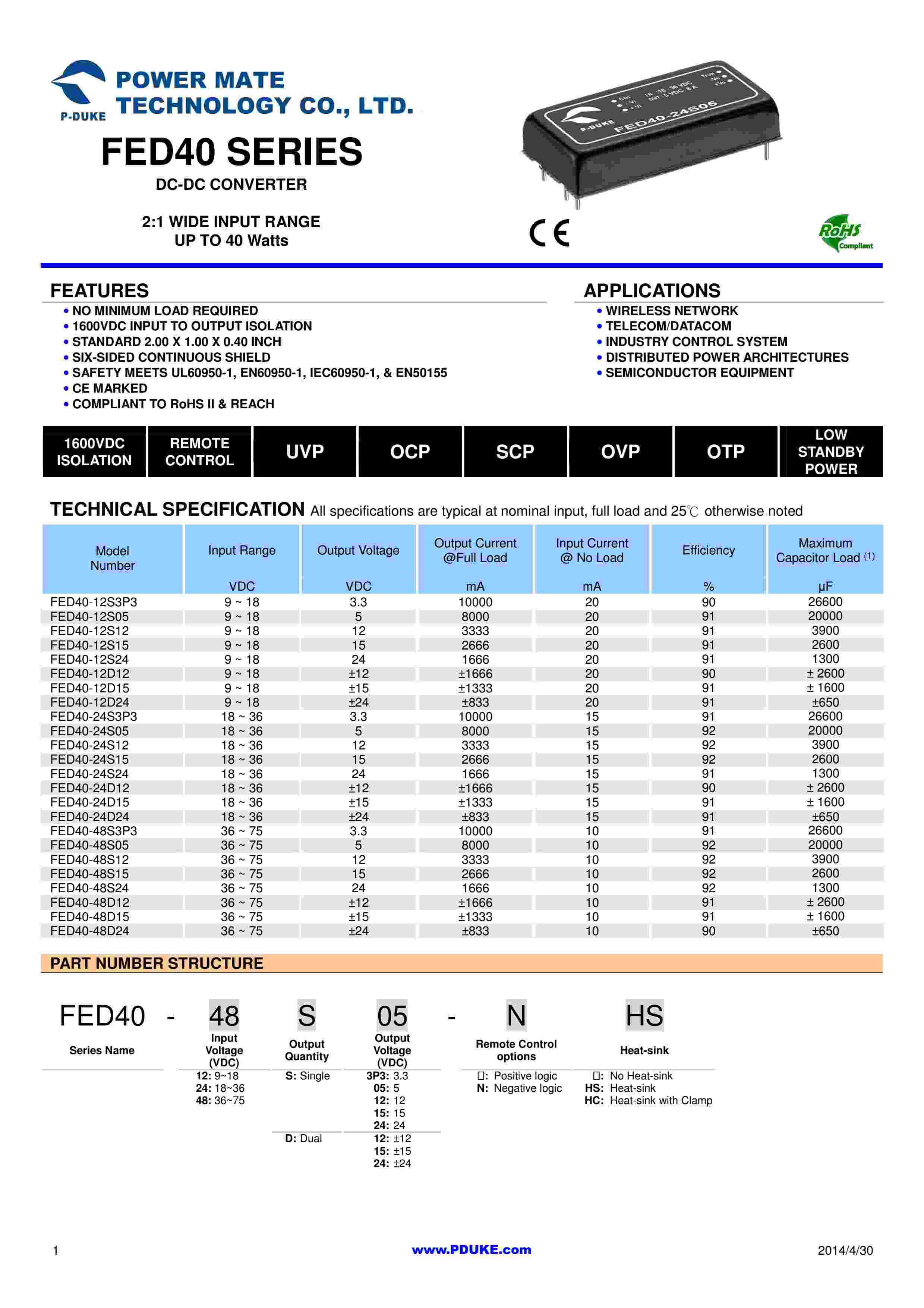 2:1 ULTRA WIDE INPUT RANGE , NO MINIMUM LOAD REQUIRED,COMPLIANT TO RoHS II