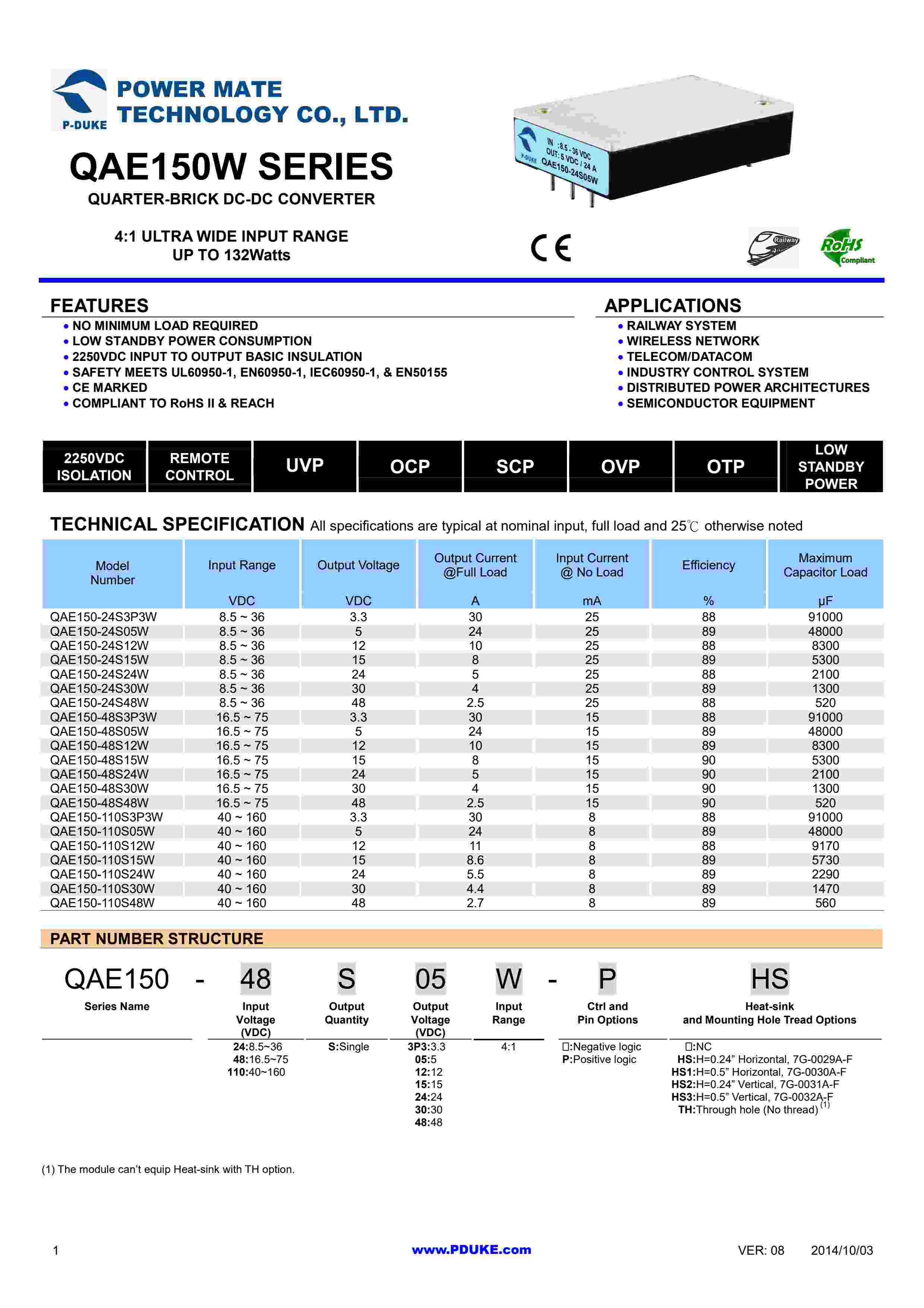 4:1 ULTRA WIDE INPUT VOLTAGE RANGE ,FIXED SWITCHING FREQUENCY,• COMPLIANT TO RoHS II