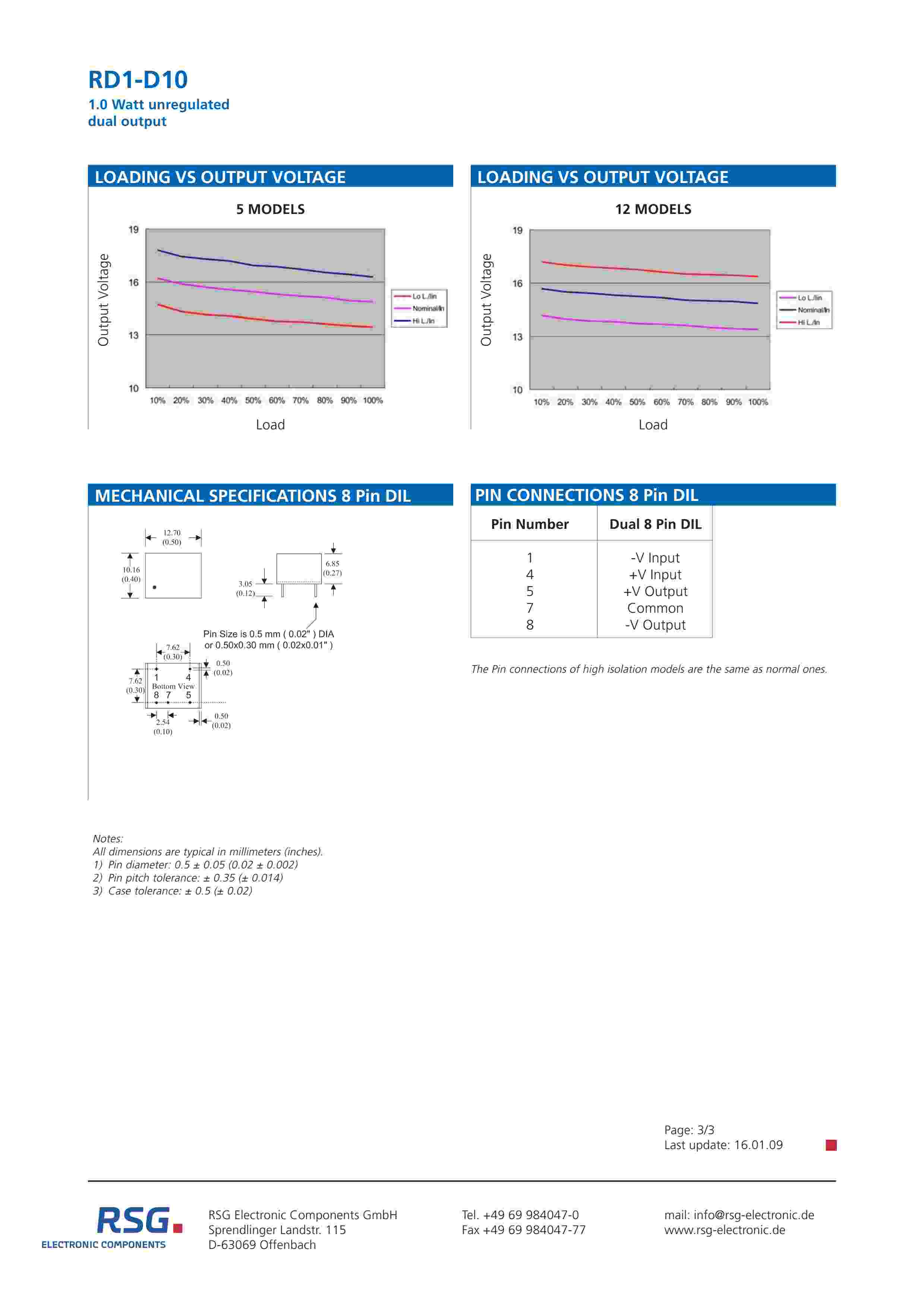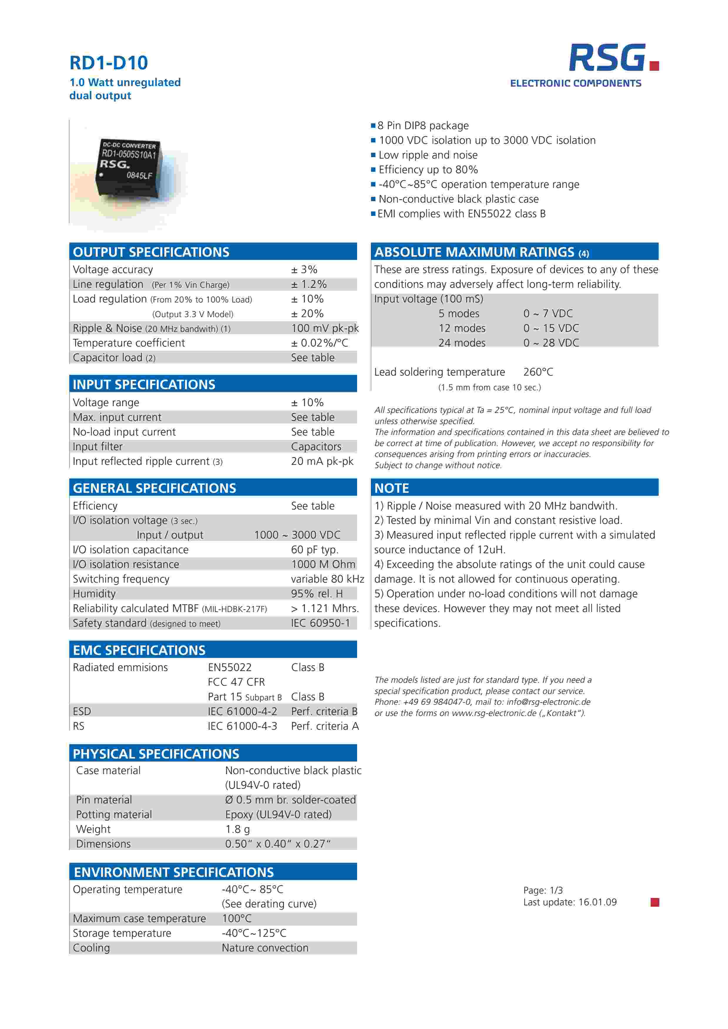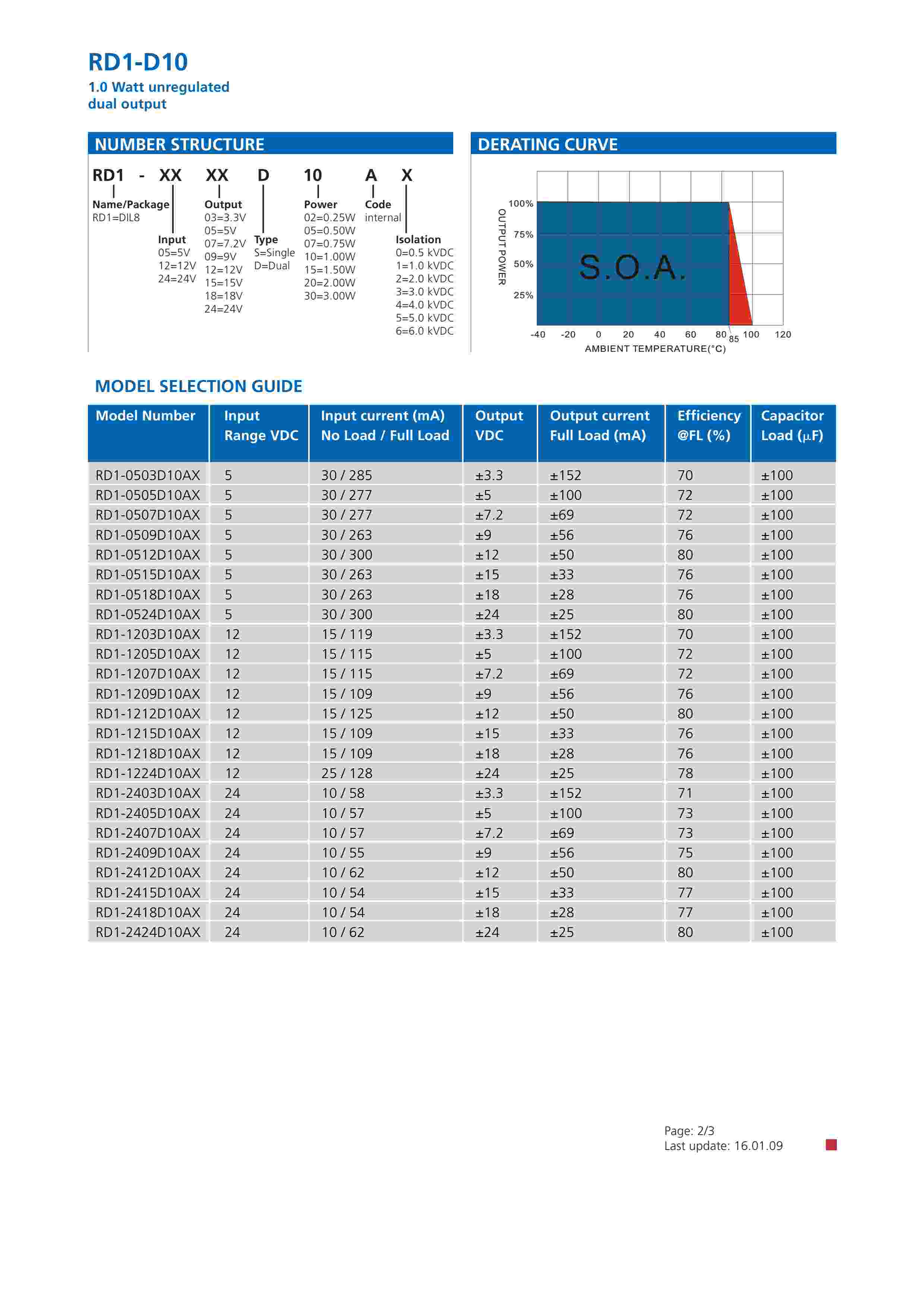 1.0 Watt unregulated dual output