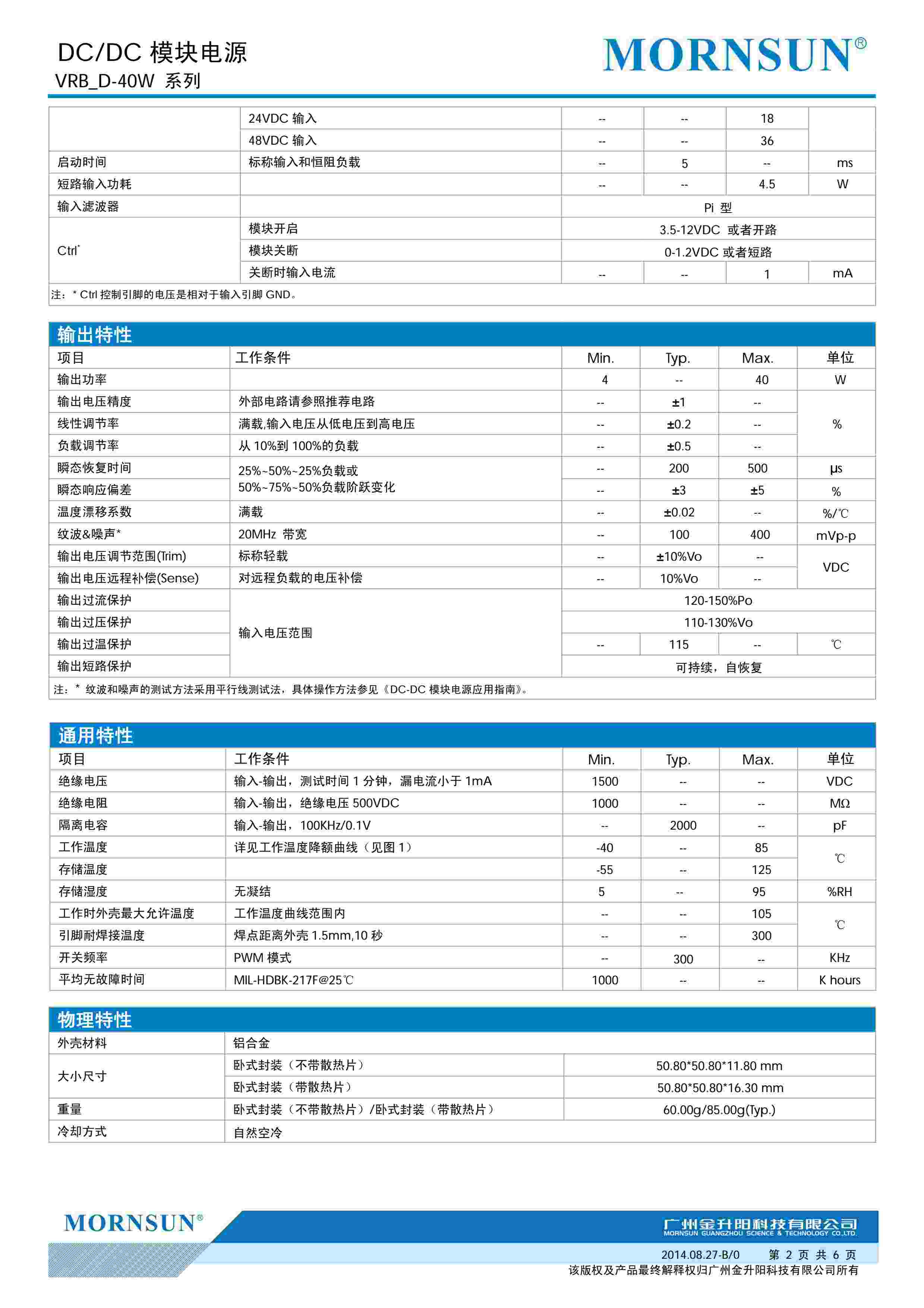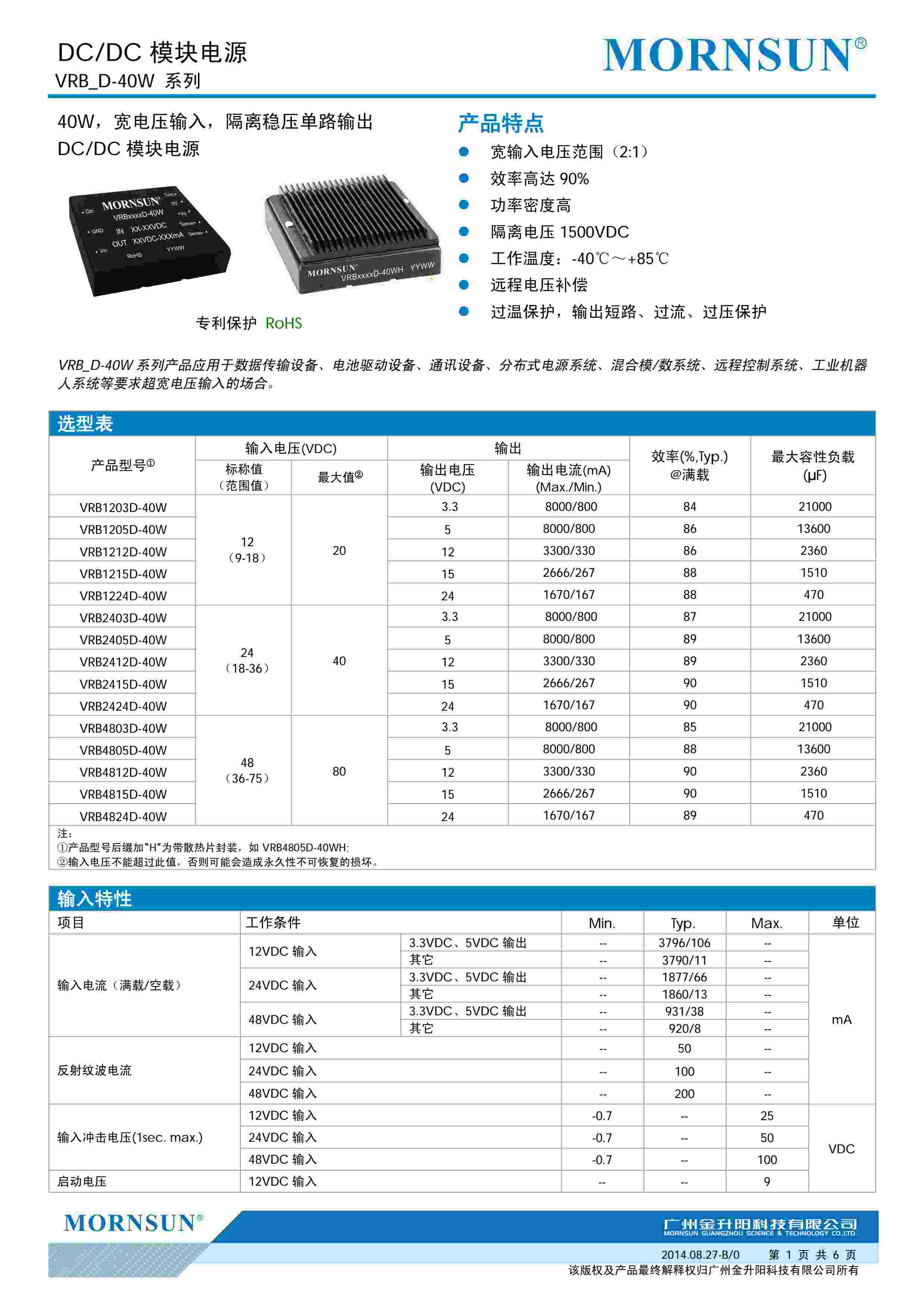 40W,宽电压输入,隔离稳压单路输出 DC/DC 模块电源