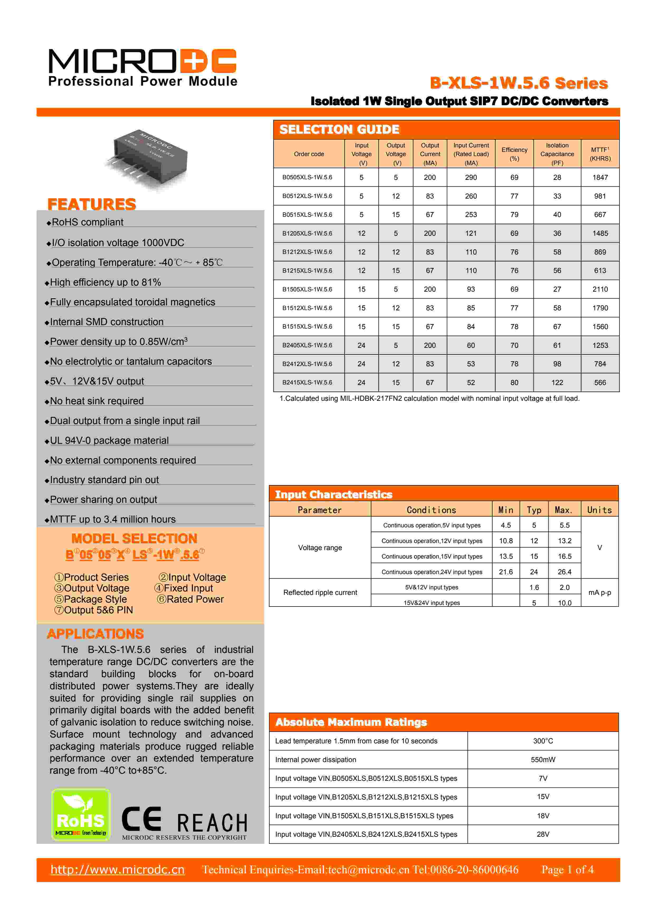 Isolated 1W Single Output SIP7 DC/DC Converters