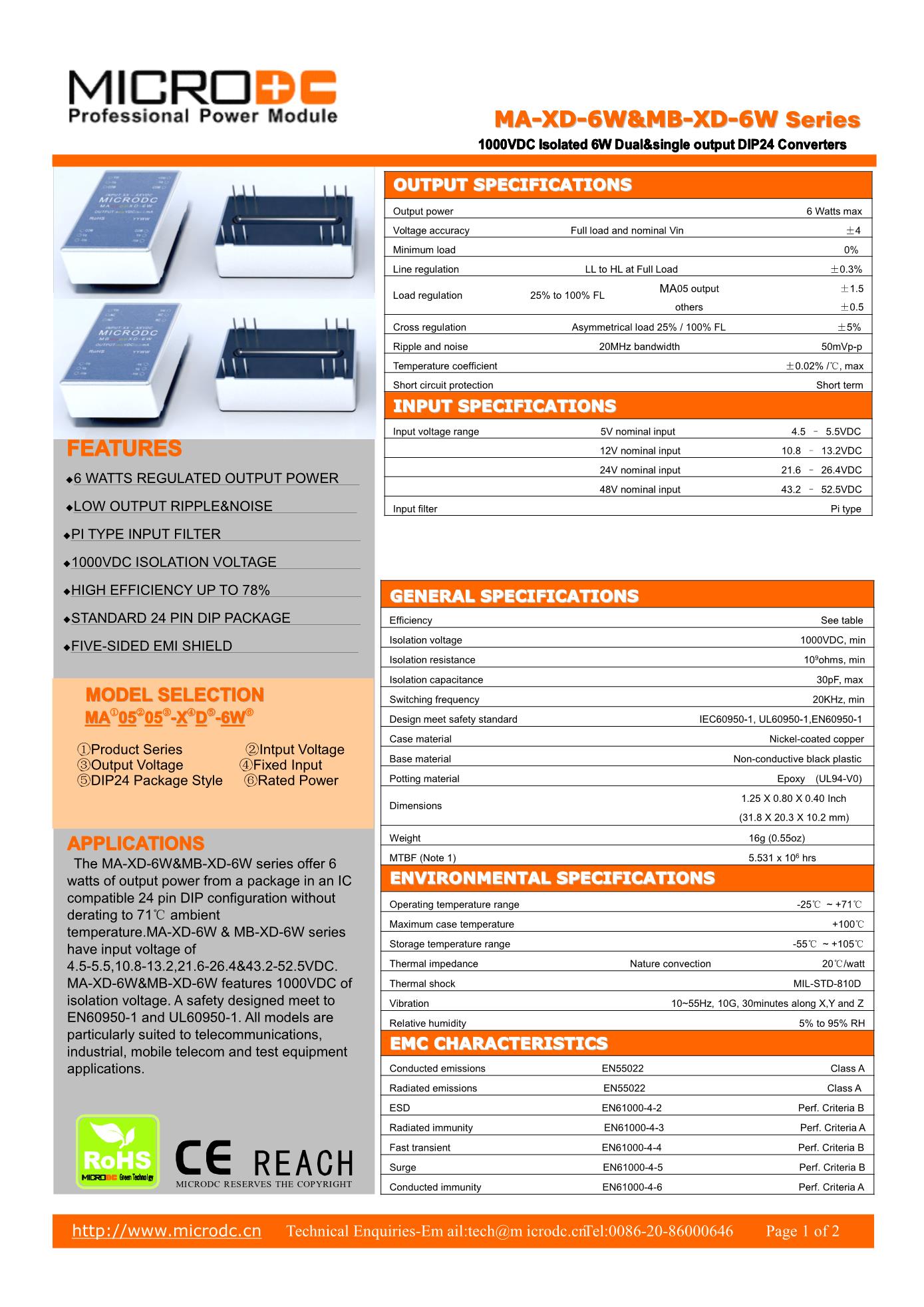 1000VDC Isolated 6W Dual output DIP24 Converters