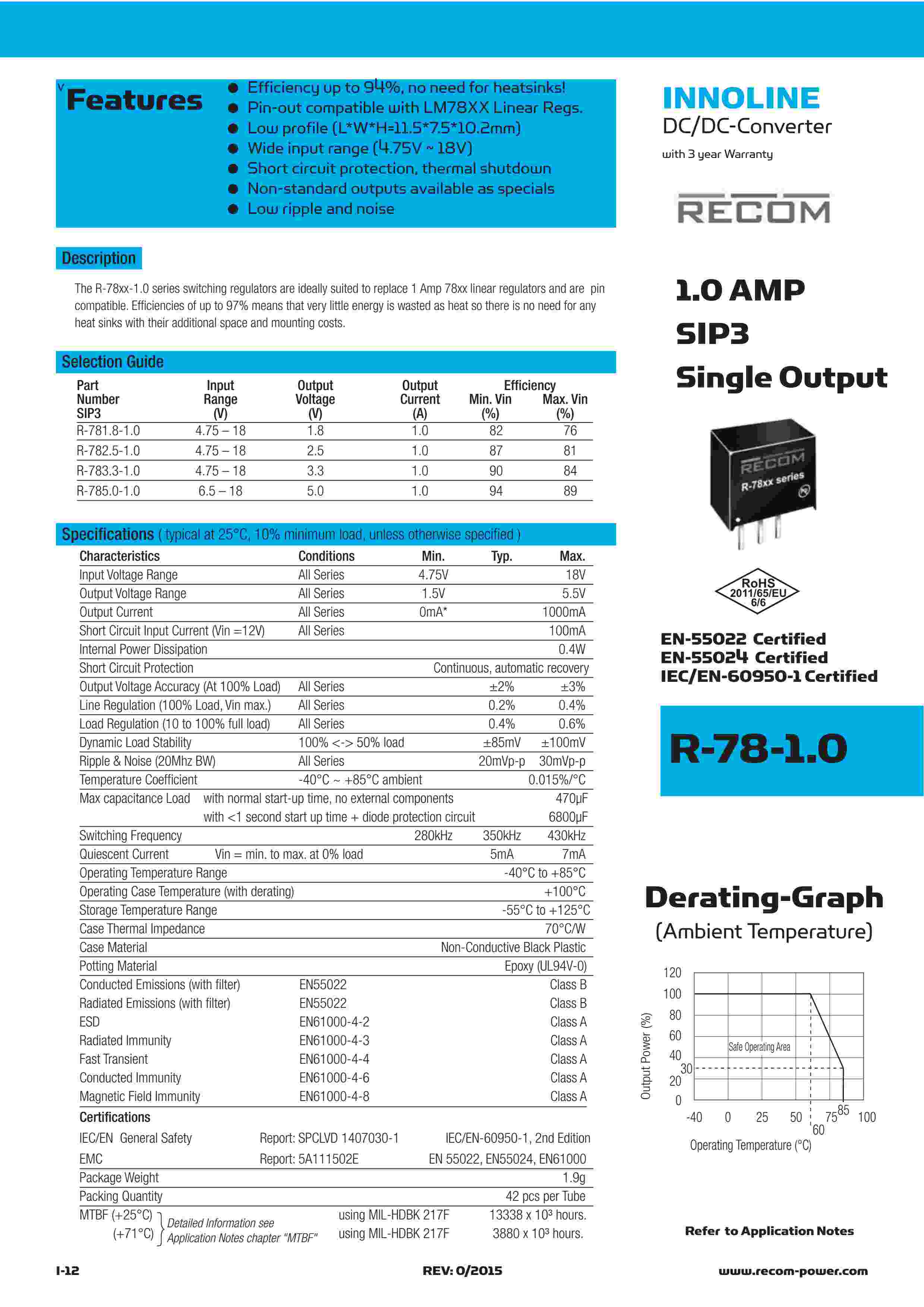 1.0 AMP SIP3 Single Output