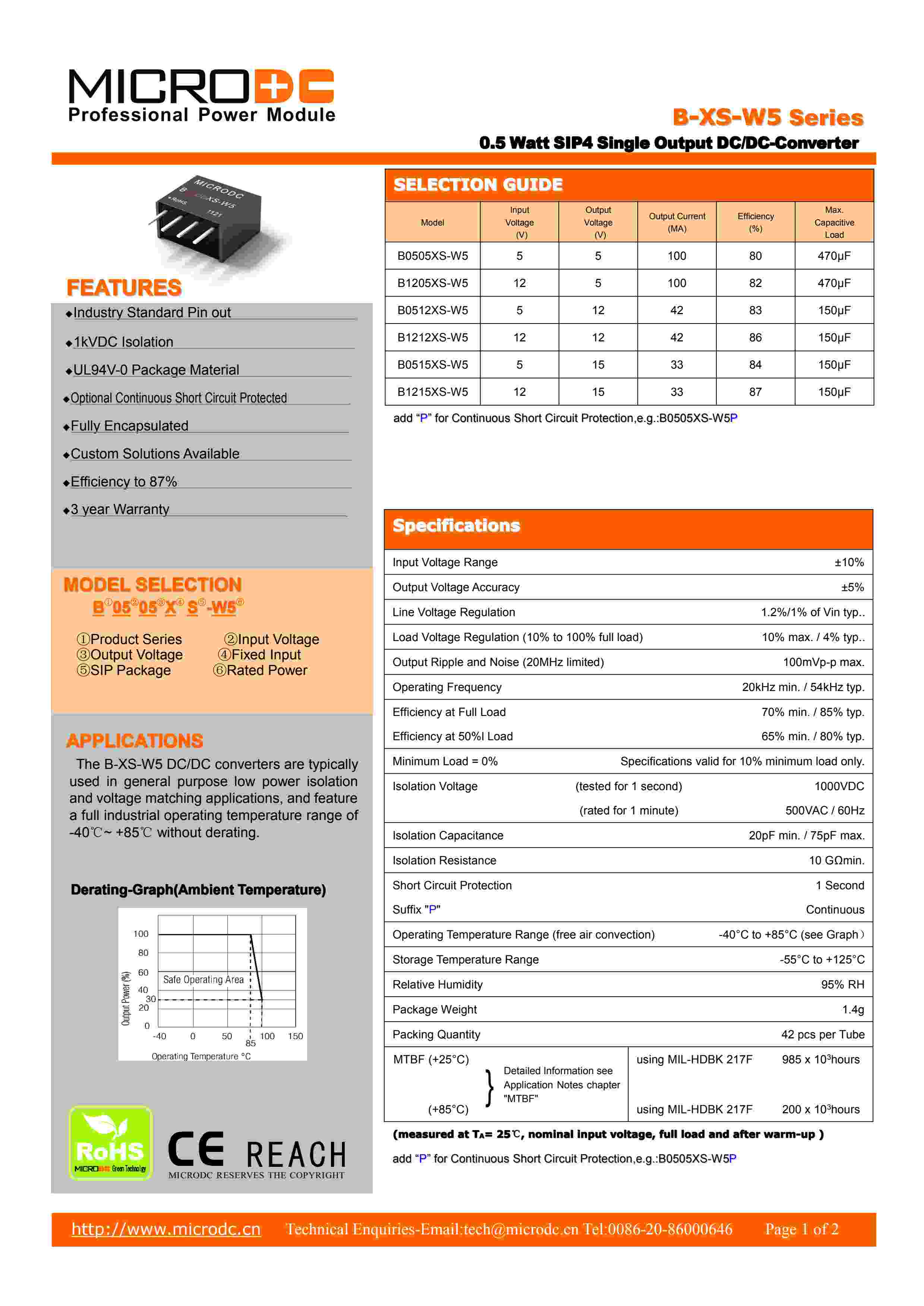 0.5 Watt SIP4 Single Output DC/DC-Converter