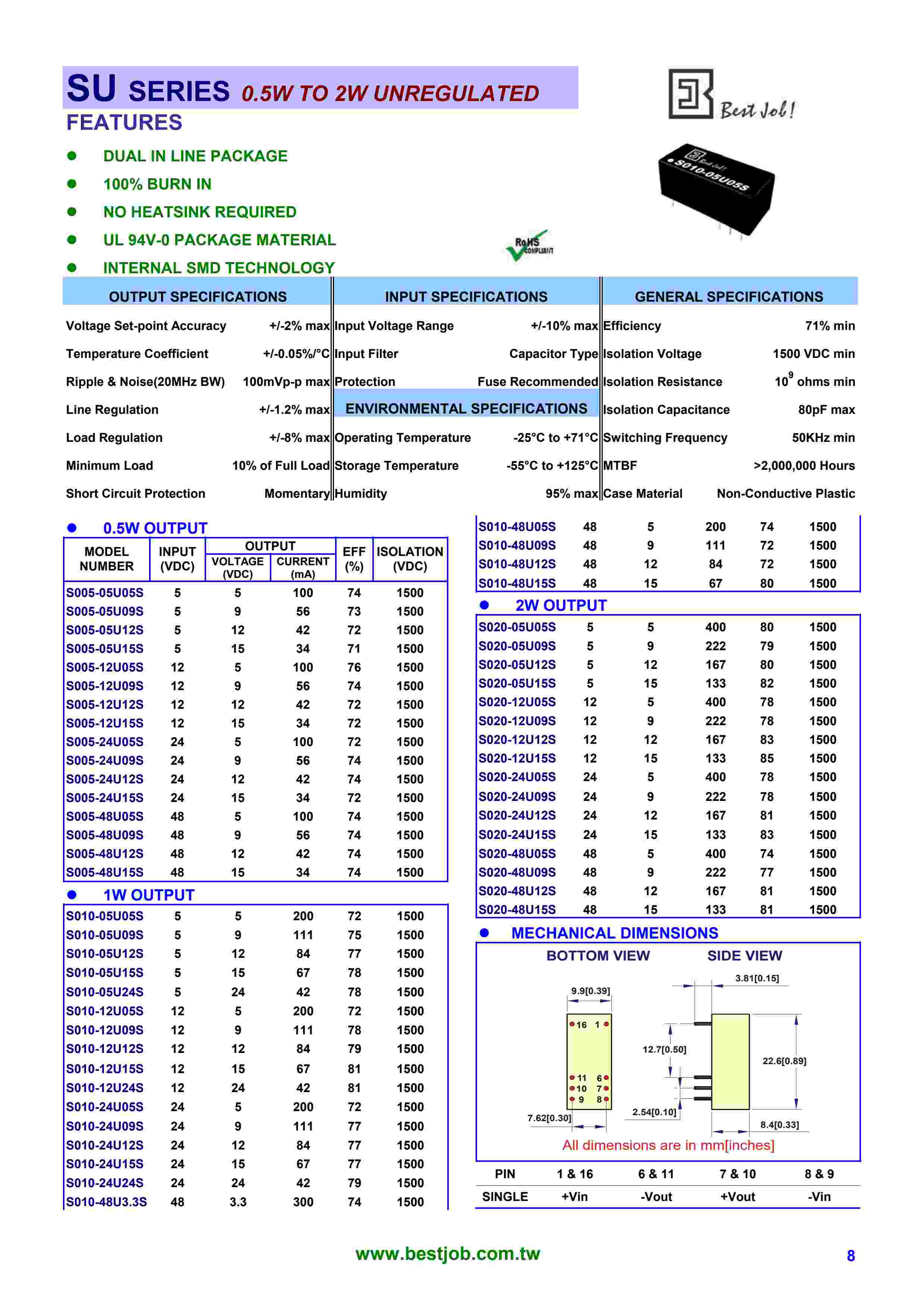 0.5-2W SINGLE OUTPUT DC/DC Converter