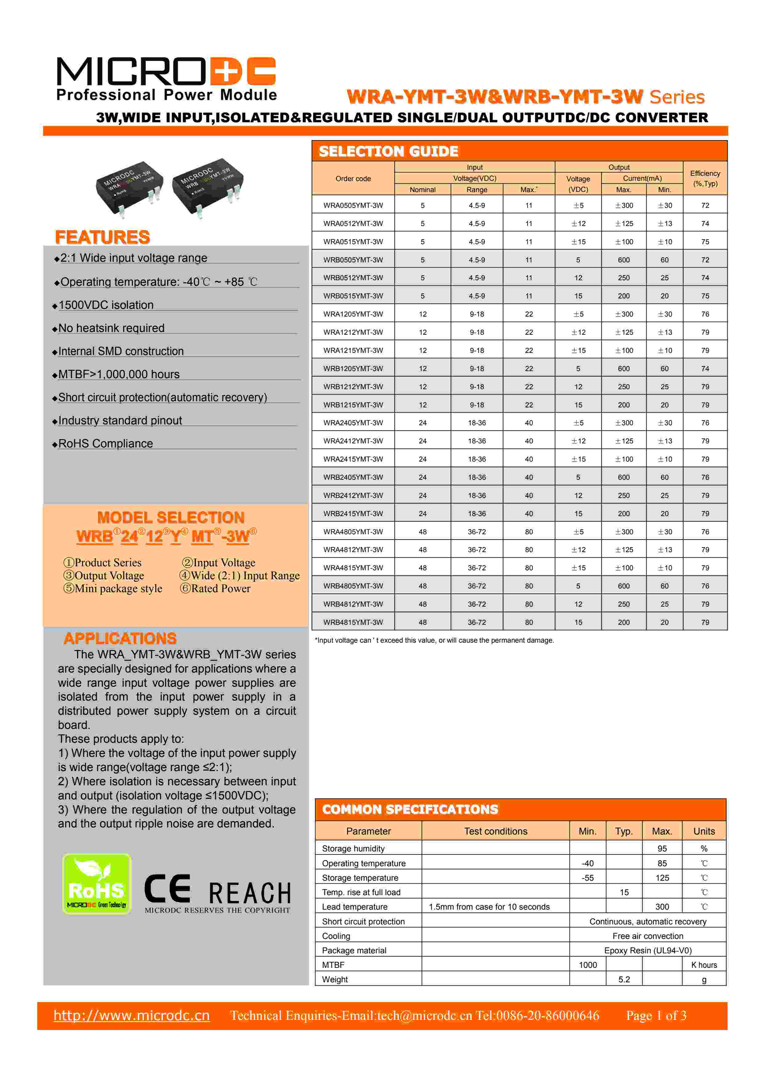 3W, Wide Input , Isolated