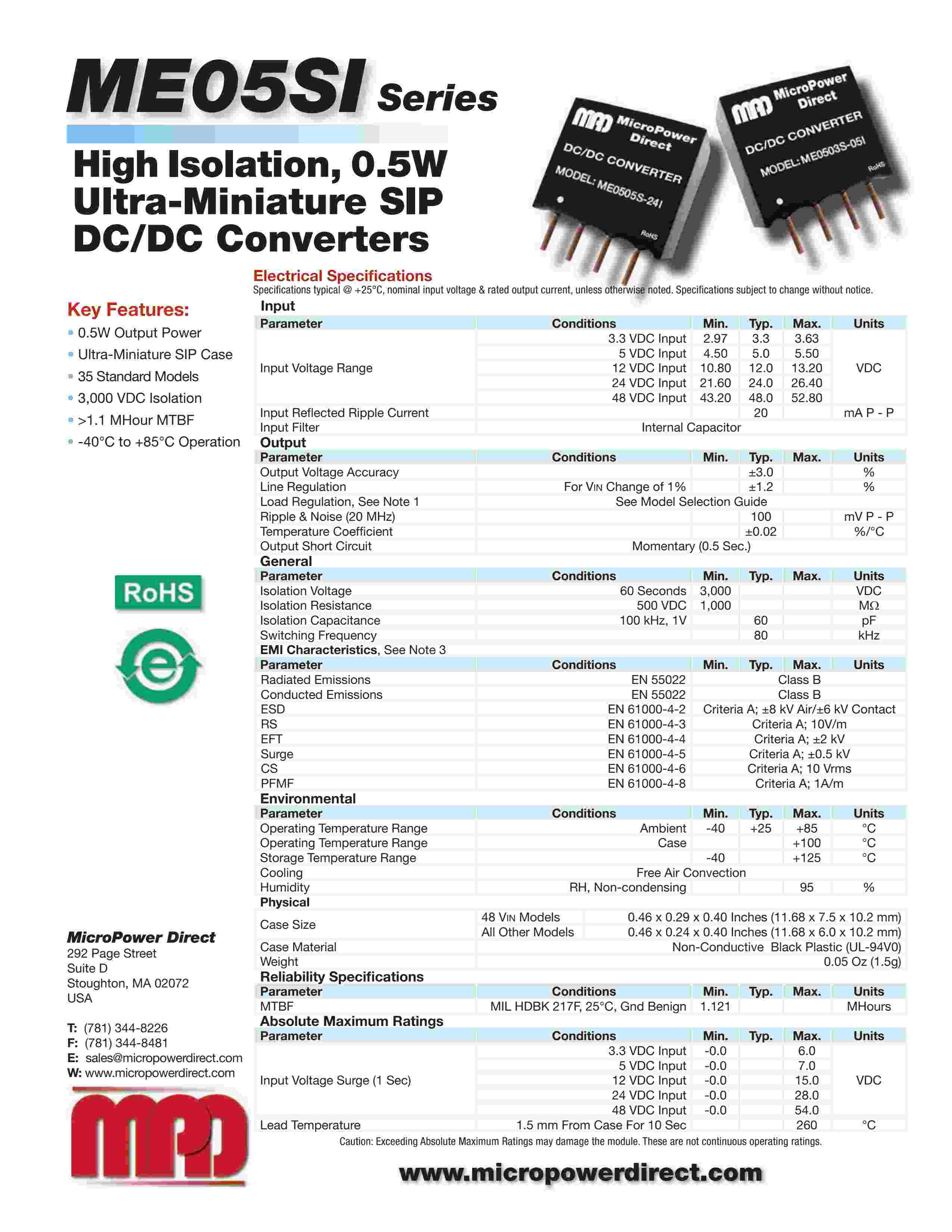 High Isolation, 0.5W Ultra-Miniature SIP DC/DC Con vert ers
