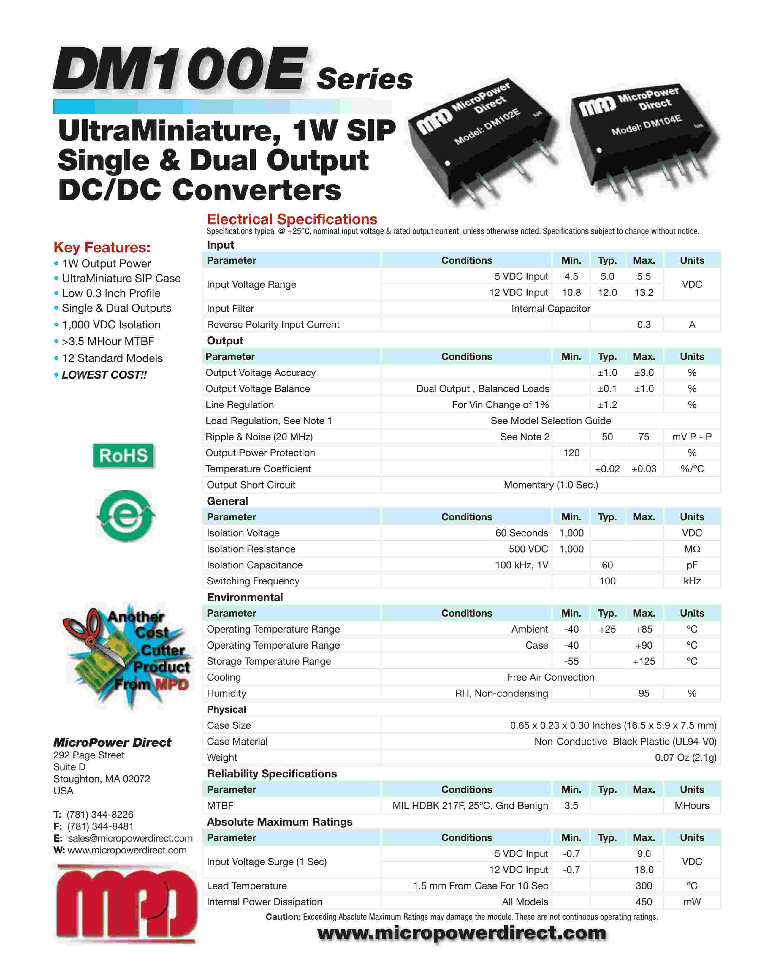 UltraMiniature, 1W SIP Single & Dual Output DC/DC Con vert ers